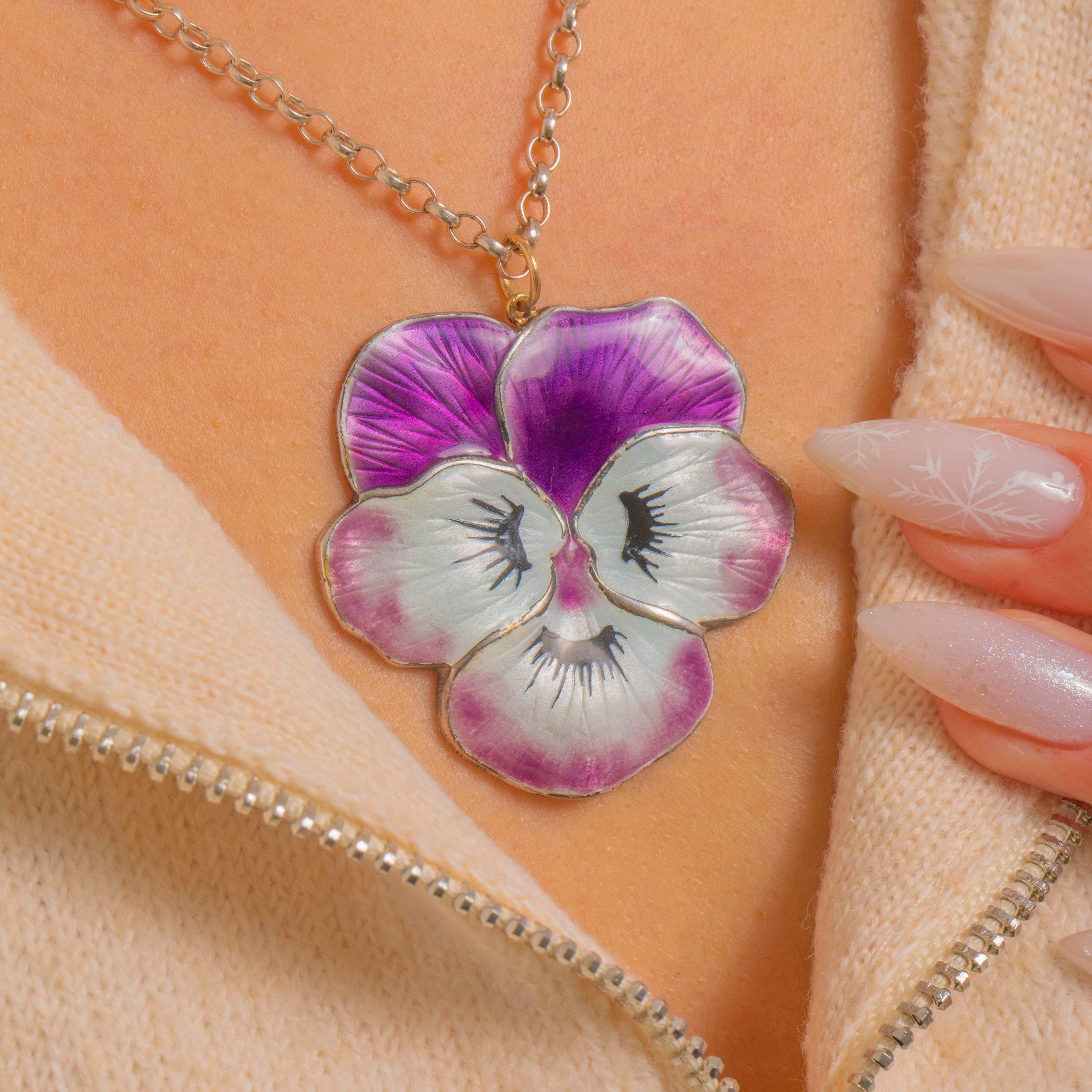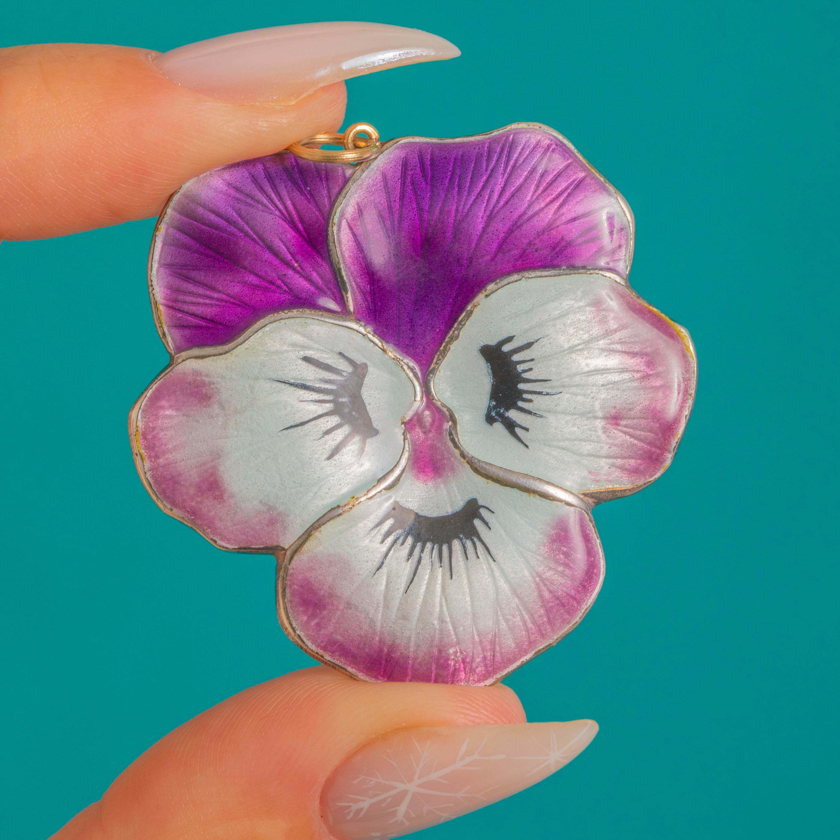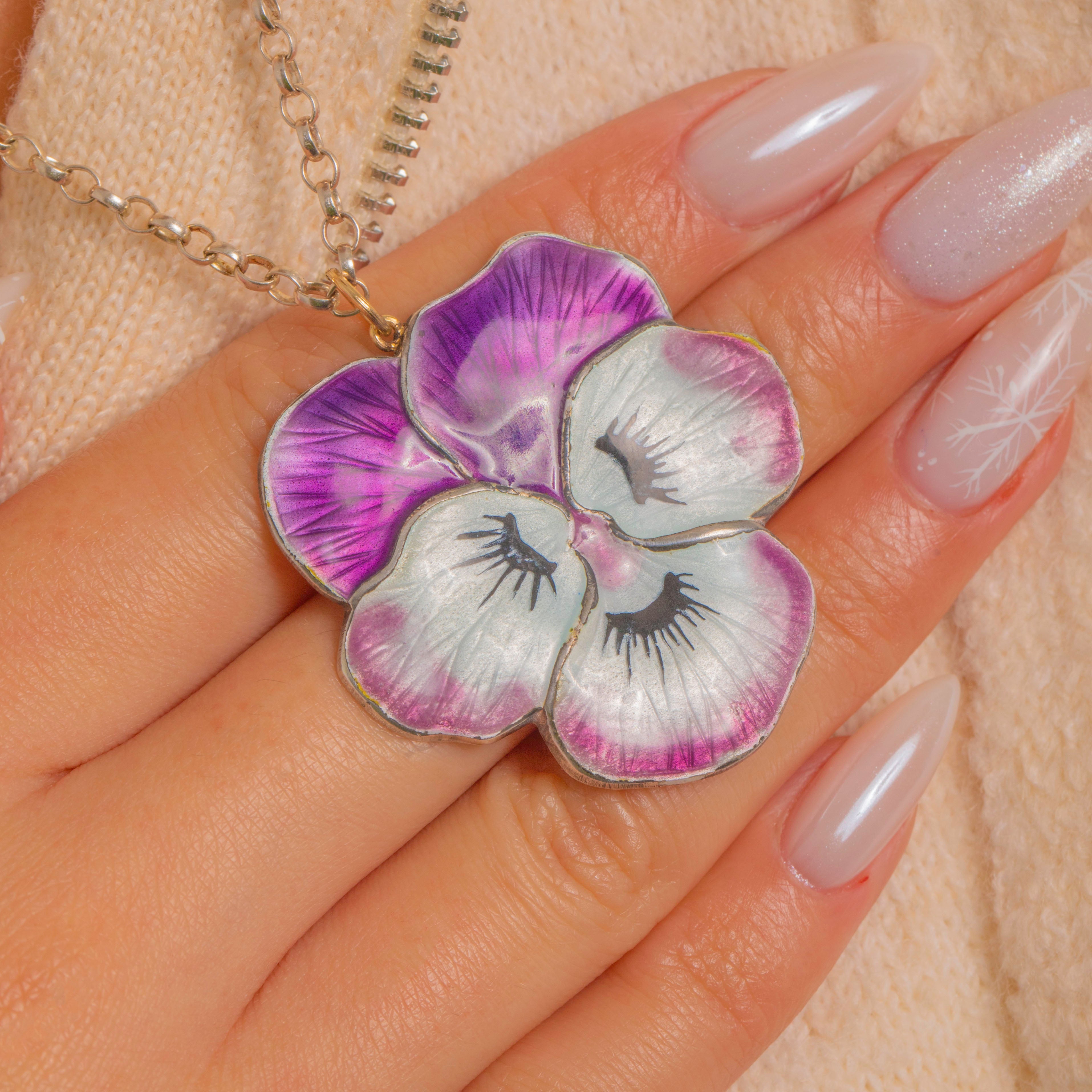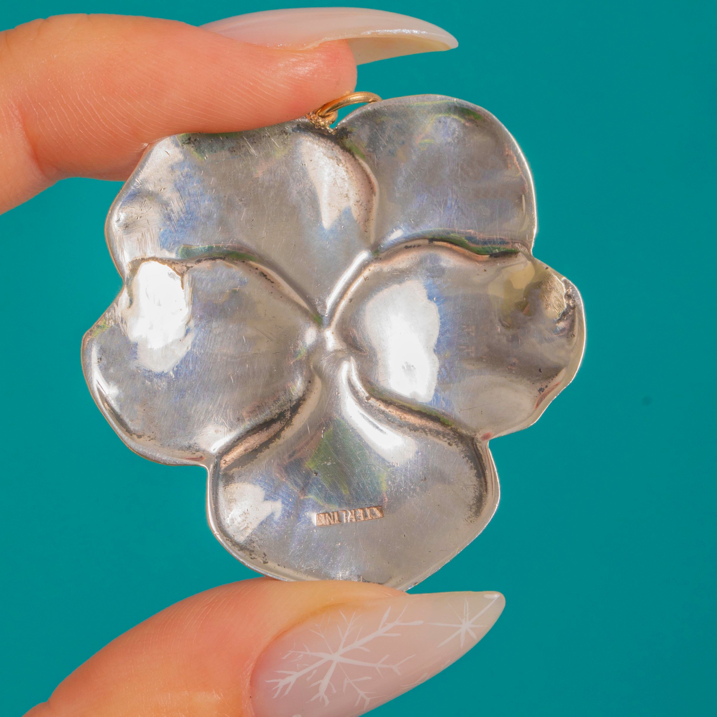 ミッドセンチュリー ヴィンテージ スターリングシルバー パープル&ホワイト エナメル ペンダント