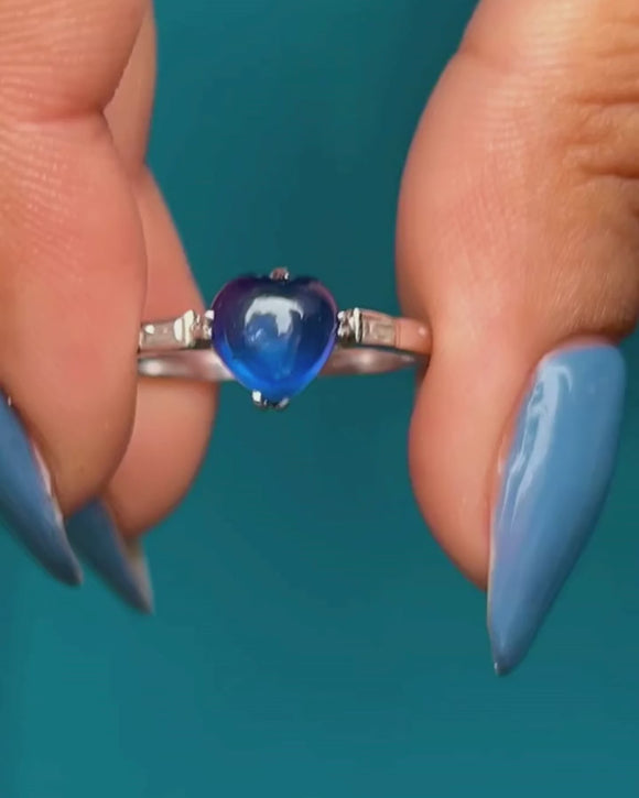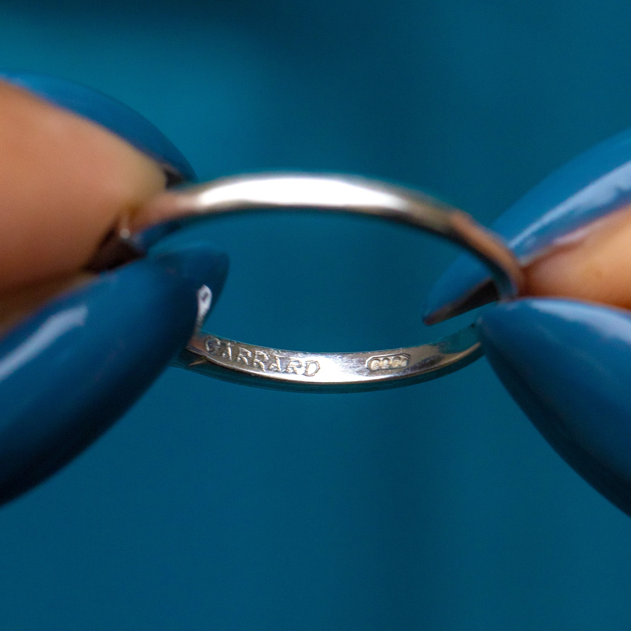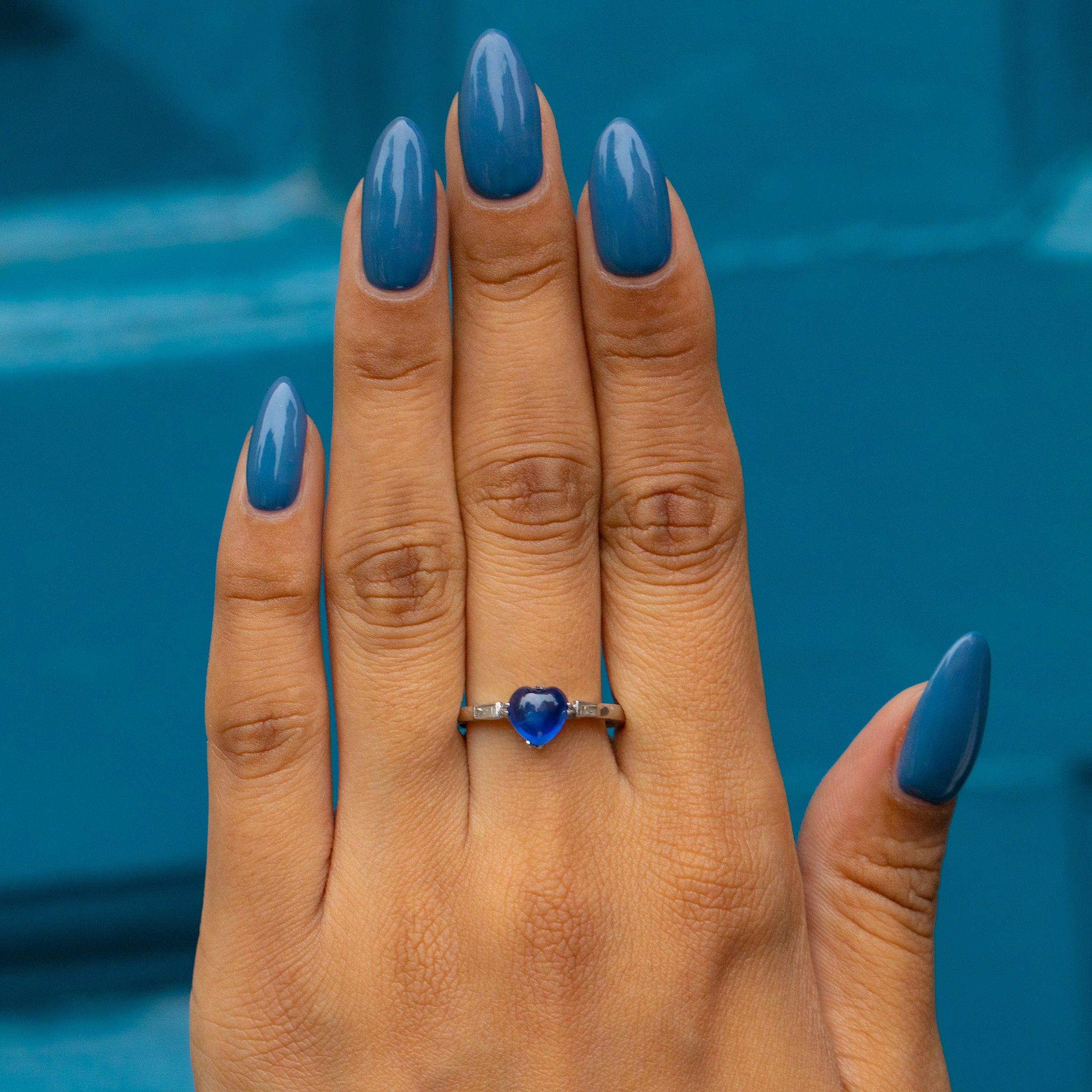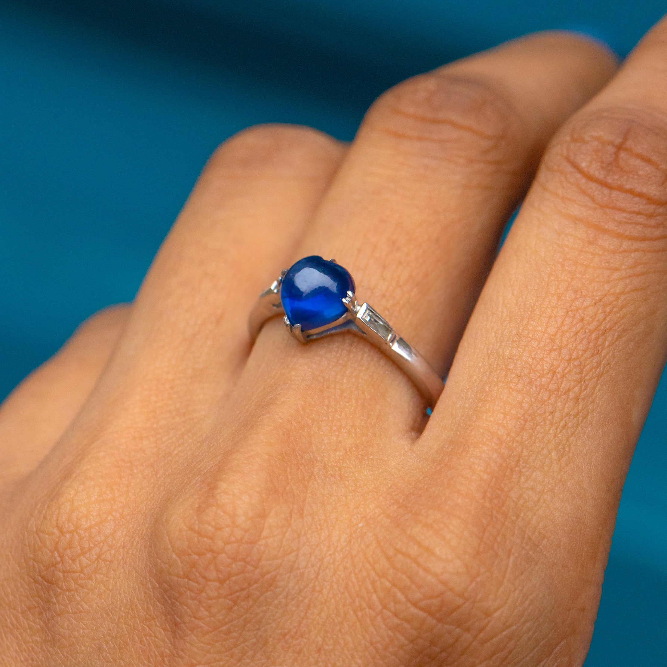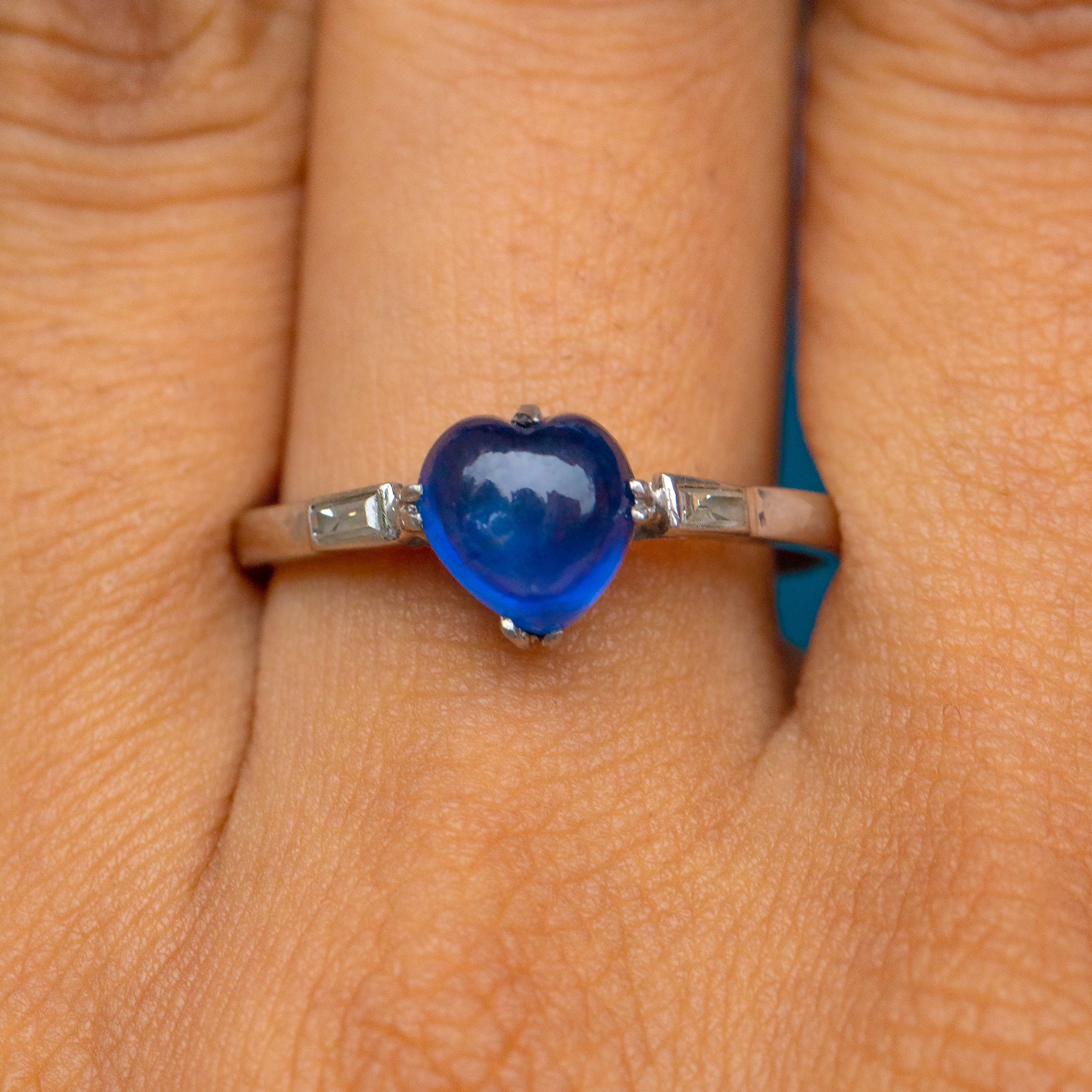 ギャラッズ プラチナ サファイア ハート カボション ダイヤモンド リング、サイン入り「Garrard's」