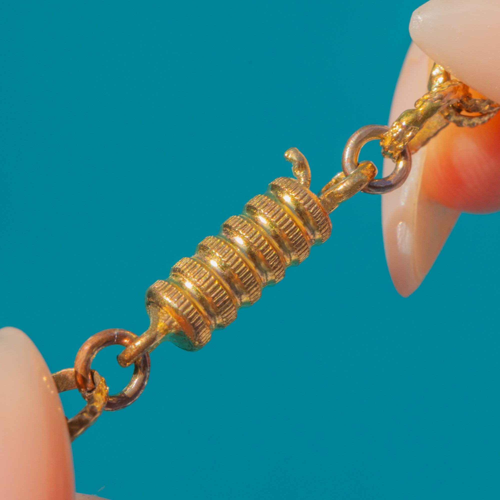 RARE 44" Georgian Pinchbeck Textured Chain & Barrel Clasp