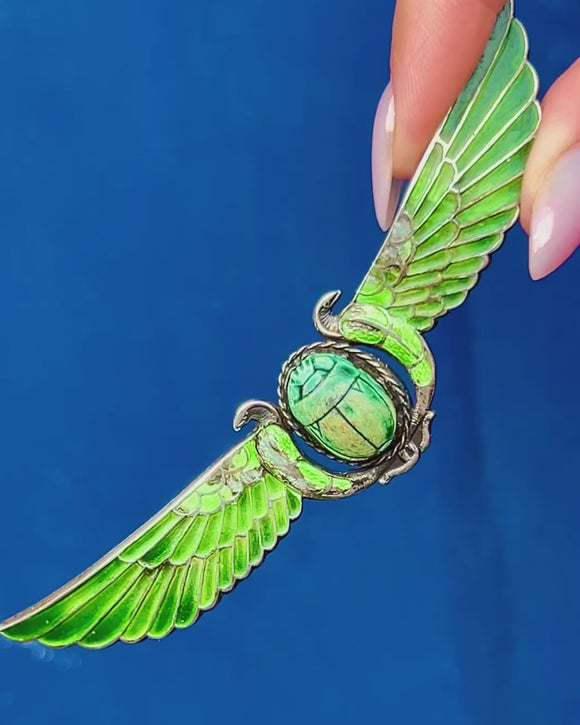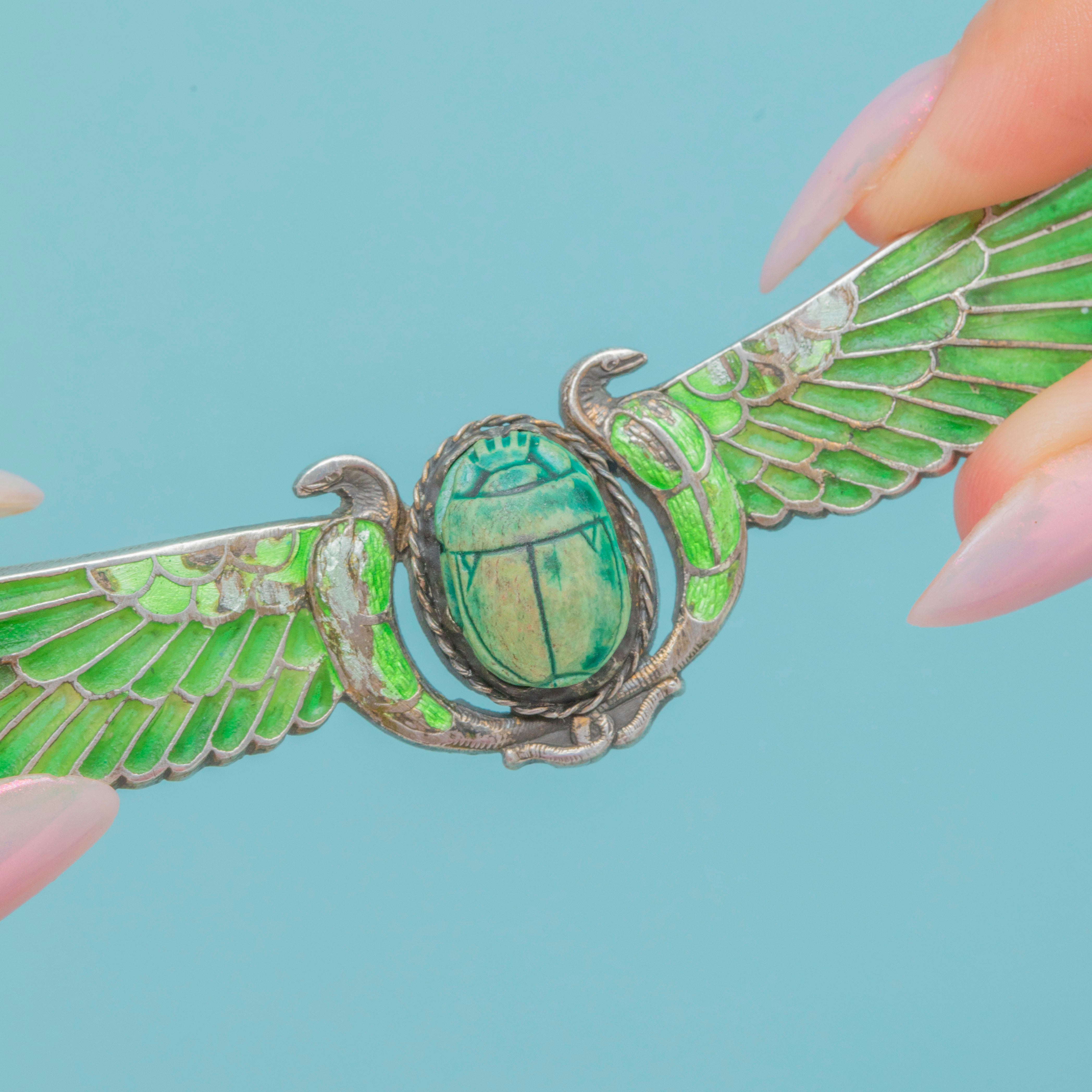 Rare Egyptian Revival Plique A Jour Scarab Beetle Brooch