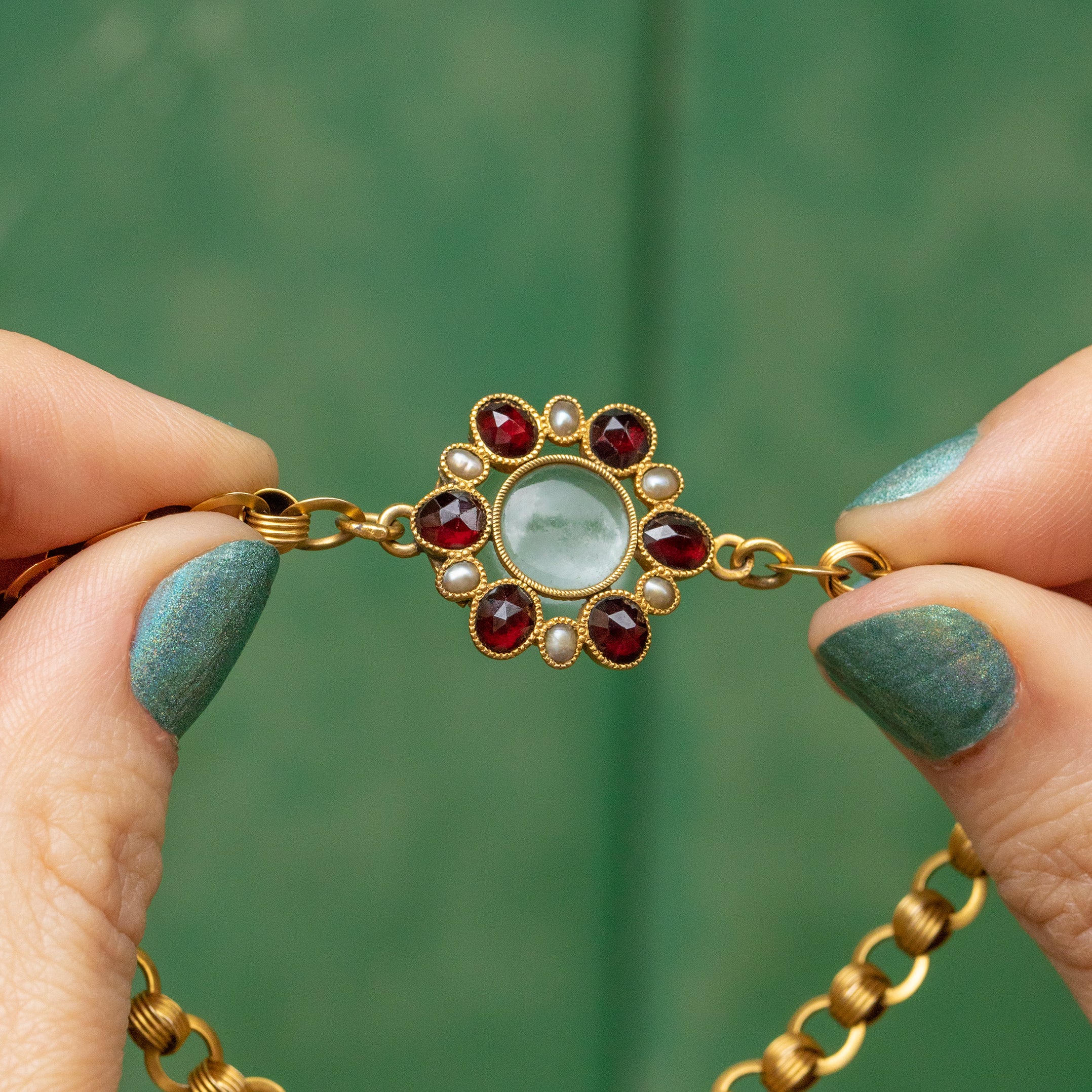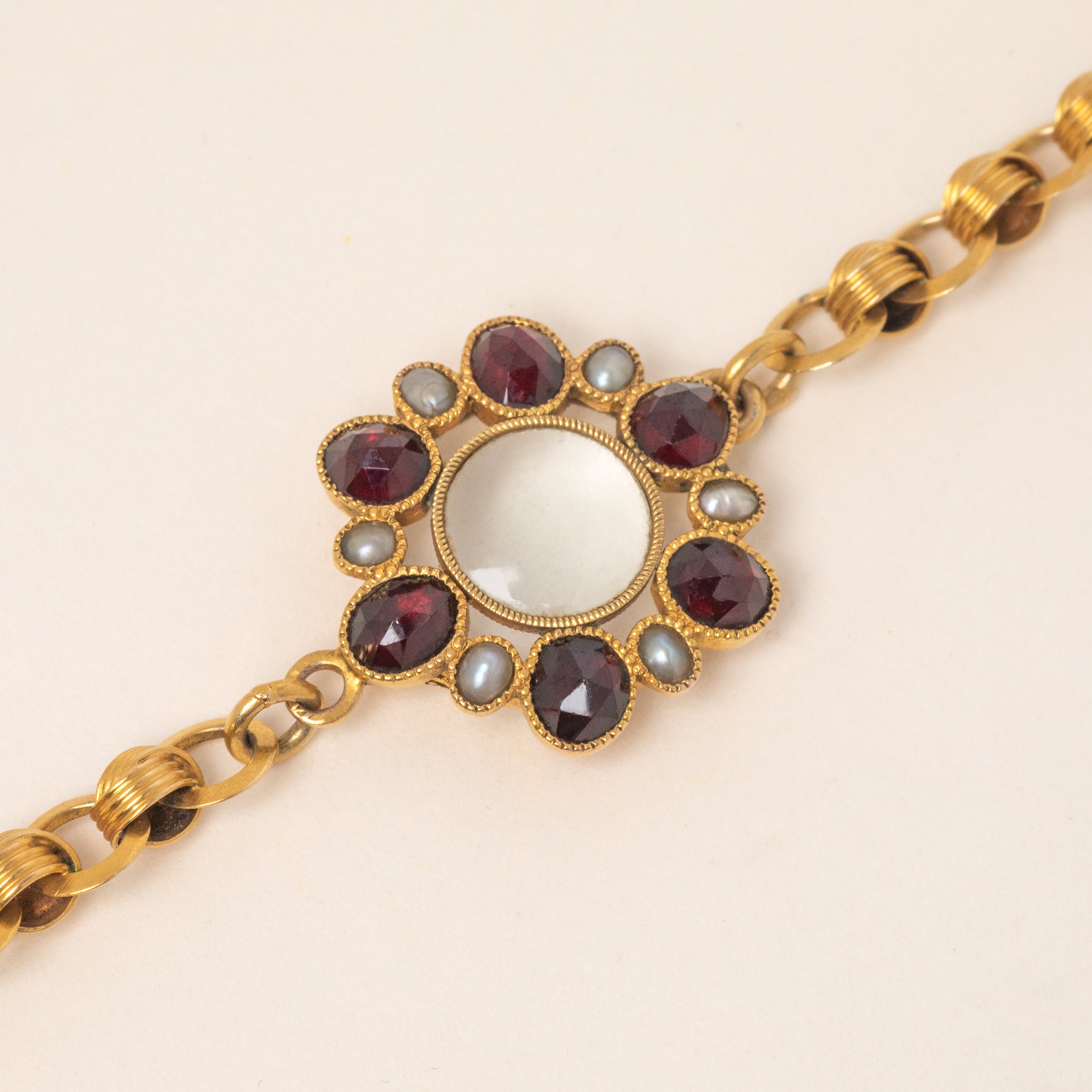 RARE Georgian 18ct Gold Garnet Pearl Flower Bracelet- Locket Back