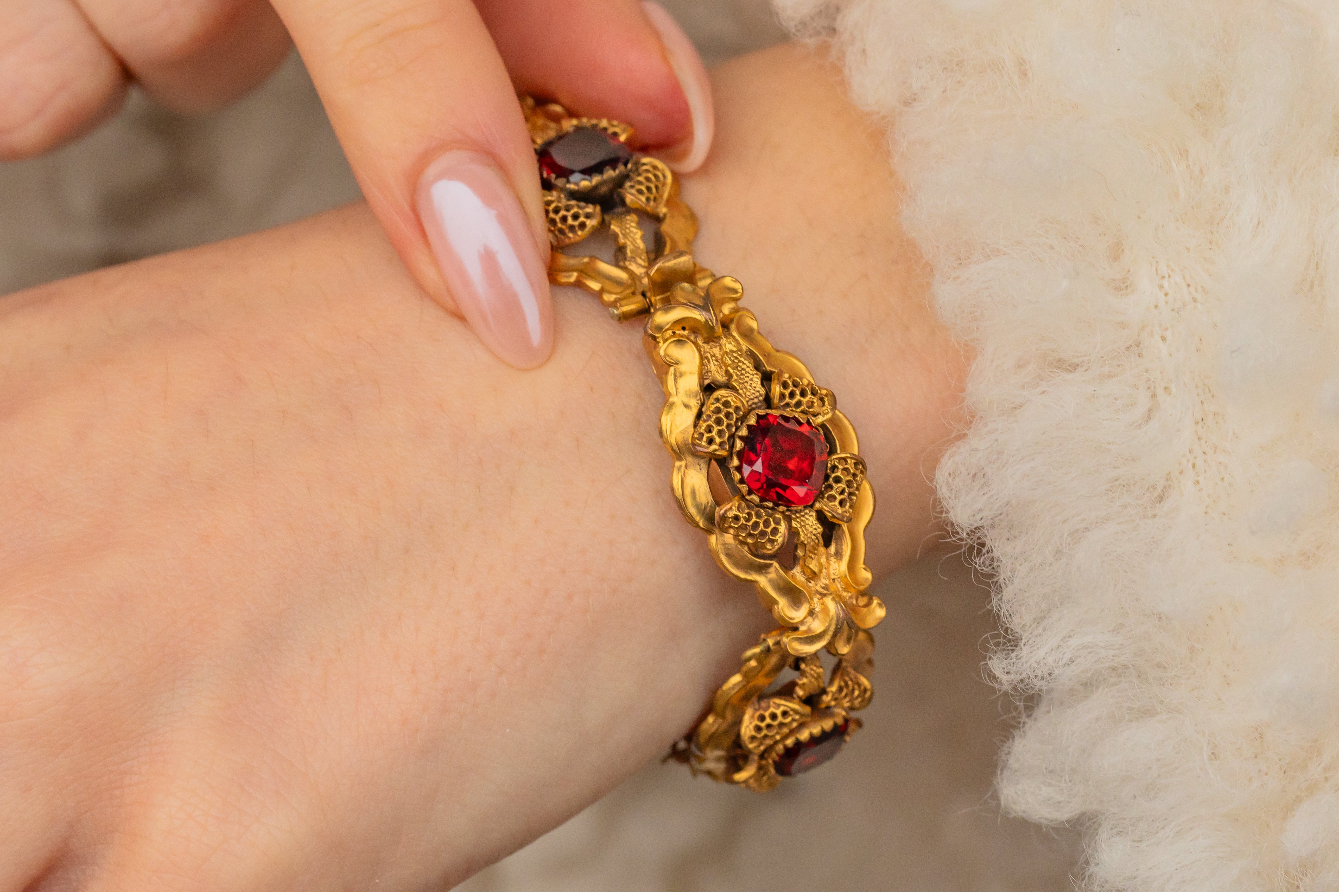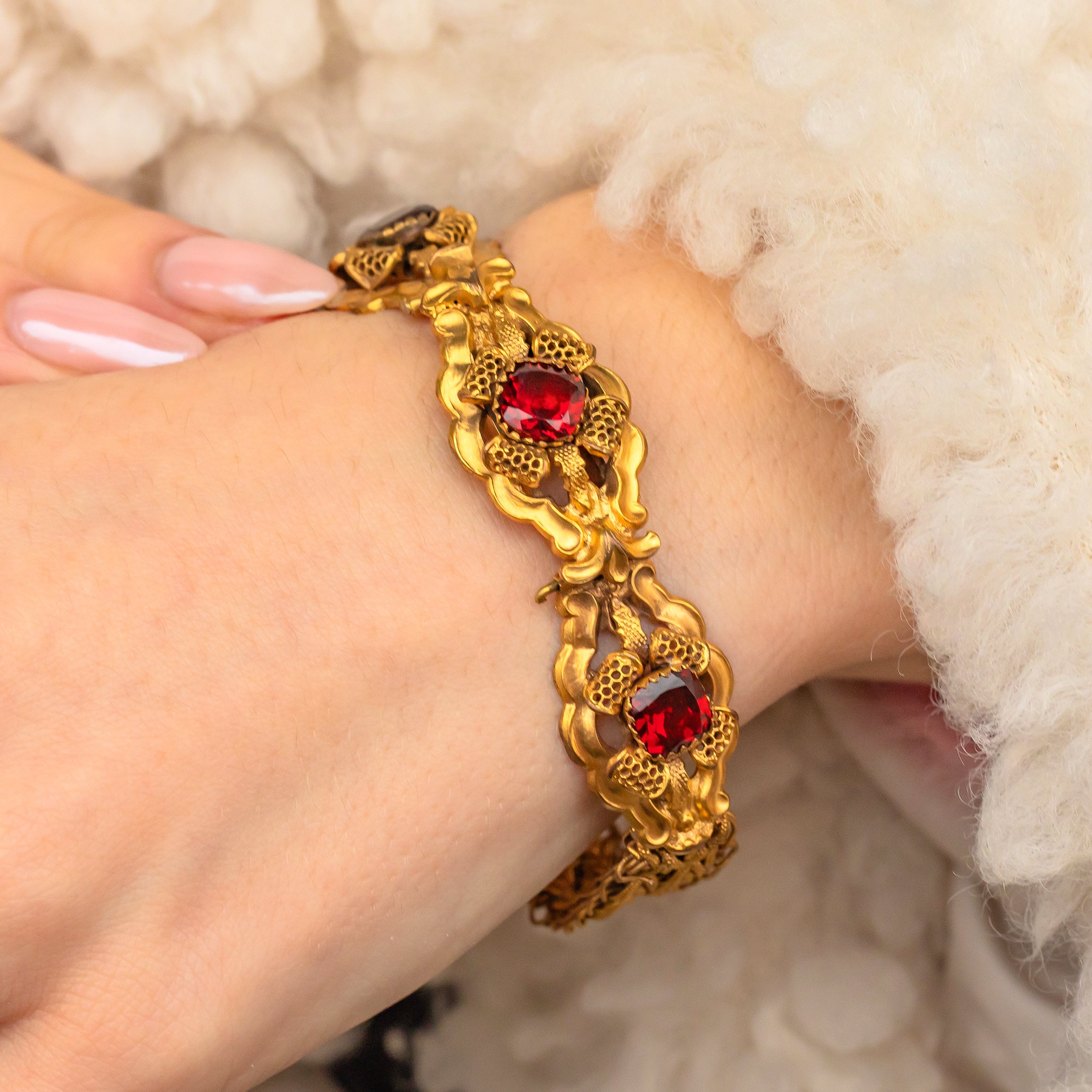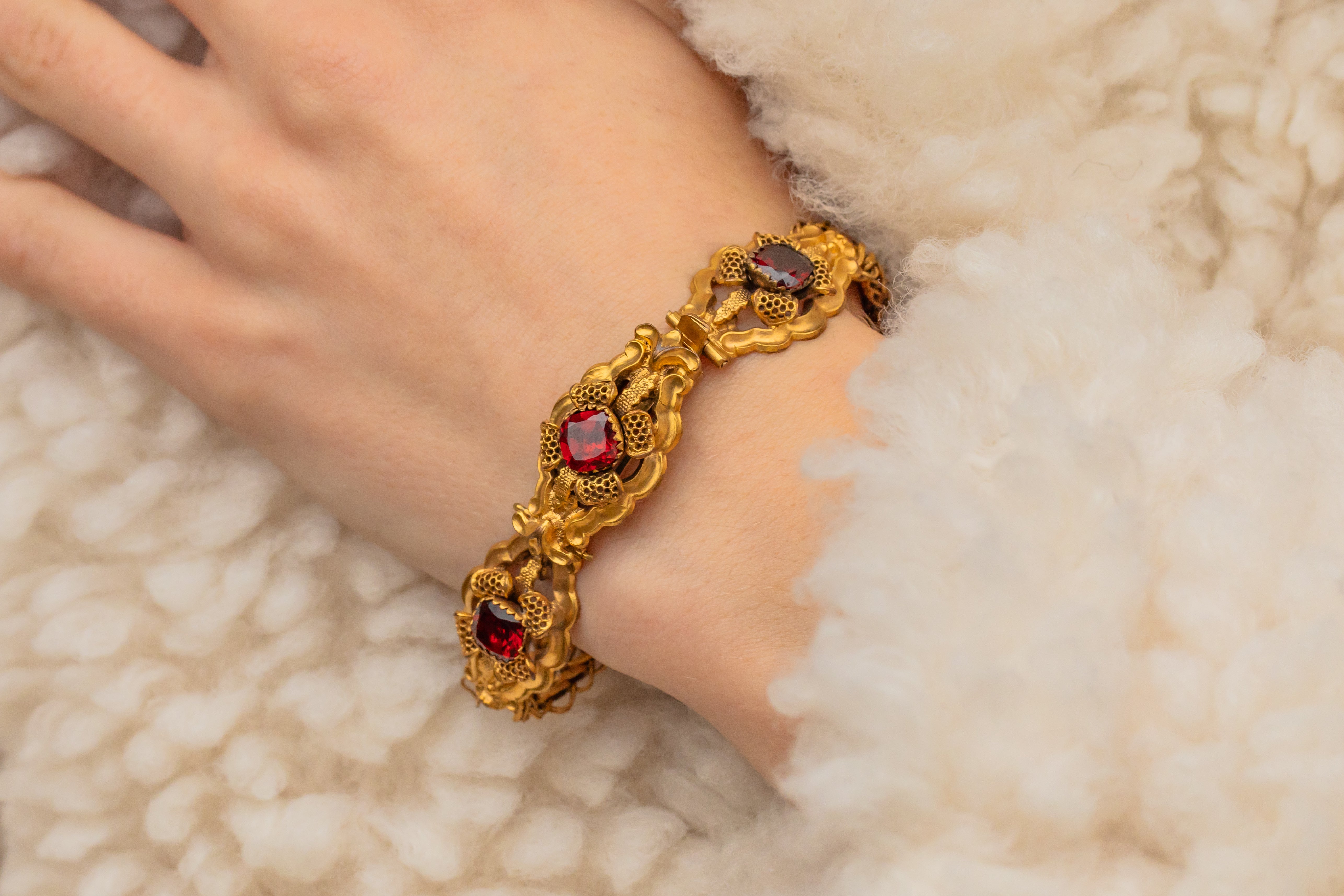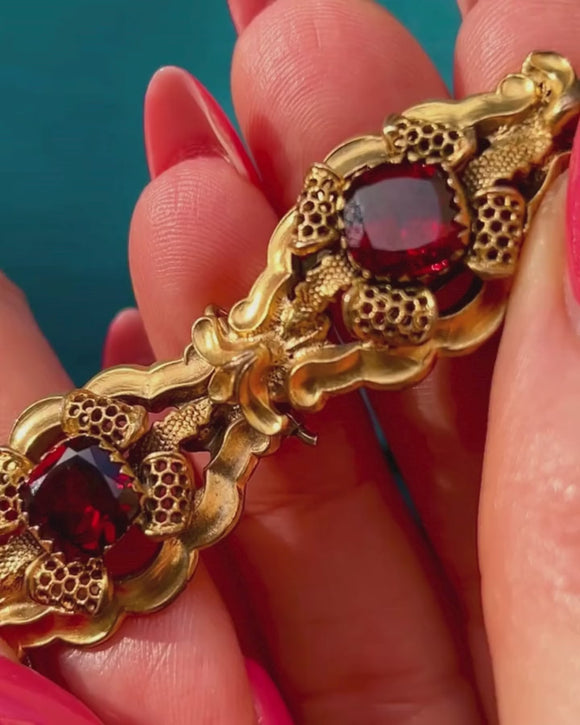 珍しいジョージアン ピンチベック ガーネット ペースト ブレスレット、約1790年頃
