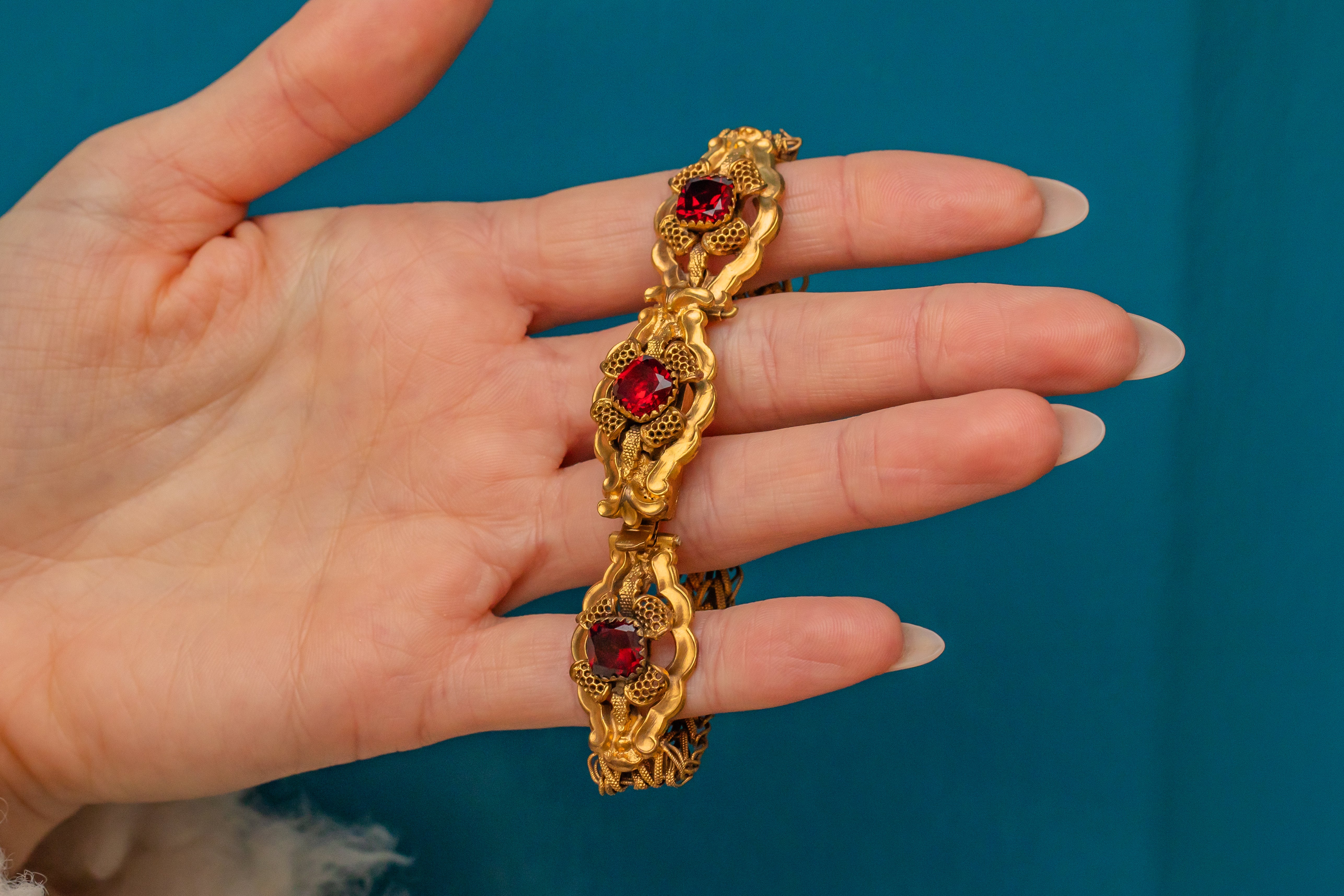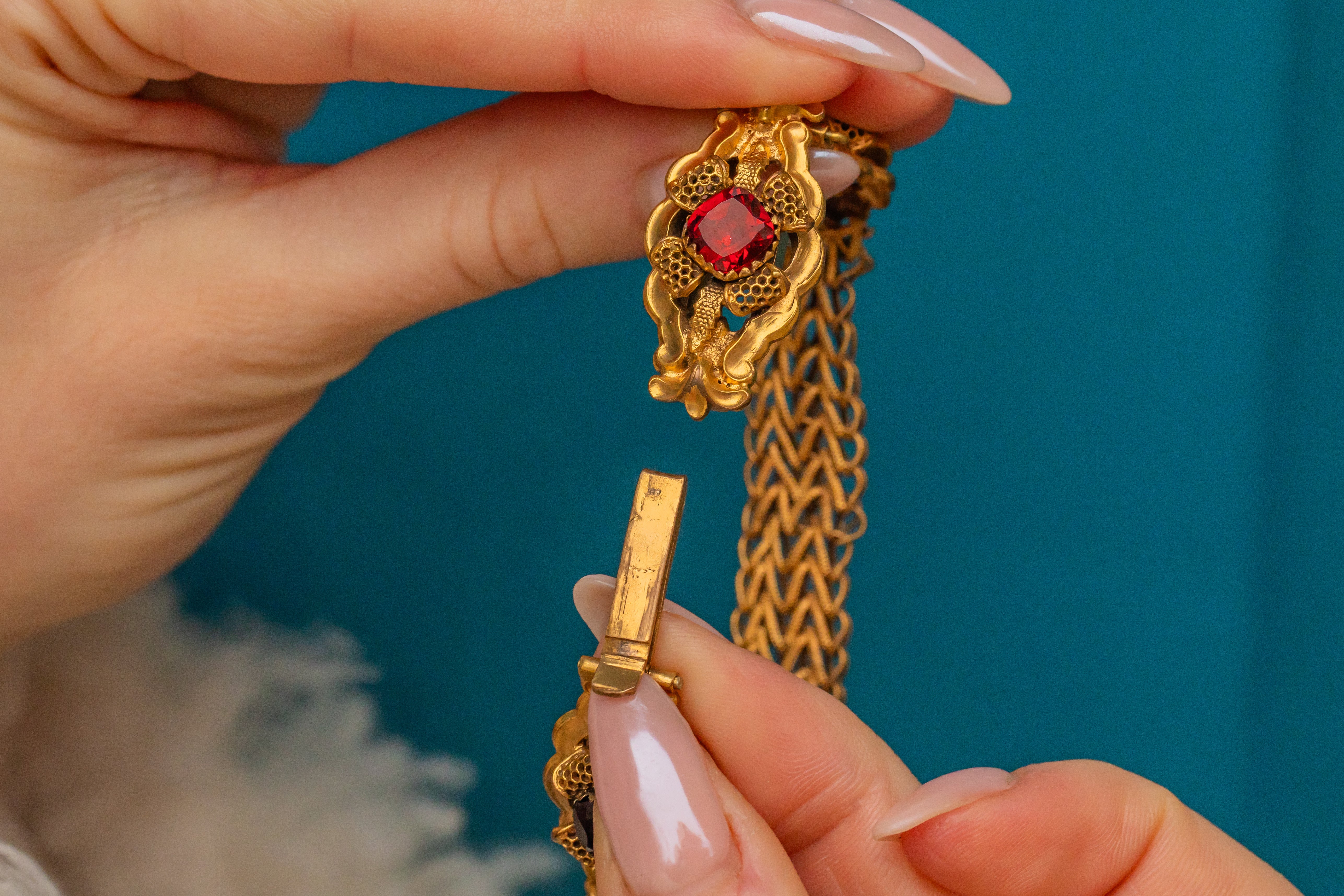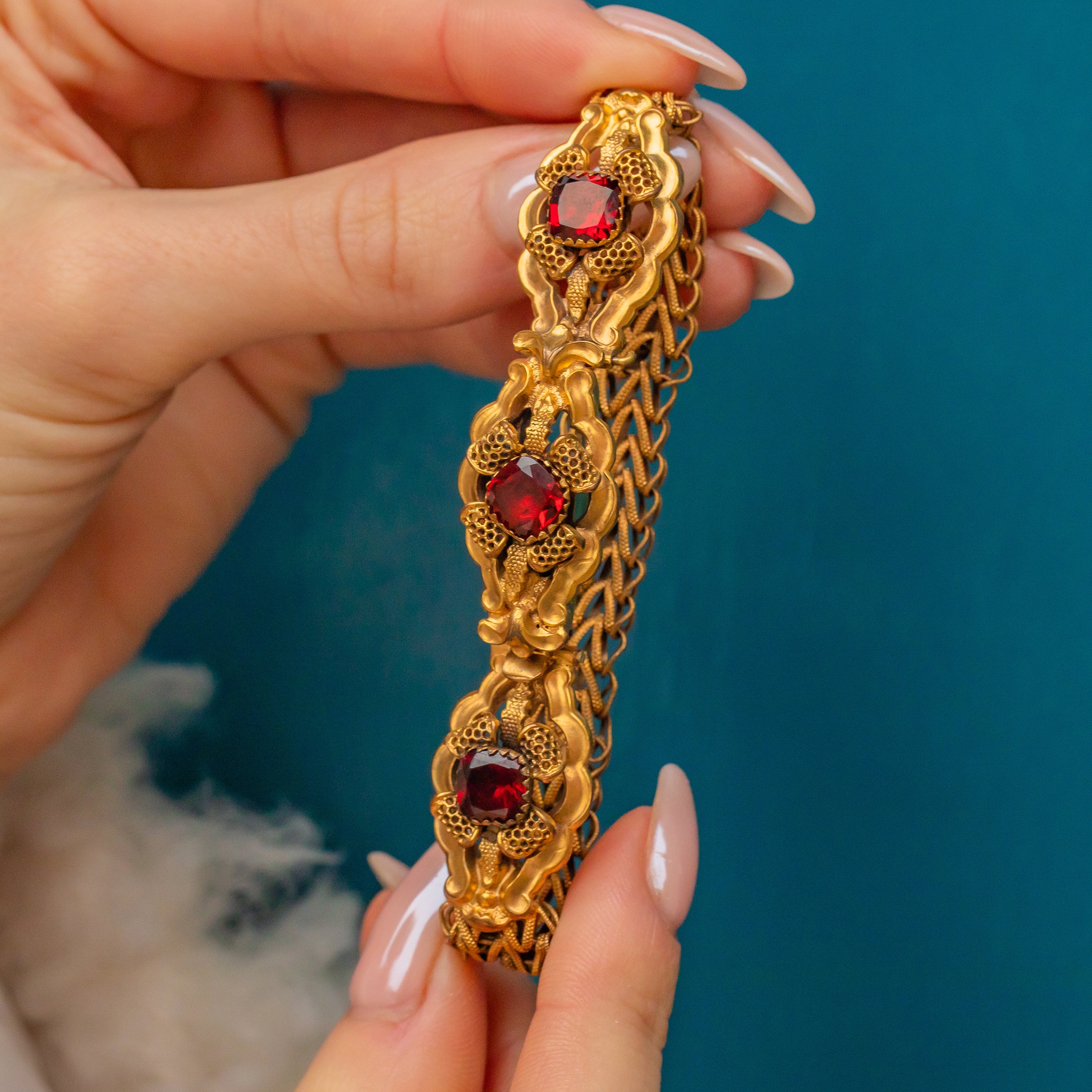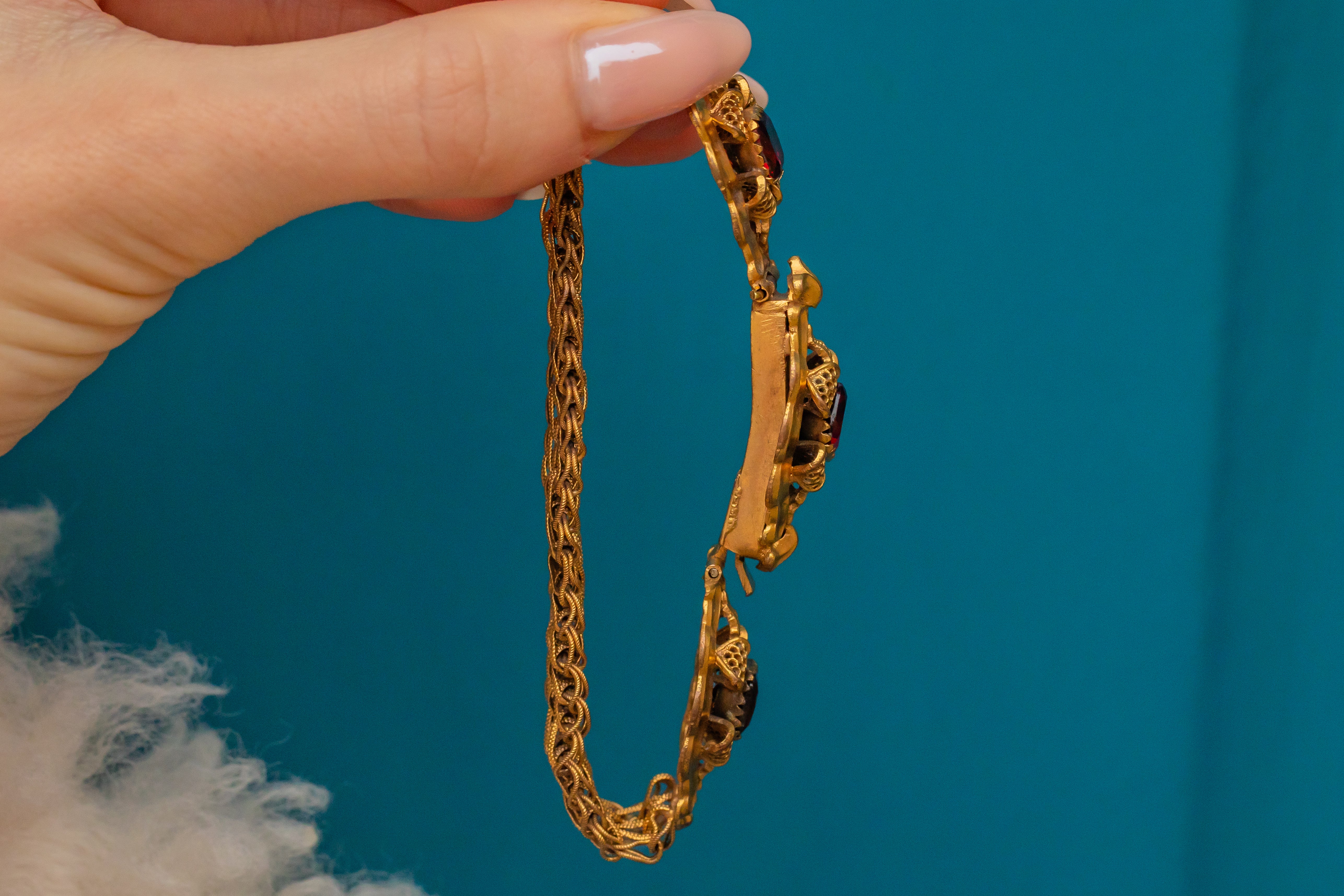 珍しいジョージアン ピンチベック ガーネット ペースト ブレスレット、約1790年頃
