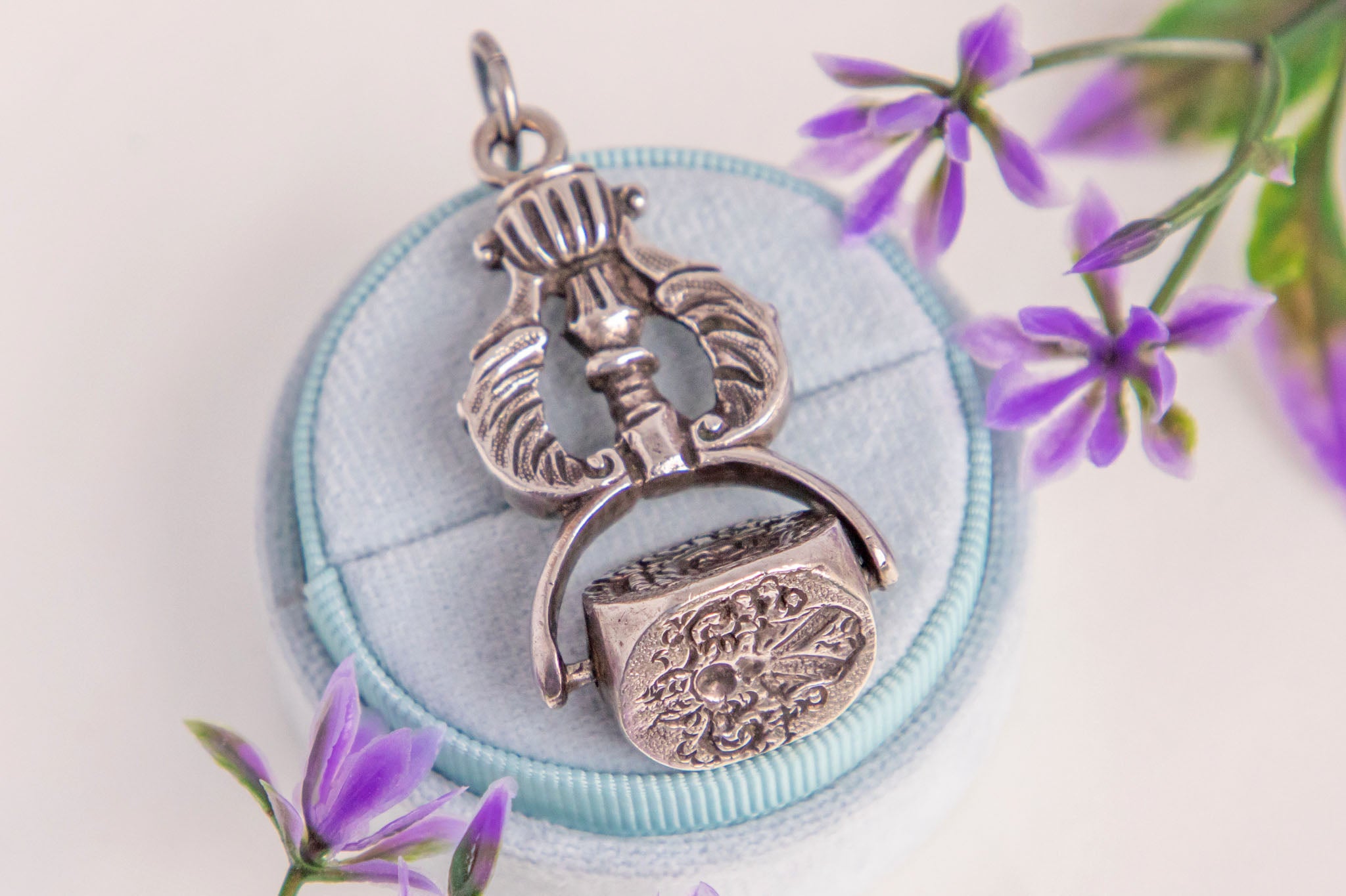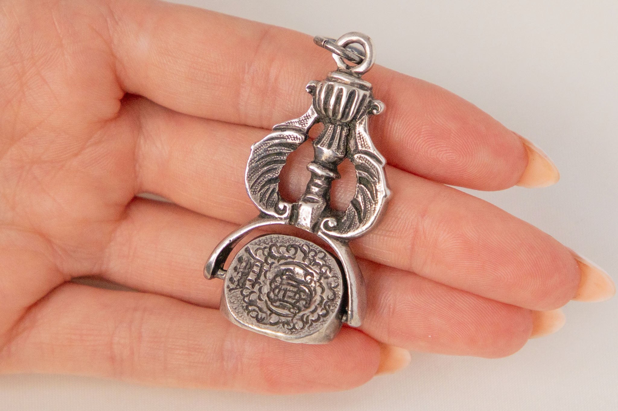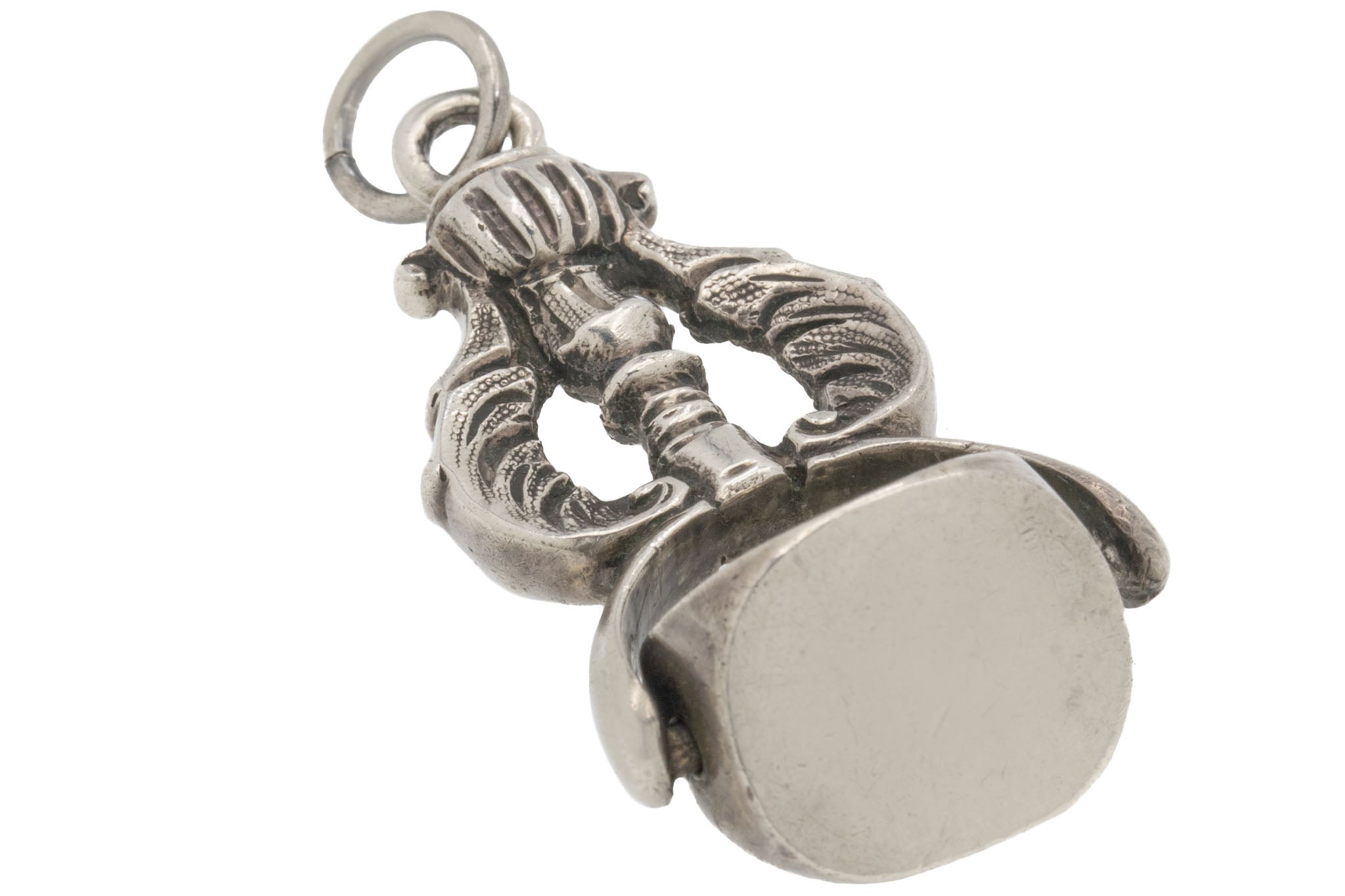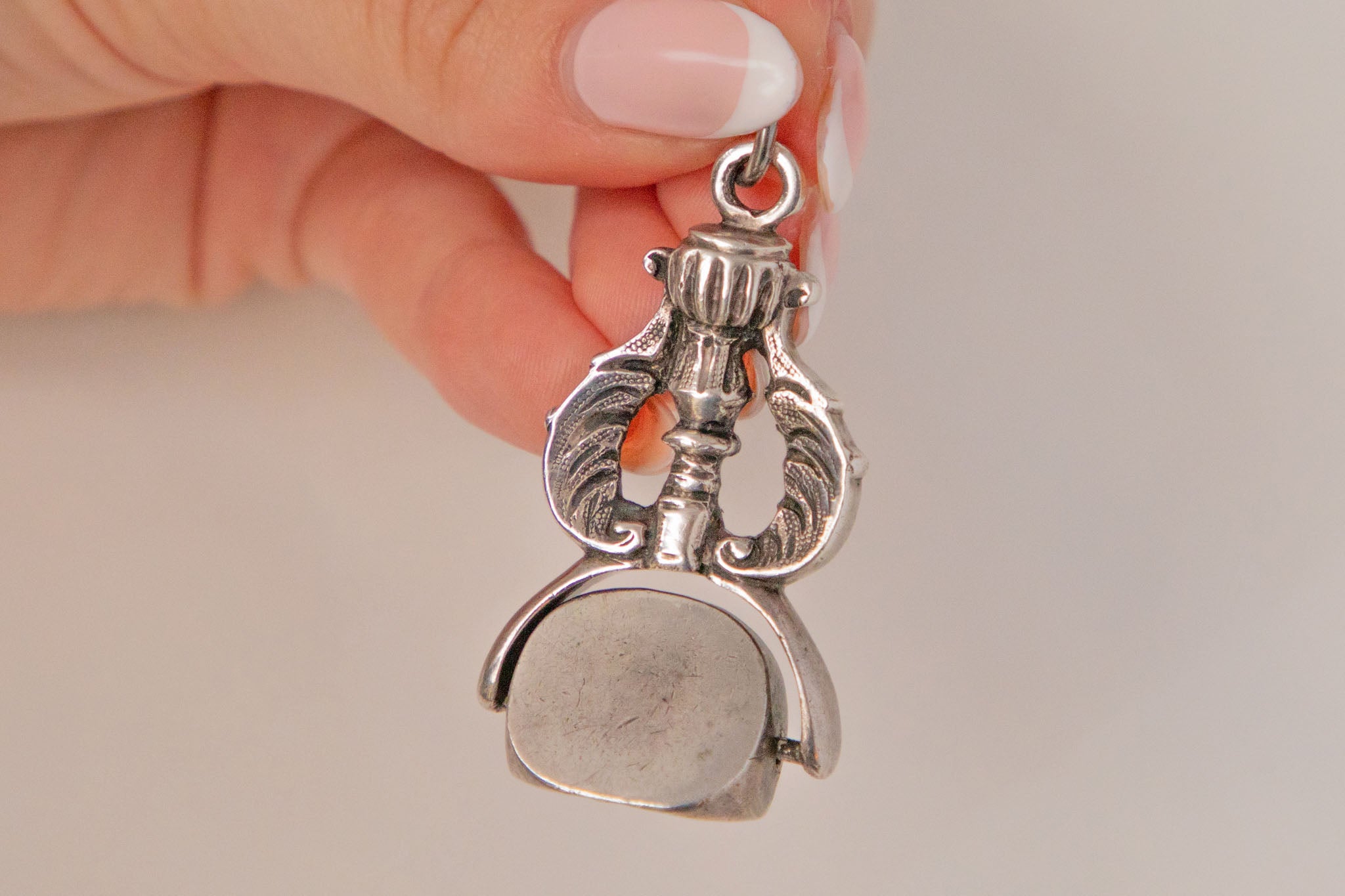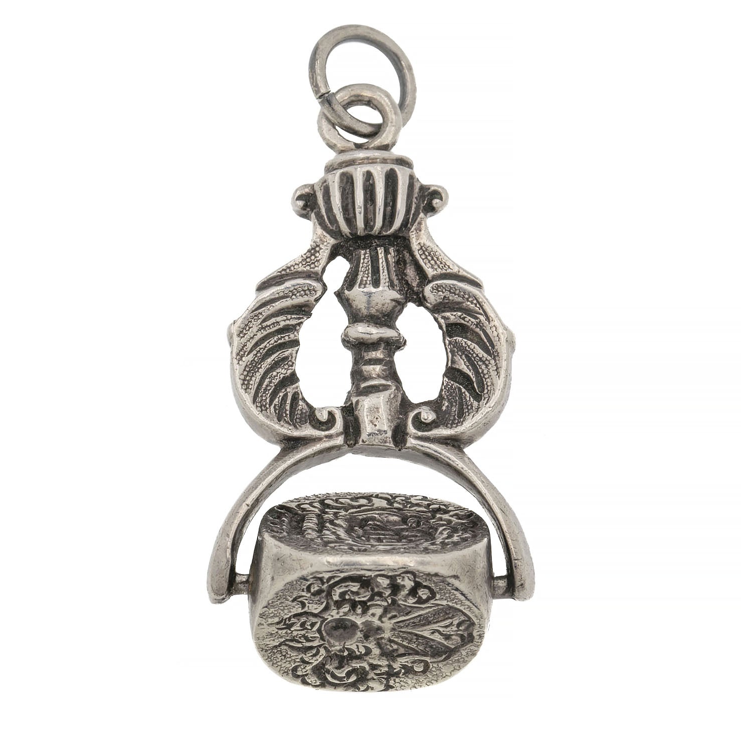 希少なジョージアン銀製スイベルフォブペンダント、家紋付き