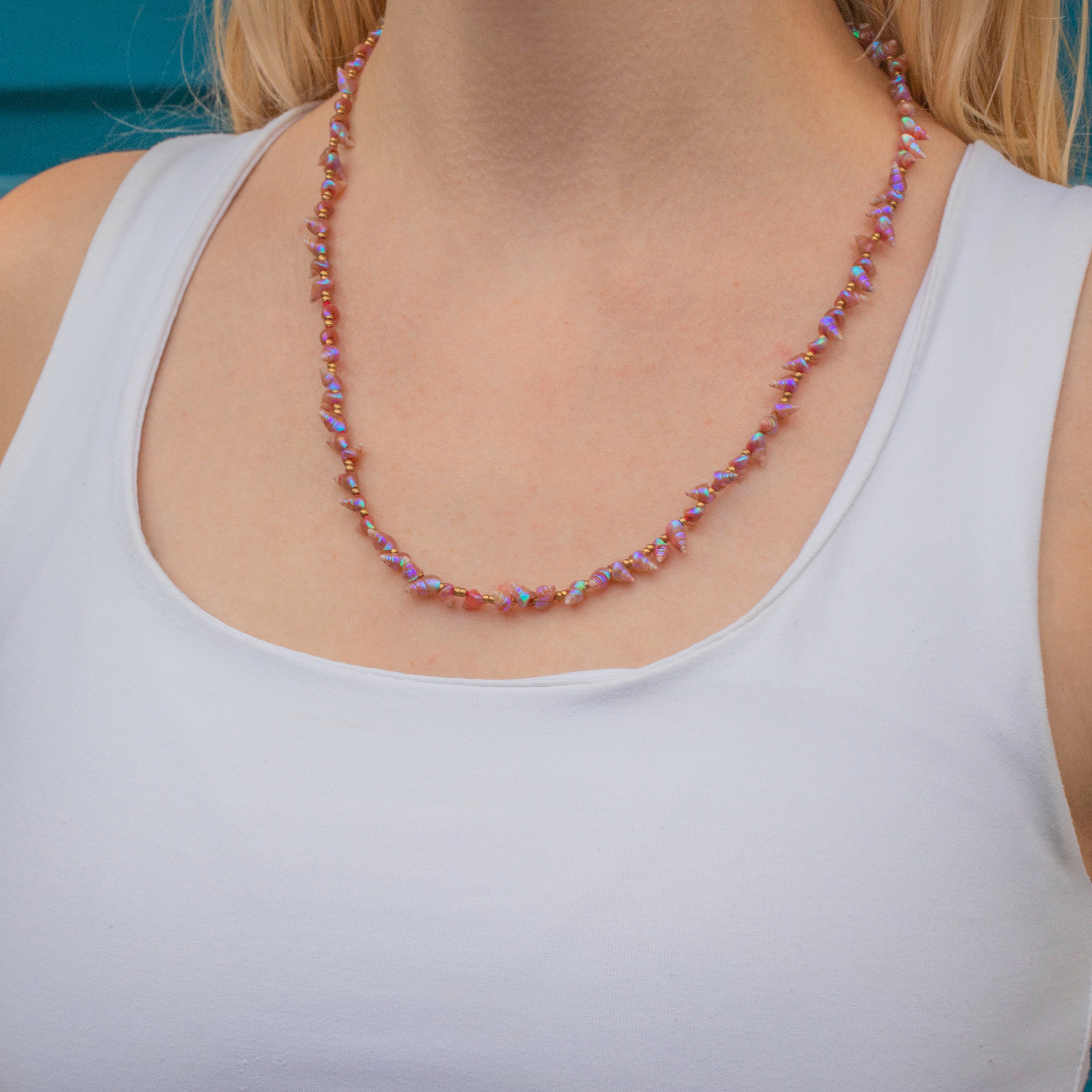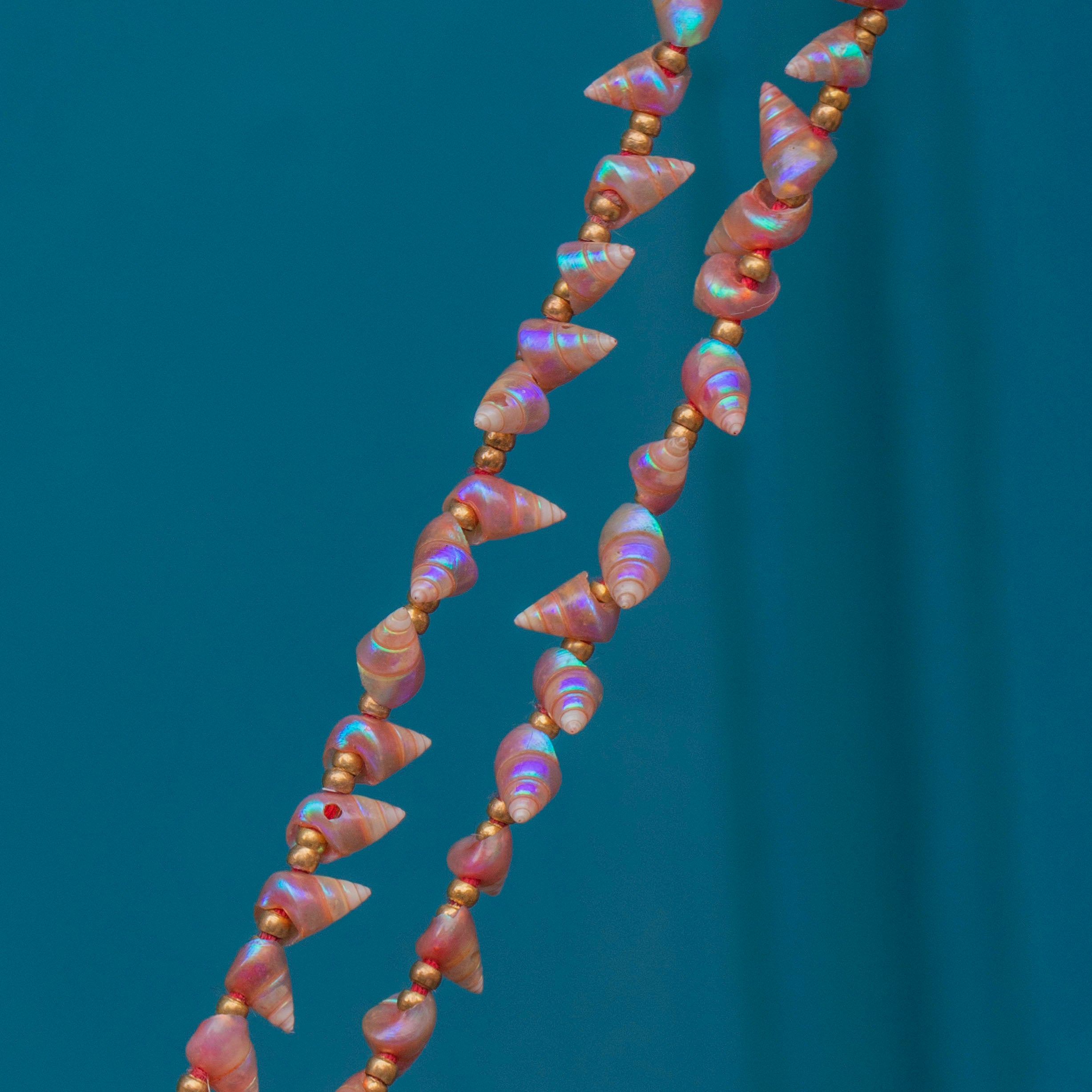 Rare Pink Iridescent Maireener Tasmanian Shell Necklace, 9ct Gold Clasp