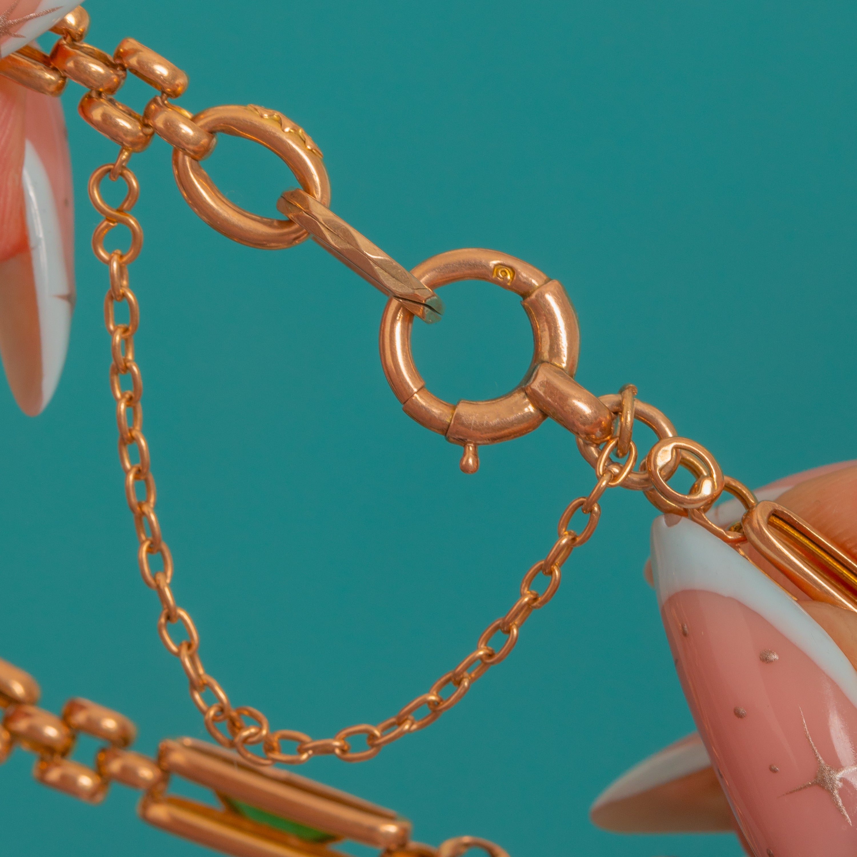 STAMPS: 15 on the jump-ring opposite the clasp.