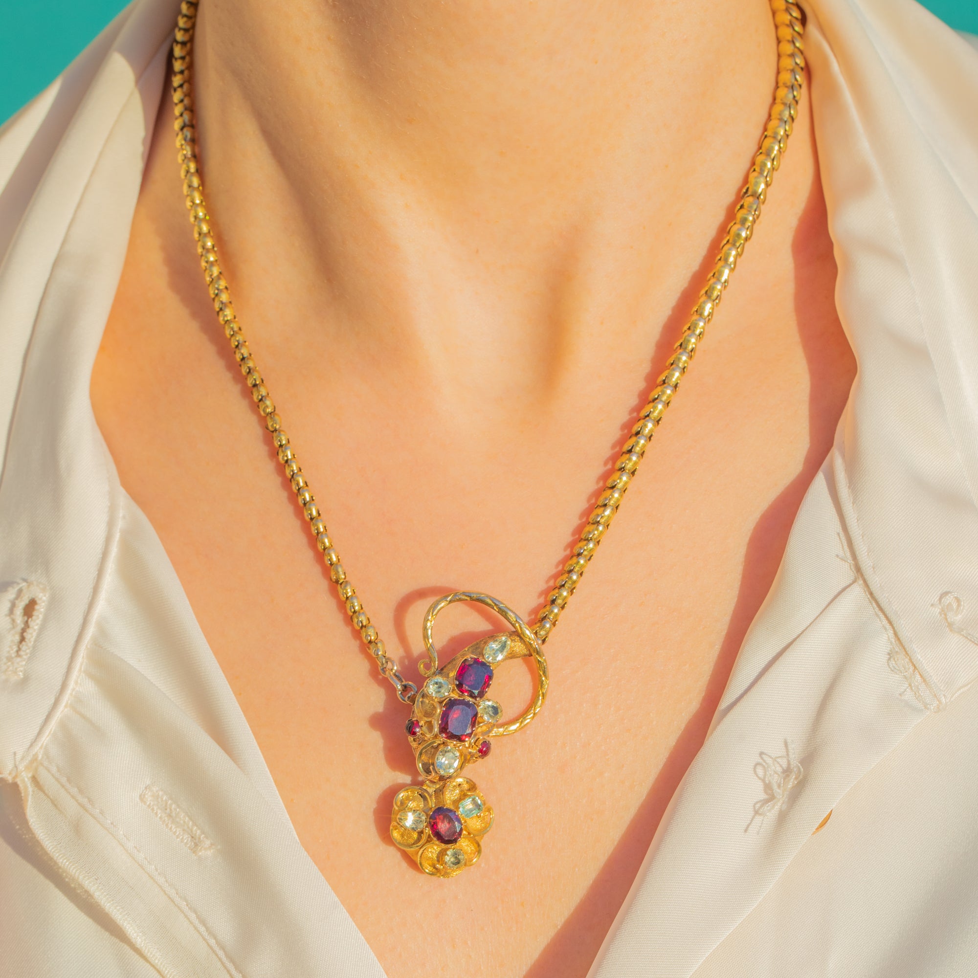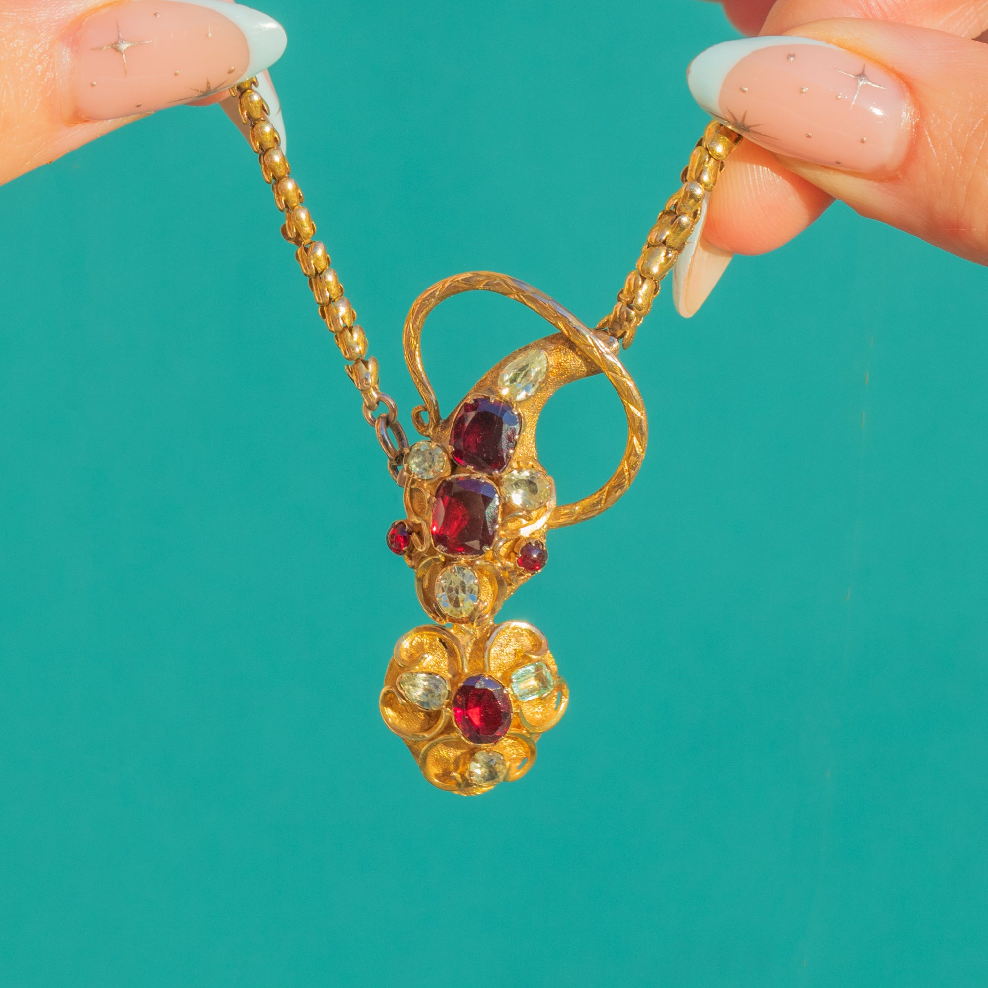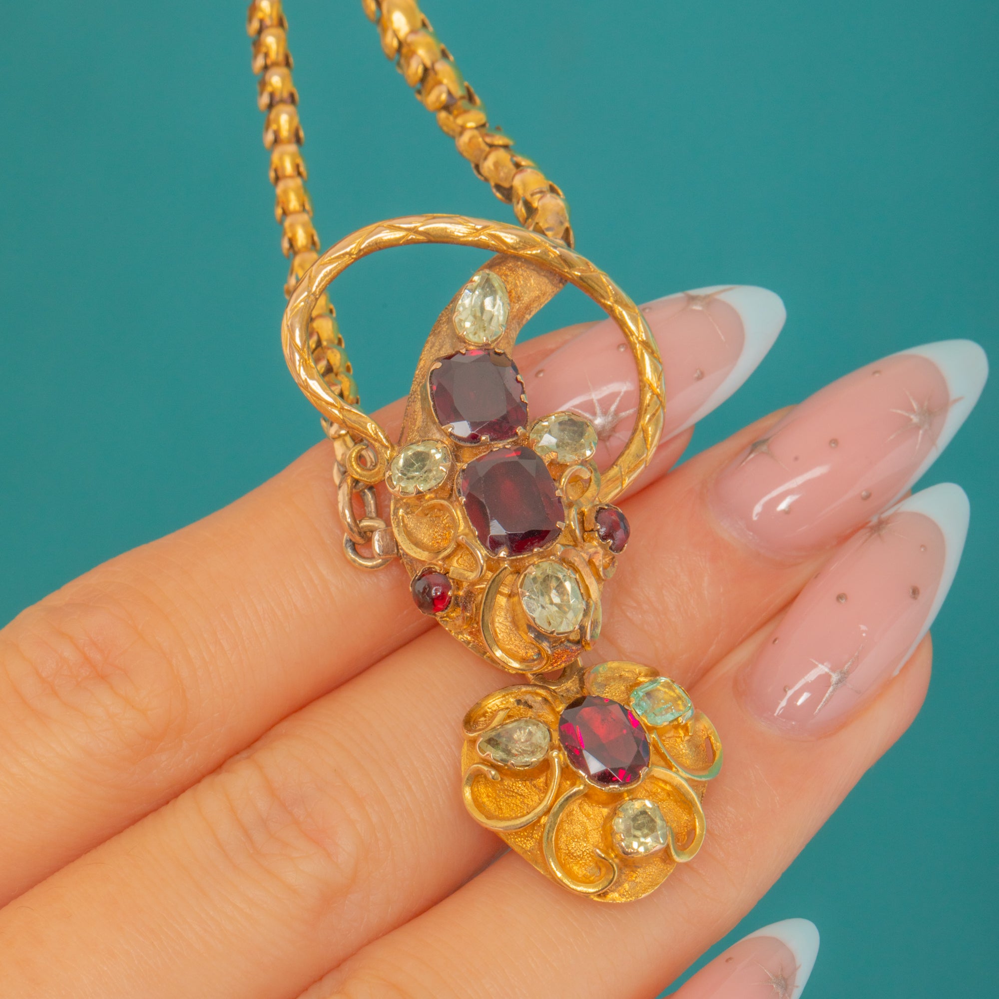 RARE Victorian 18ct Gold Garnet & Chrysoberyl Snake Necklace, c.1870