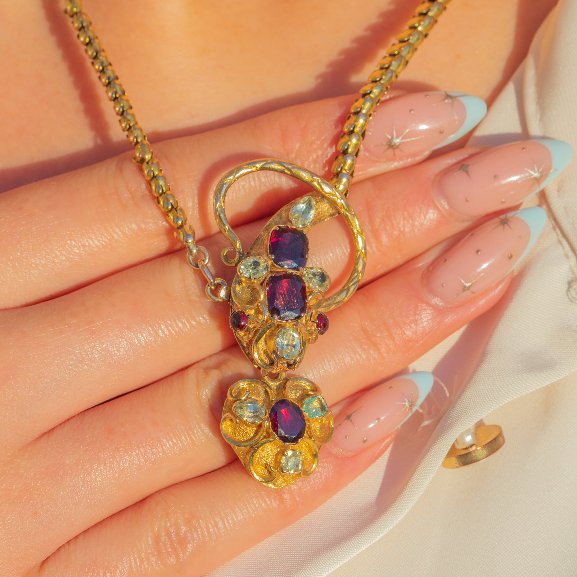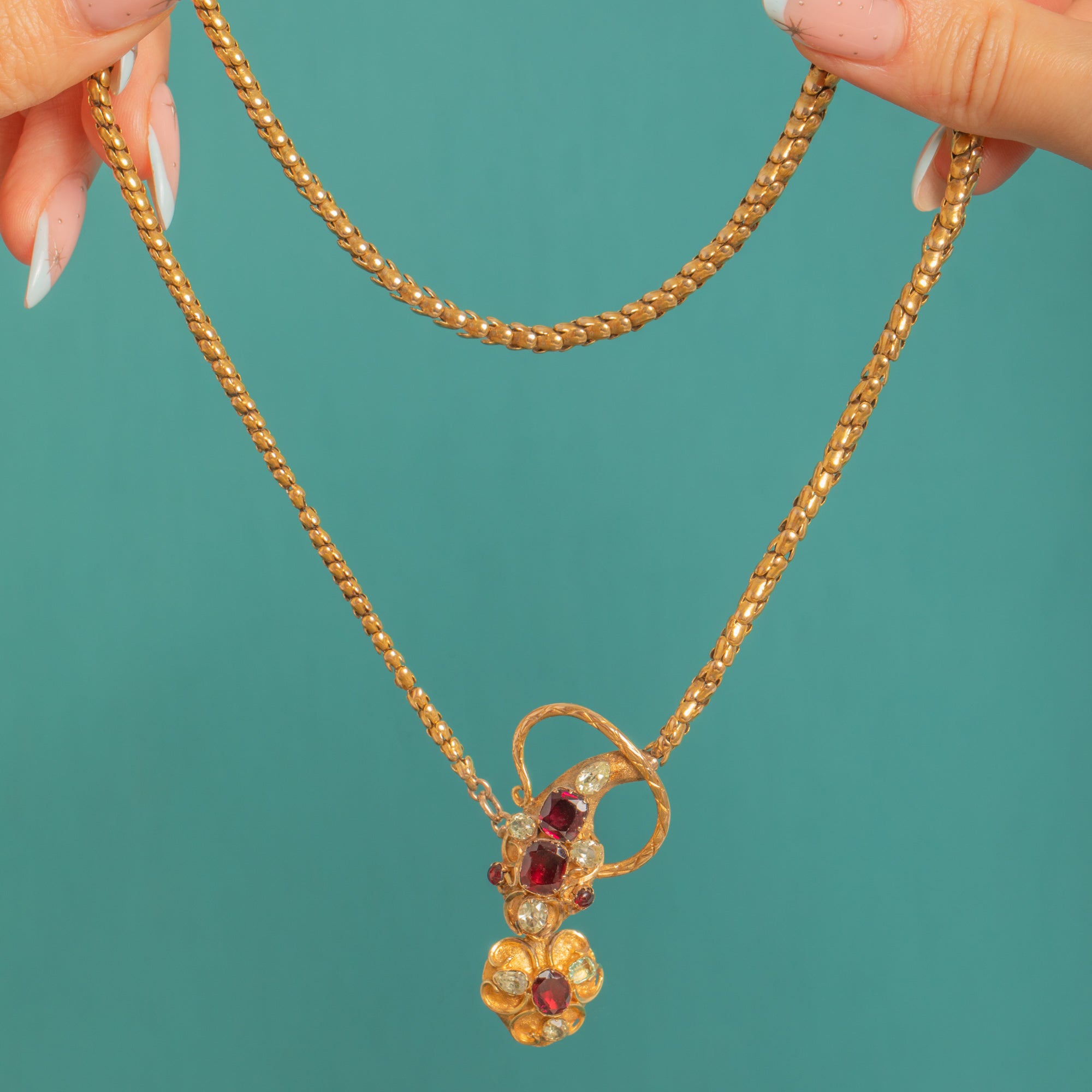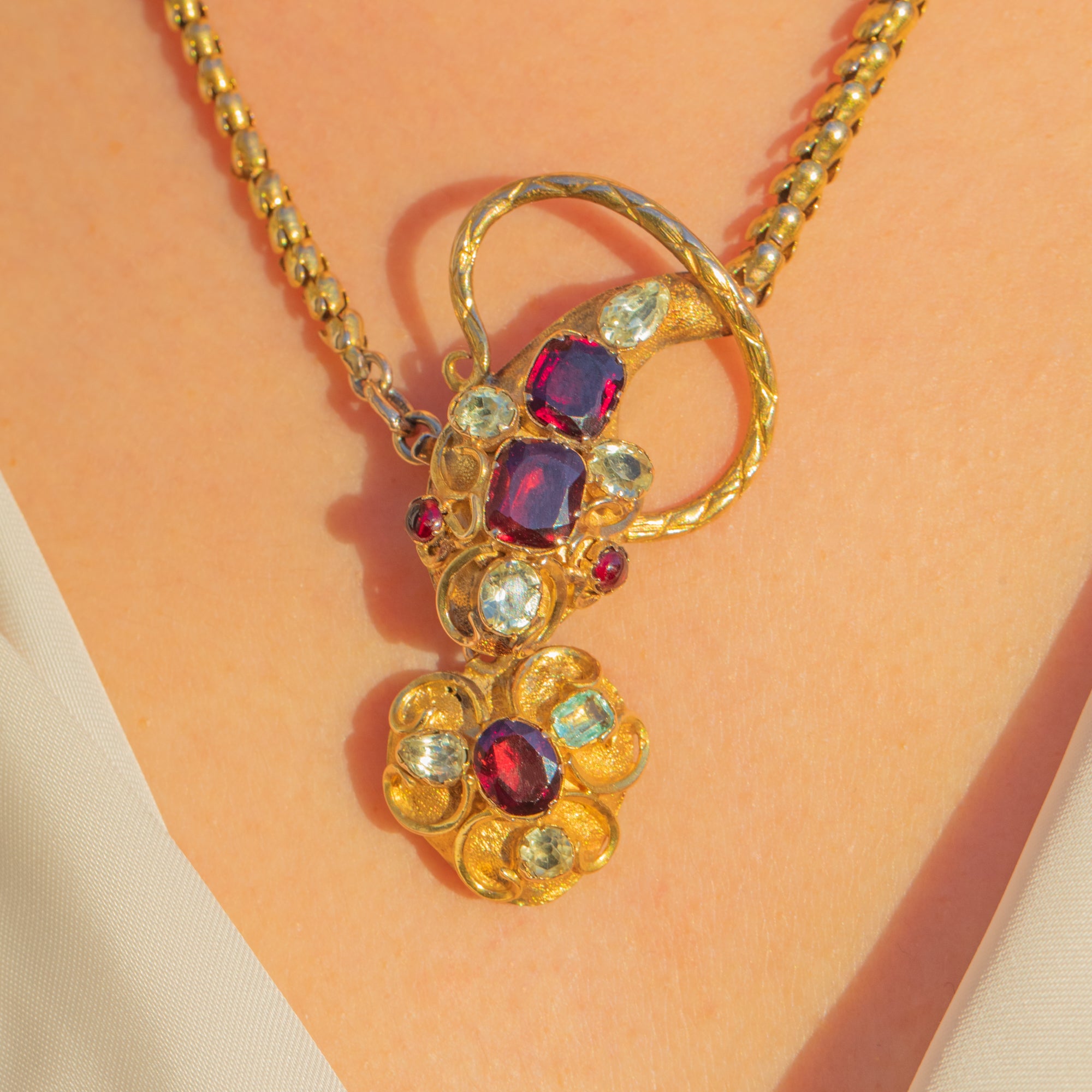 RARE Victorian 18ct Gold Garnet & Chrysoberyl Snake Necklace, c.1870