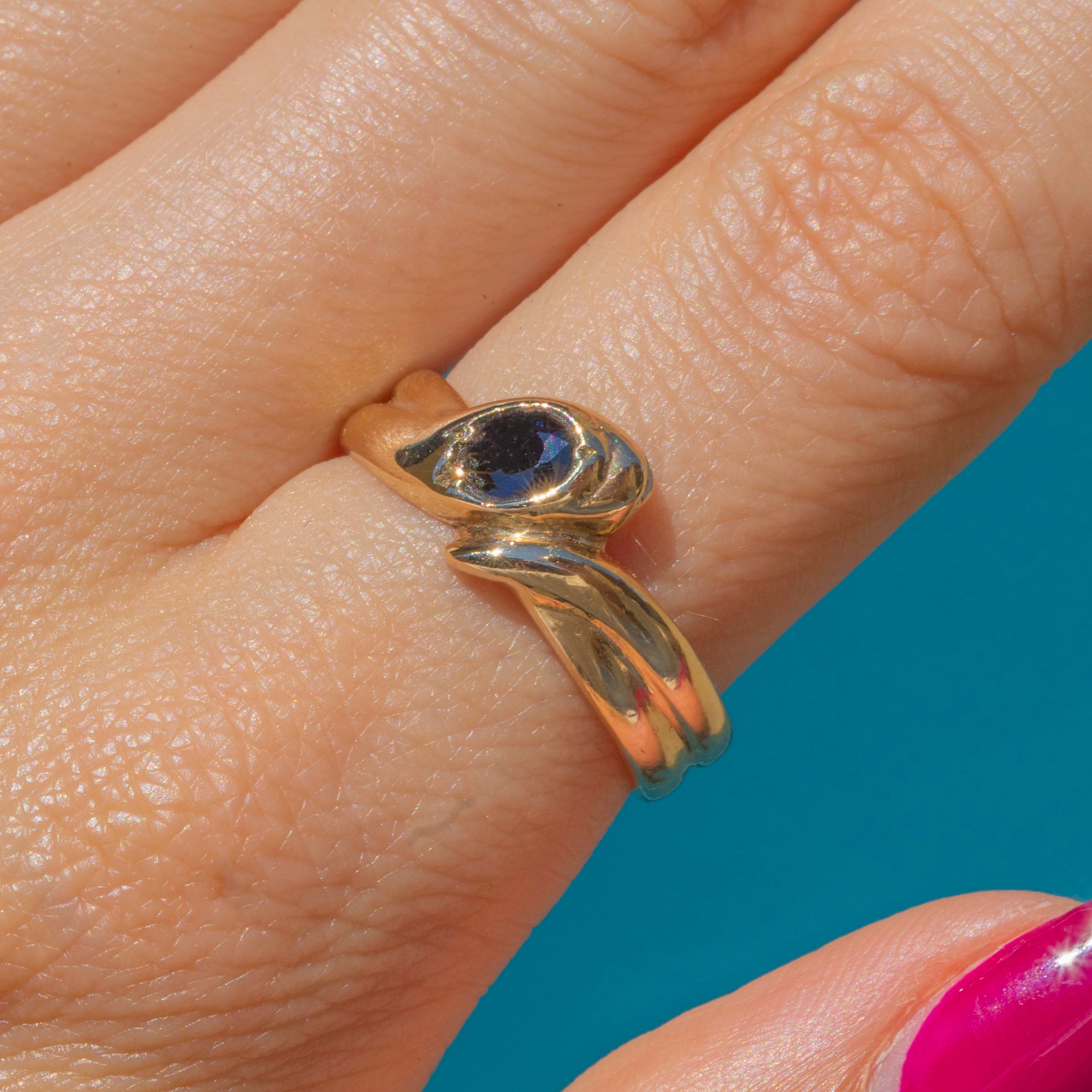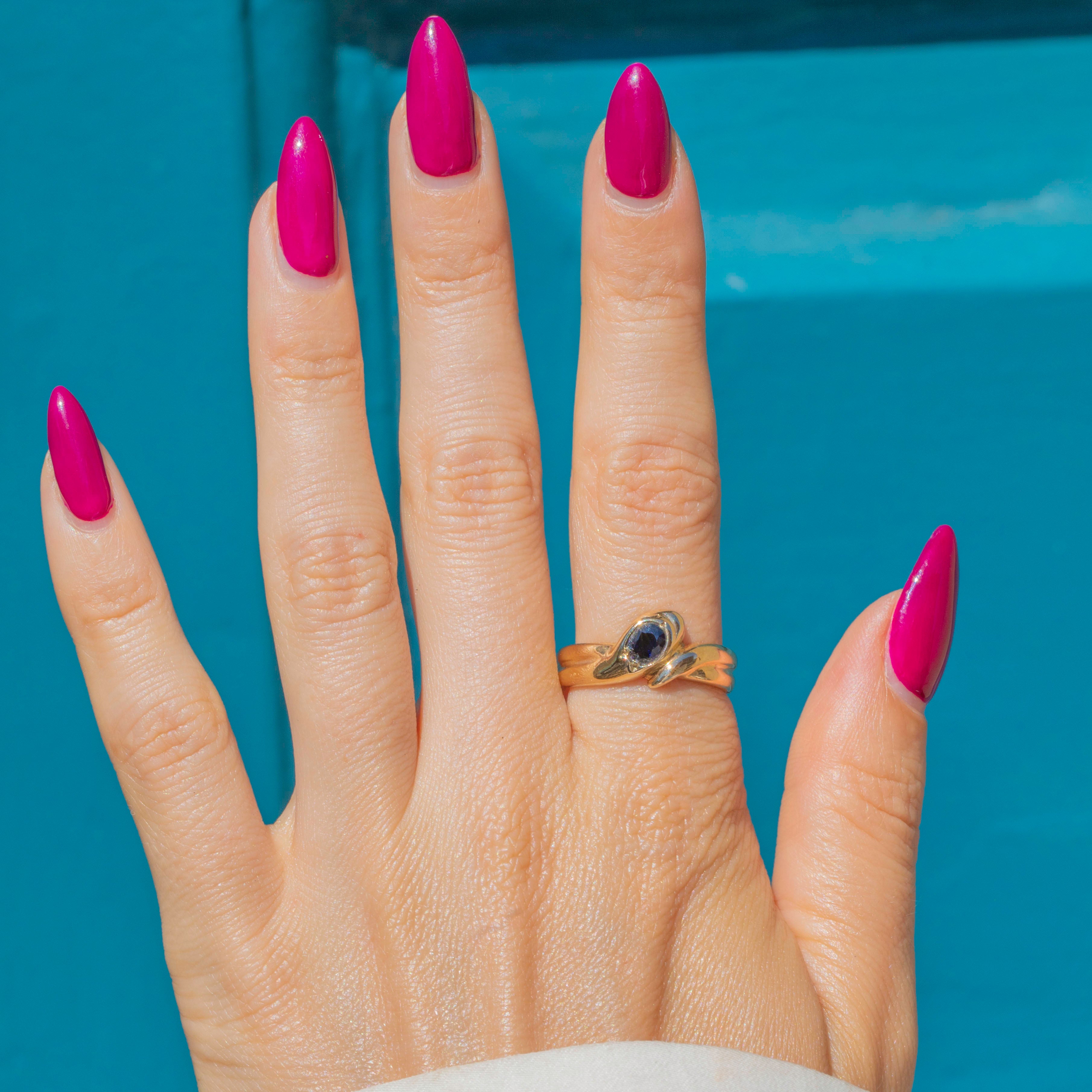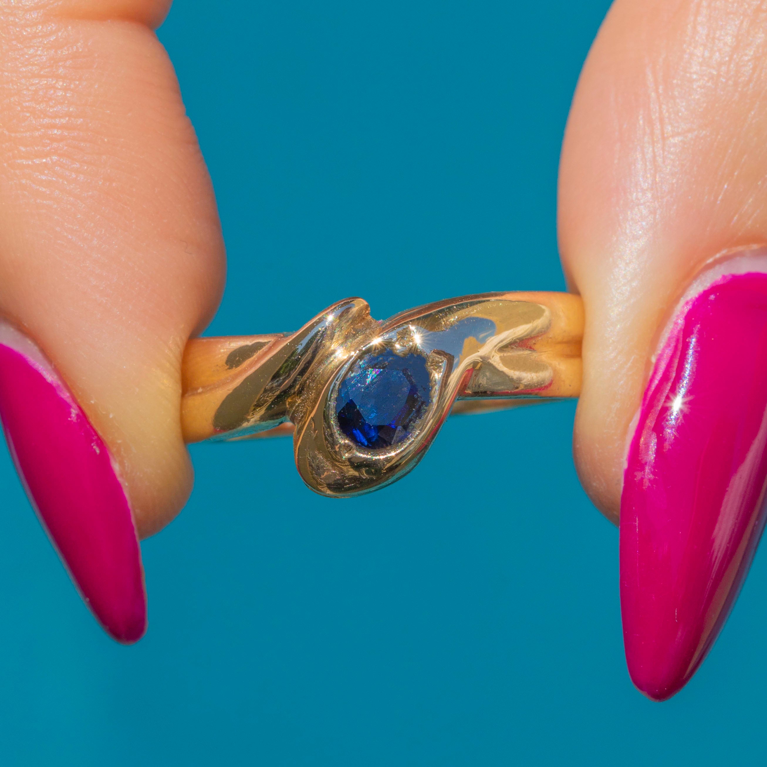 Retro 9ct Gold Sapphire Snake Ring, c.1965
