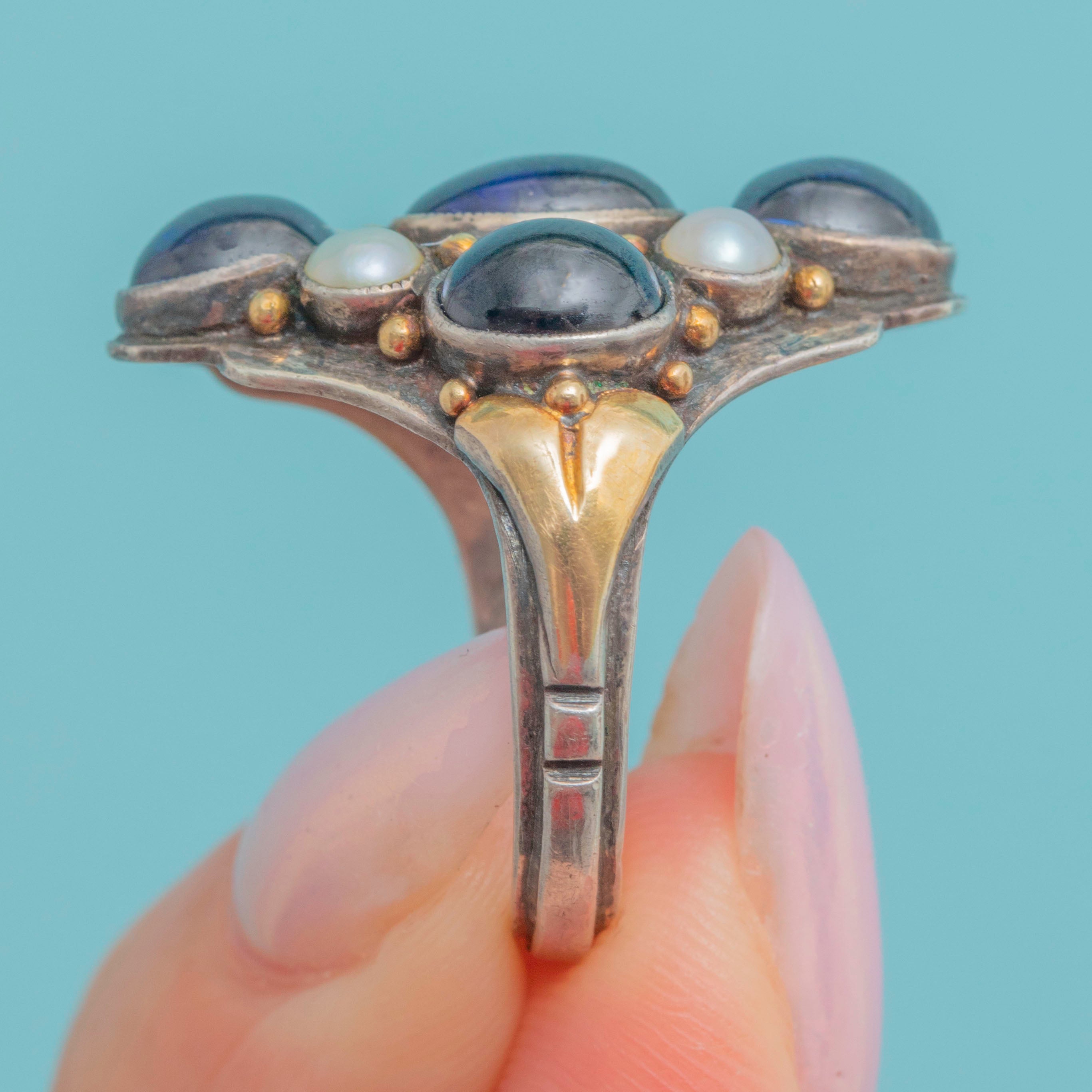 Signed Bernard Instone Arts & Crafts Sapphire Pearl Cluster Ring