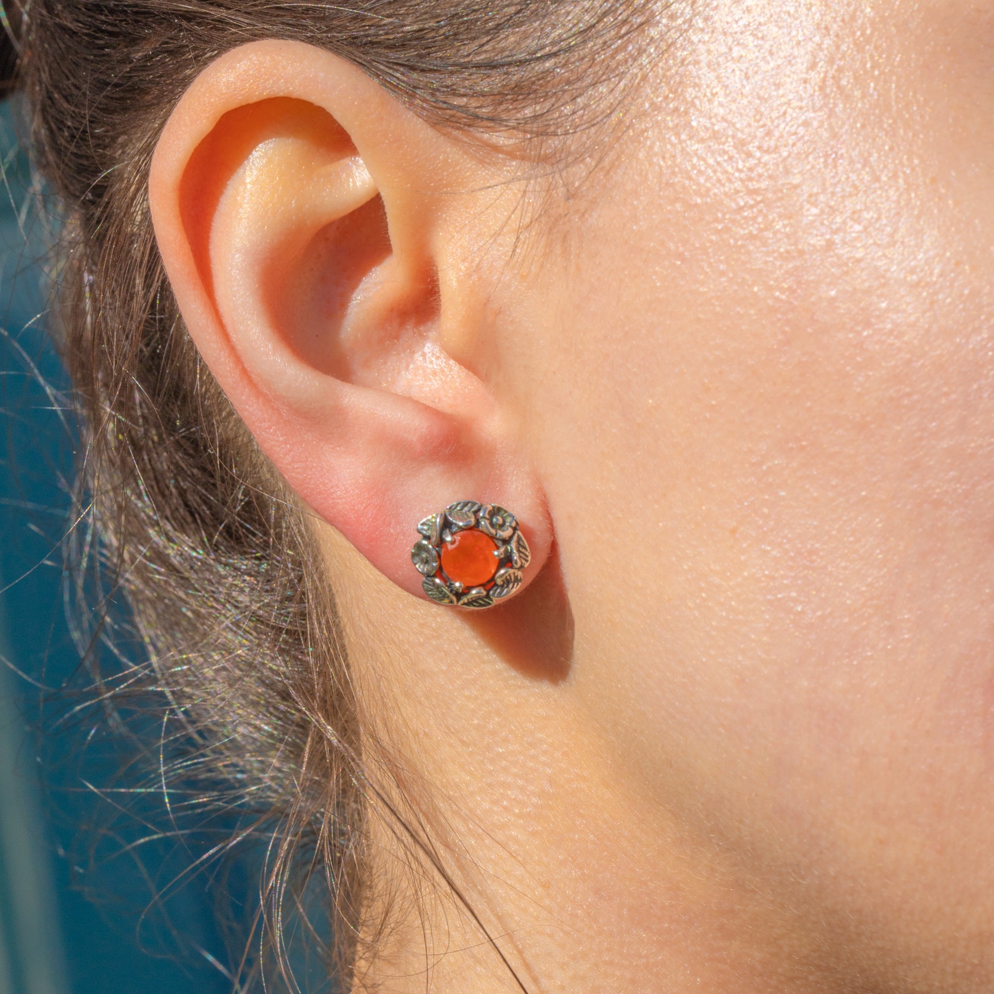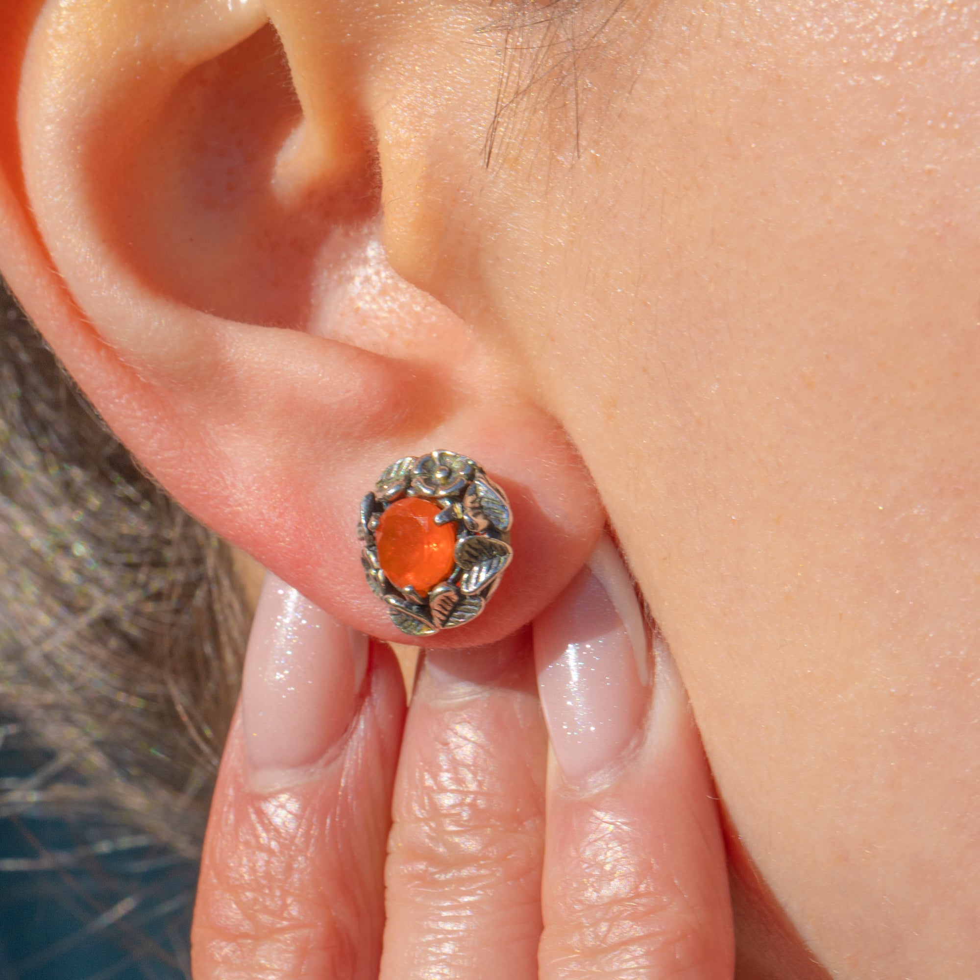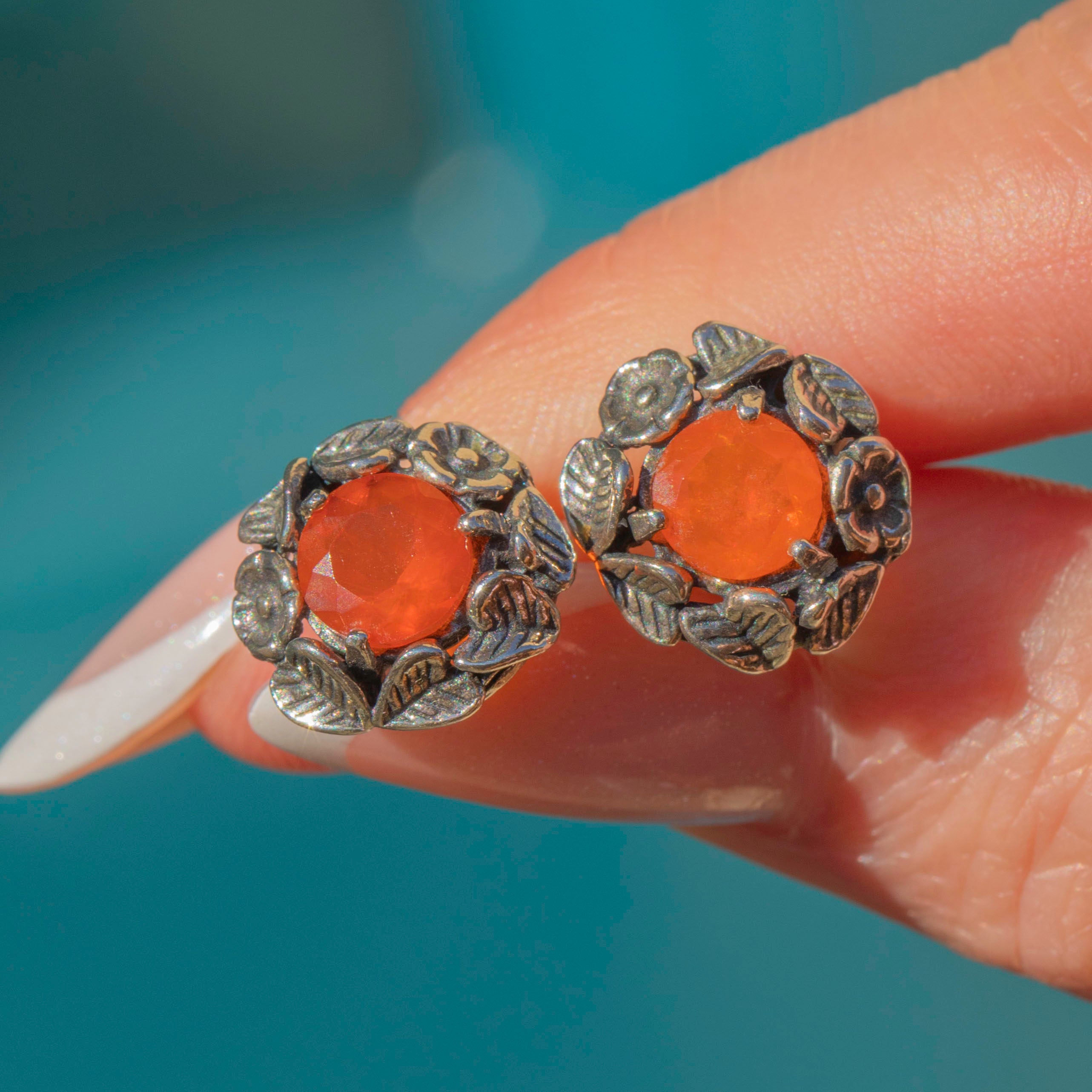 These Silver floral fire Opal studs are ablaze with charm!