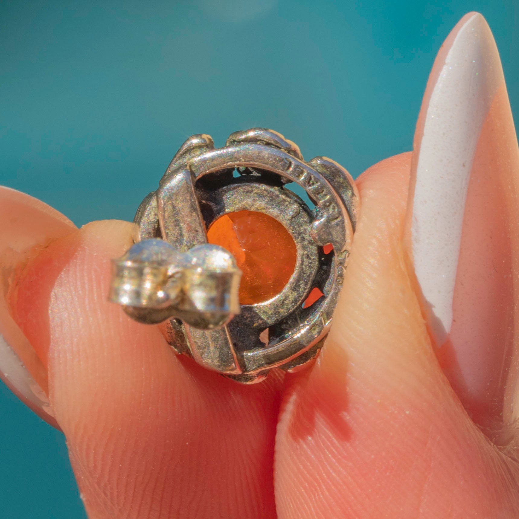 MATERIALS: Tests as Sterling Silver, Natural Solid Fire Opals (1.35ct).