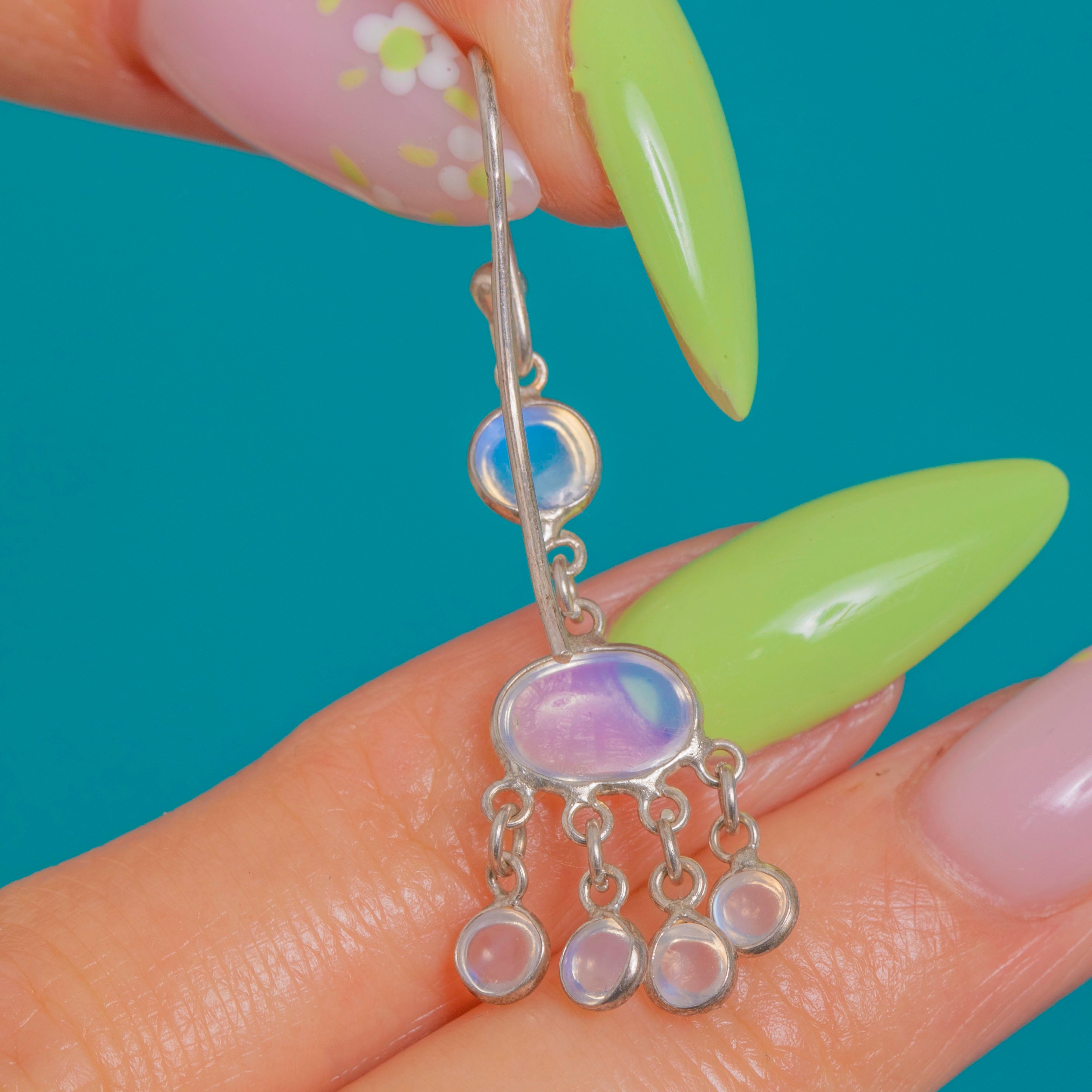 シルバー ムーンストーン シャンデリア ドロップ ピアス