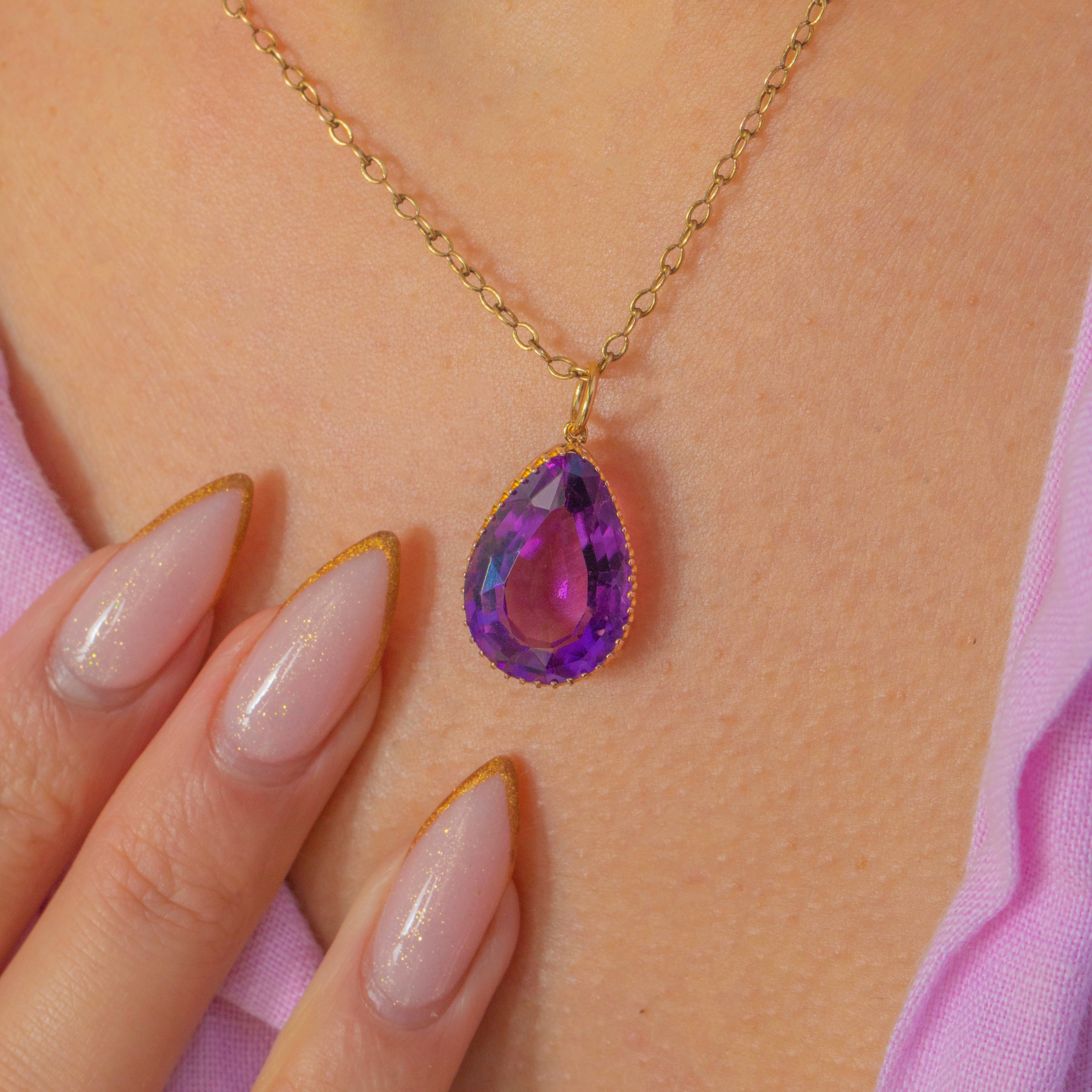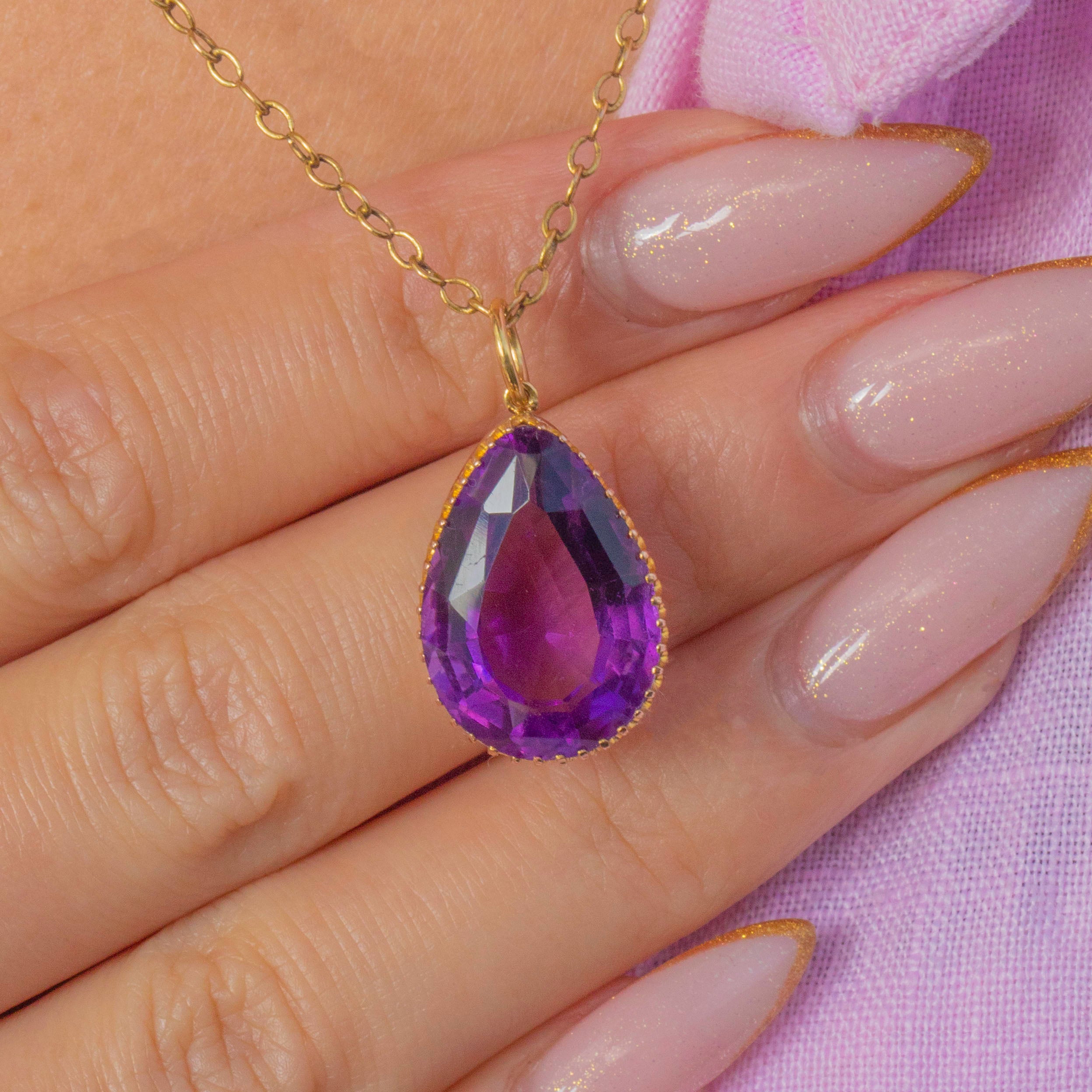 ソリッド15ctゴールド Victorian アメジスト ペンダント