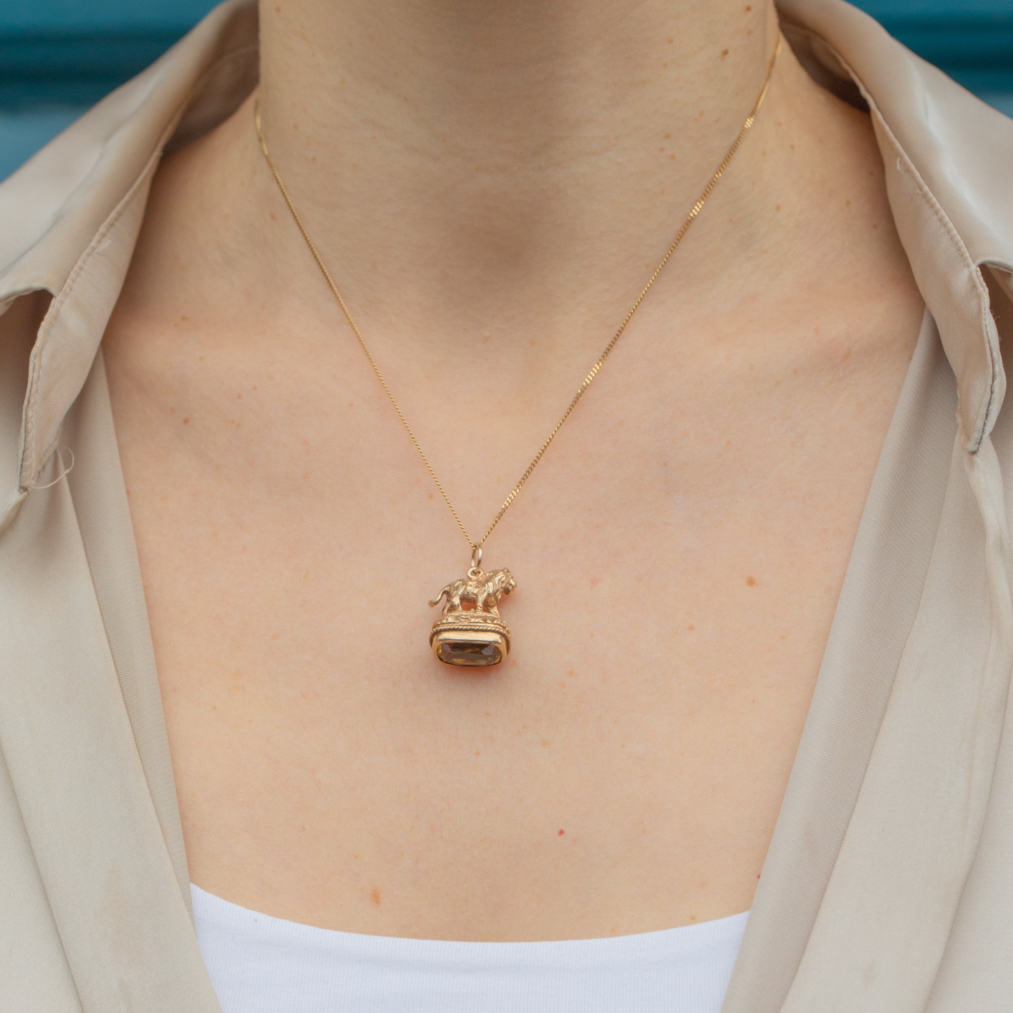 Solid 9ct Gold Lion Citrine Fob Pendant