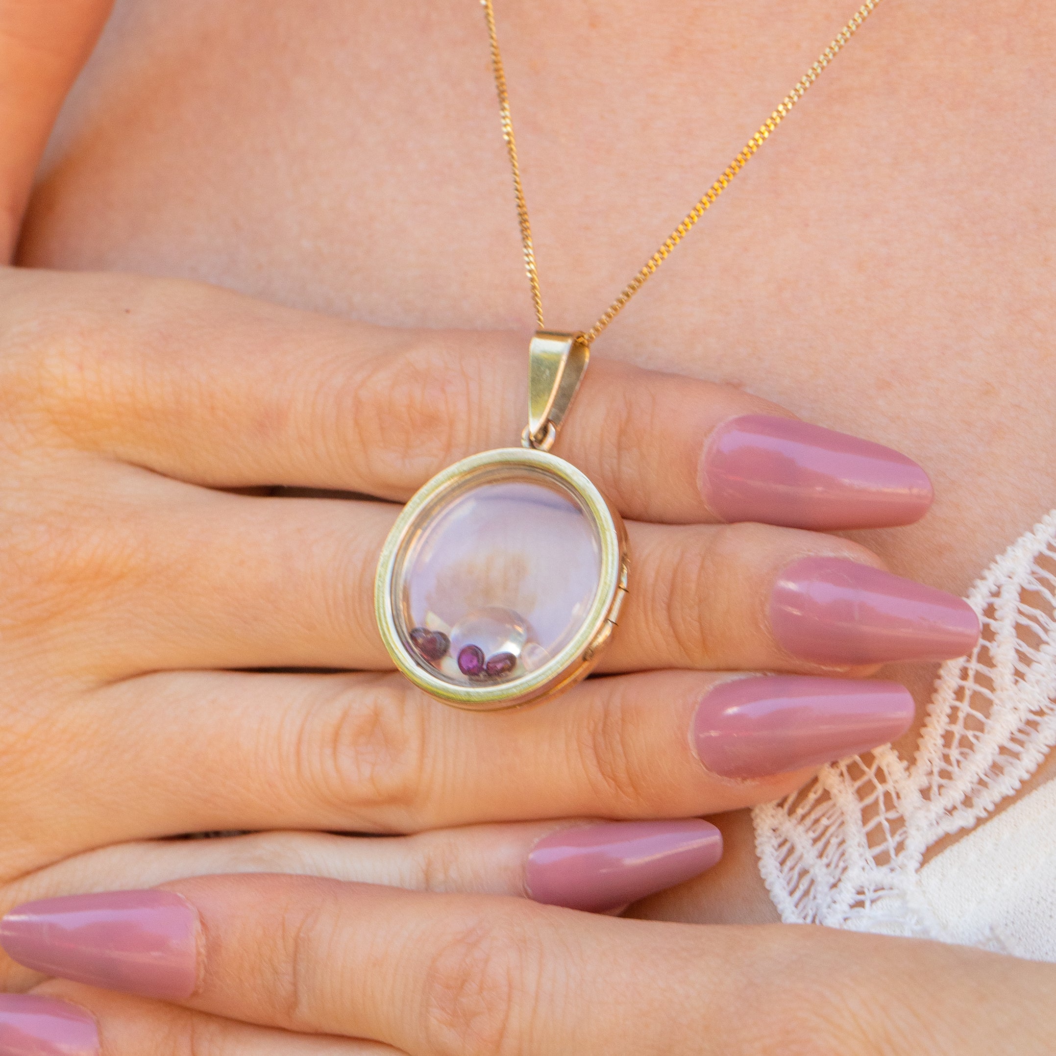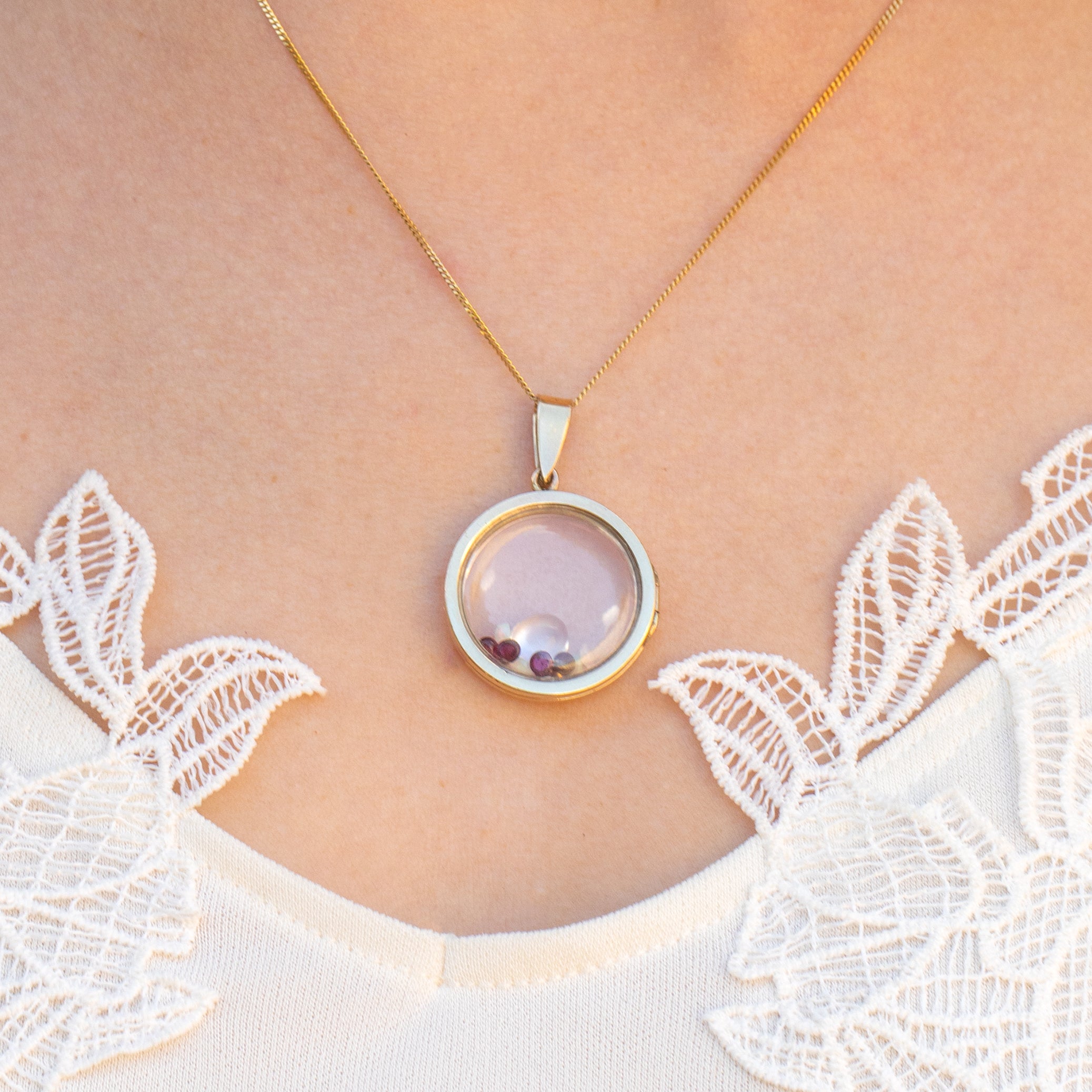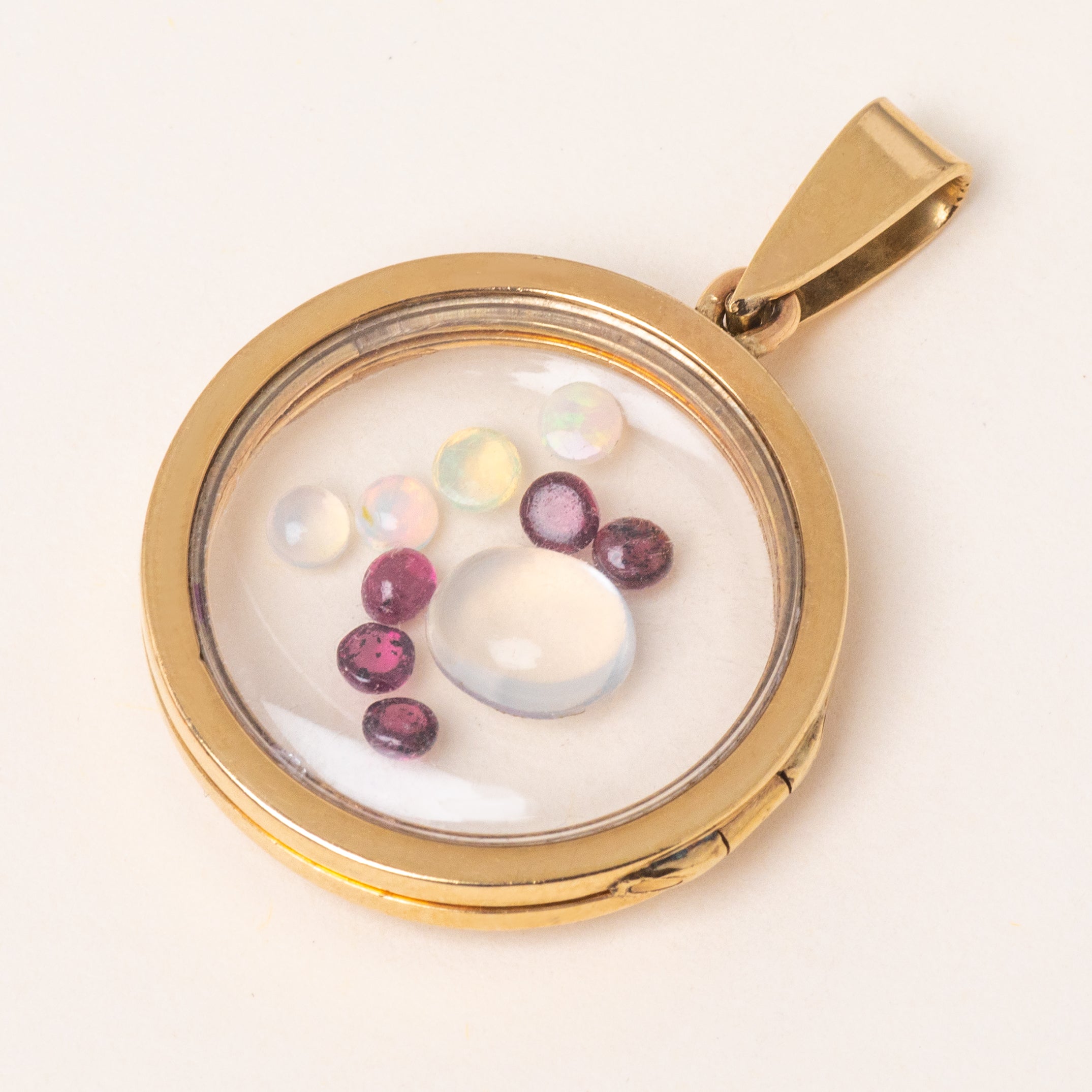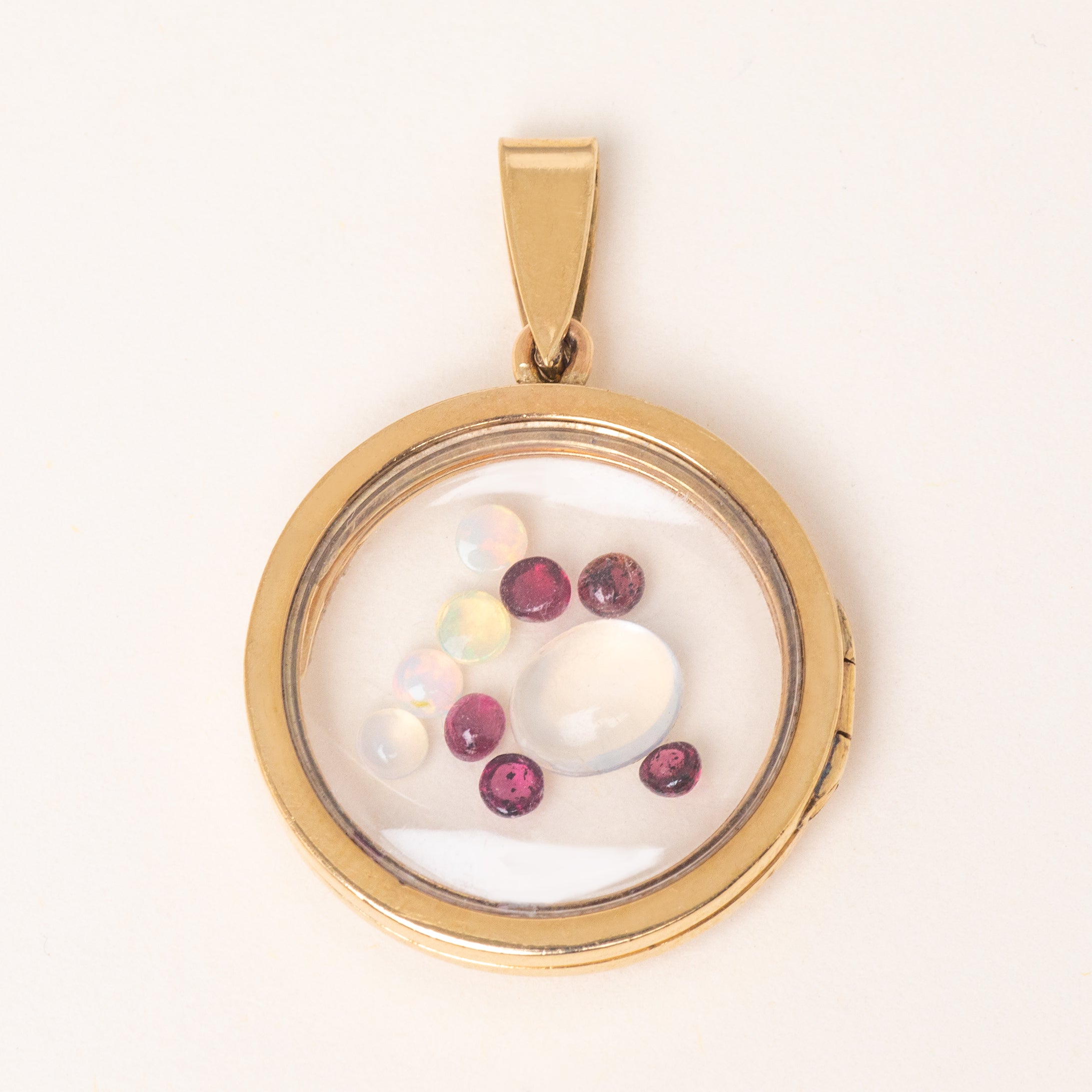 Solid 9ct Gold Round Shaker Locket, with Loose Garnets, Opals & Moonstone