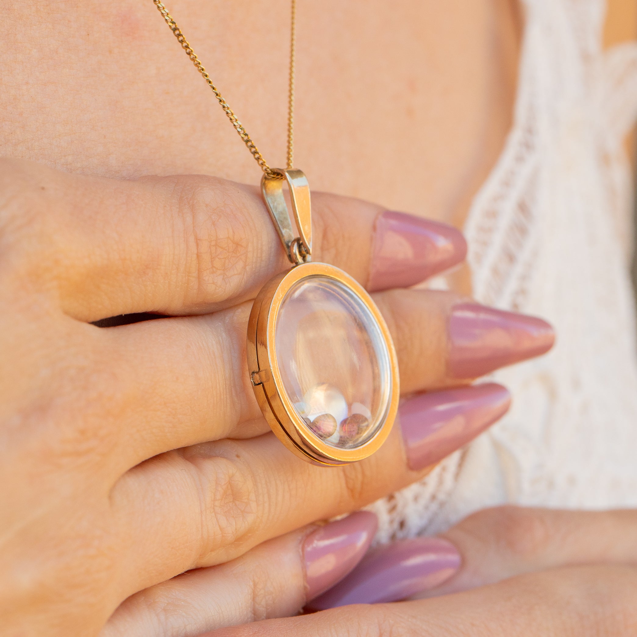 A delightful piece, this solid 9ct Gold round shaker locket guarantees ample wearing and styling opportunities! Crafted from solid buttery Gold with a lovely selection of gemstones, this vintage locket will bring movement to your outfit, and you can easily customise her by adding your own gemstones too.