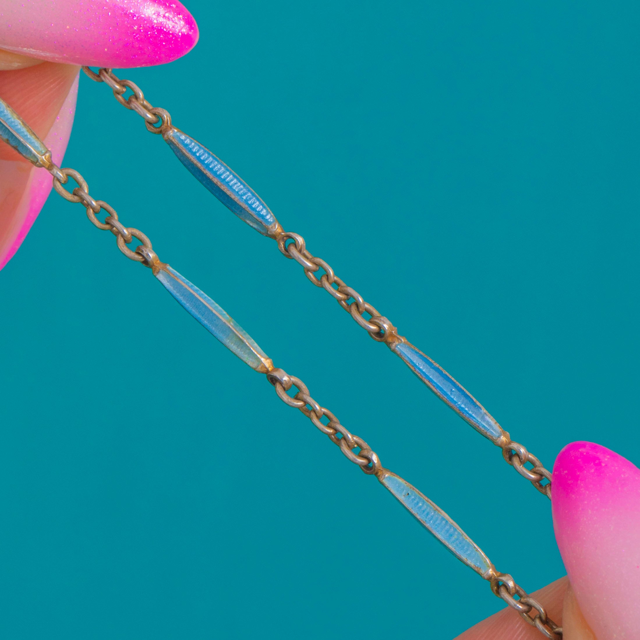 壮麗なEdwardian時代 氷青色七宝細工 婦人用懐中時計と22インチ七宝細工鎖