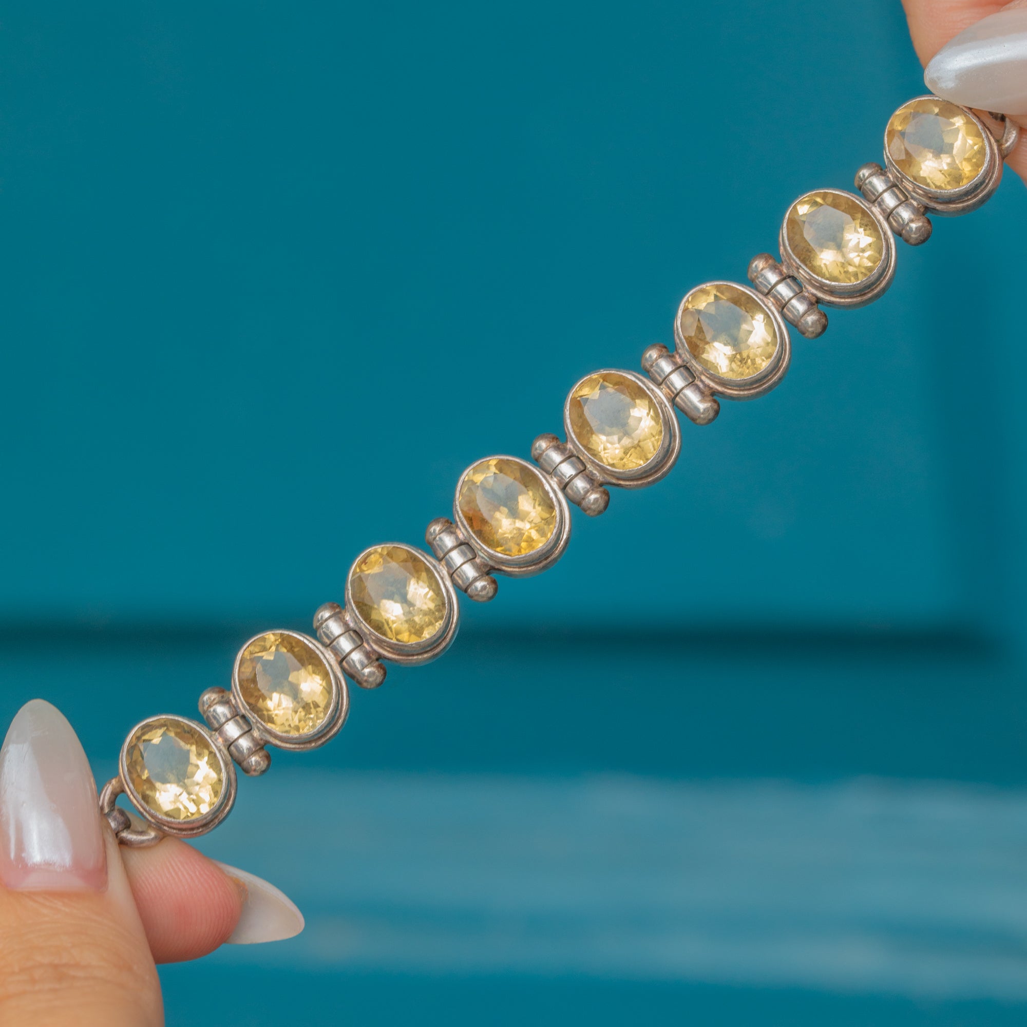 EXCELLENT. An excellent Sterling Silver Citrine bracelet. The Citrines are secure and they have a gorgeous colour to them. The bracelet comes with a full set of hallmarks and very little wear to note.