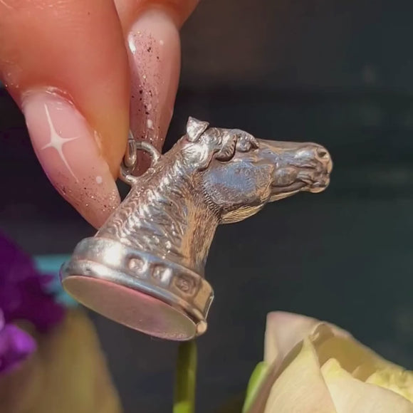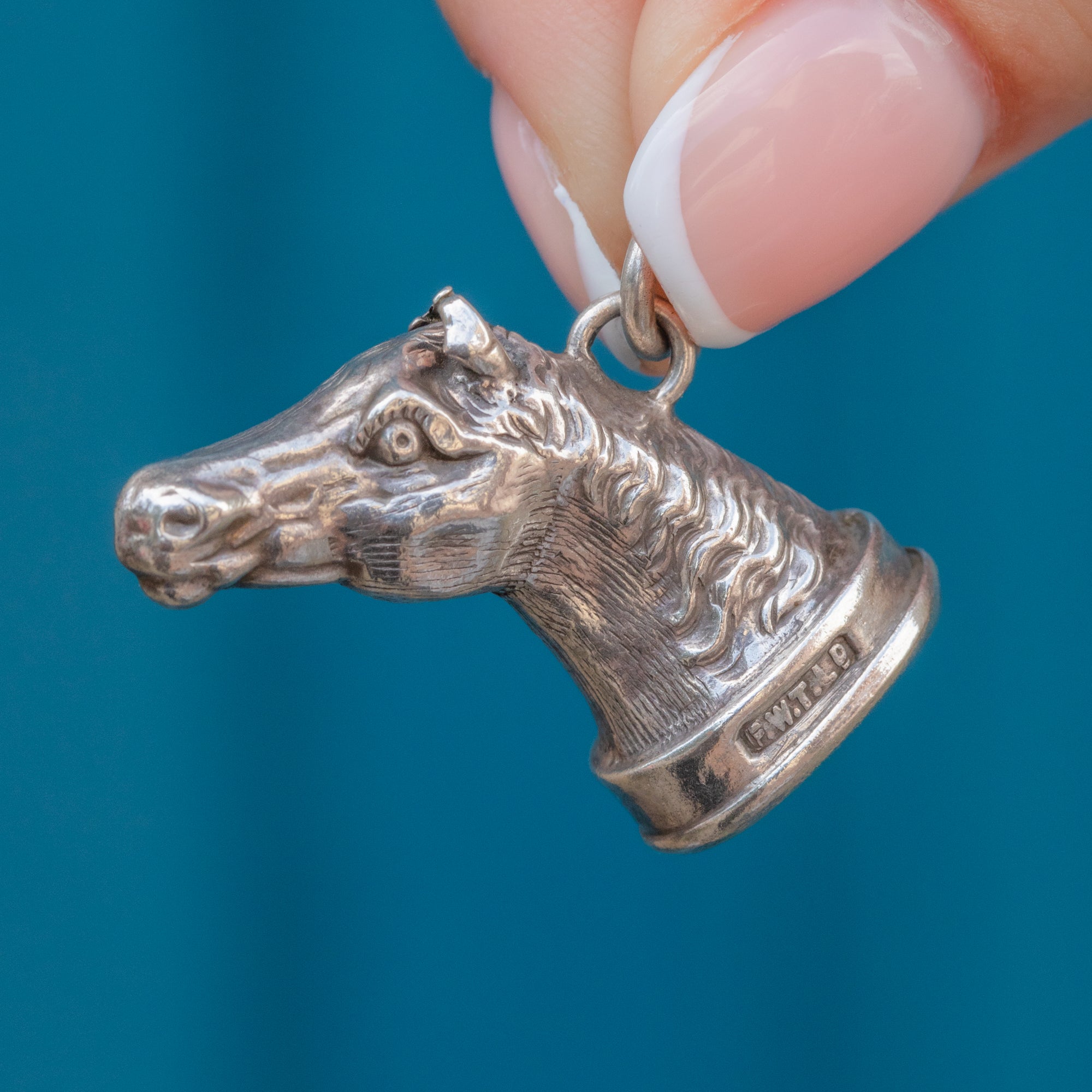 EXCELLENT This Sterling Silver Horse's Head Pendant Fob is in tip top condition, at the grand age of over 100 years old! Her Sterling Silver is shiny and glossy and her engravings are crisp, without any scuffs or signs of wear. Clearly Hallmarked, she will be worn and adored for generations more!