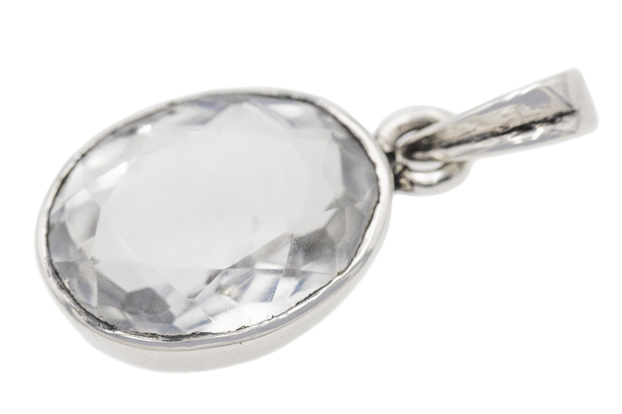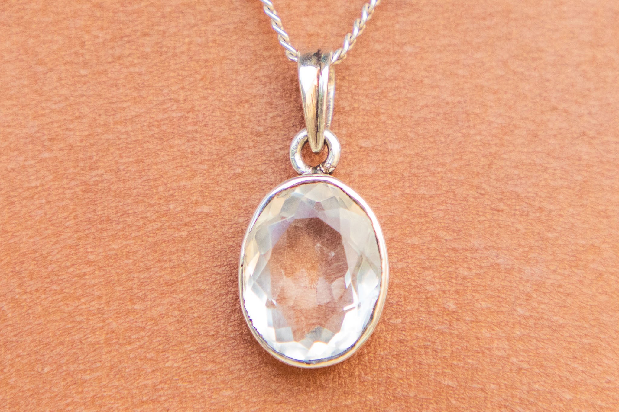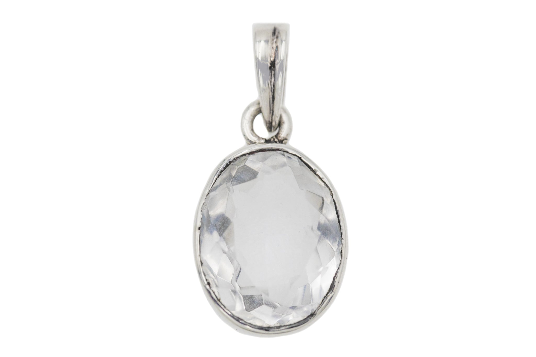 スターリングシルバー オーバル ロッククリスタル ペンダント、4.70ct