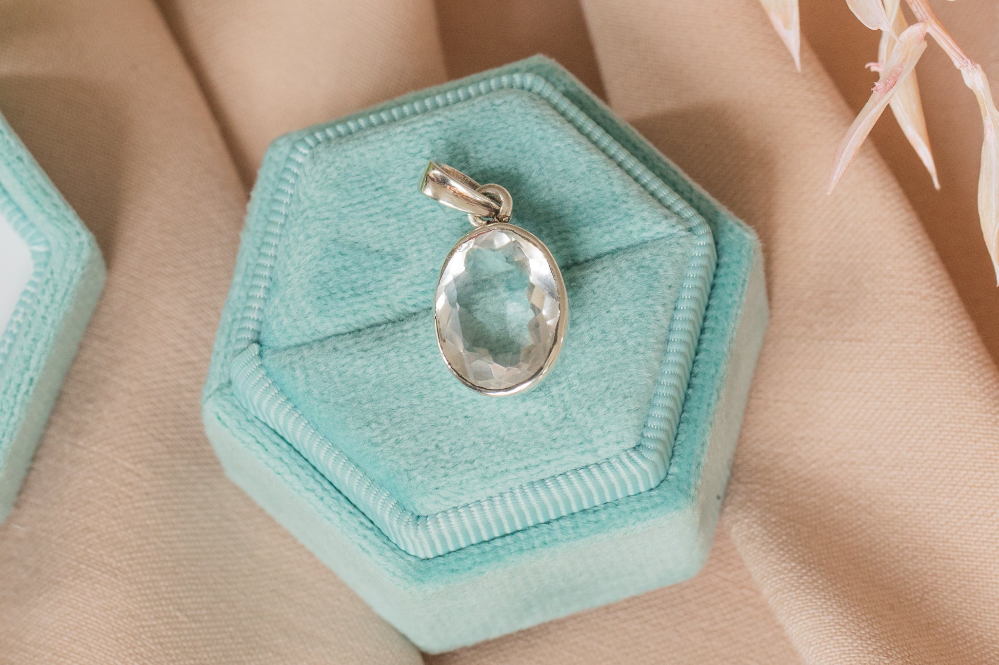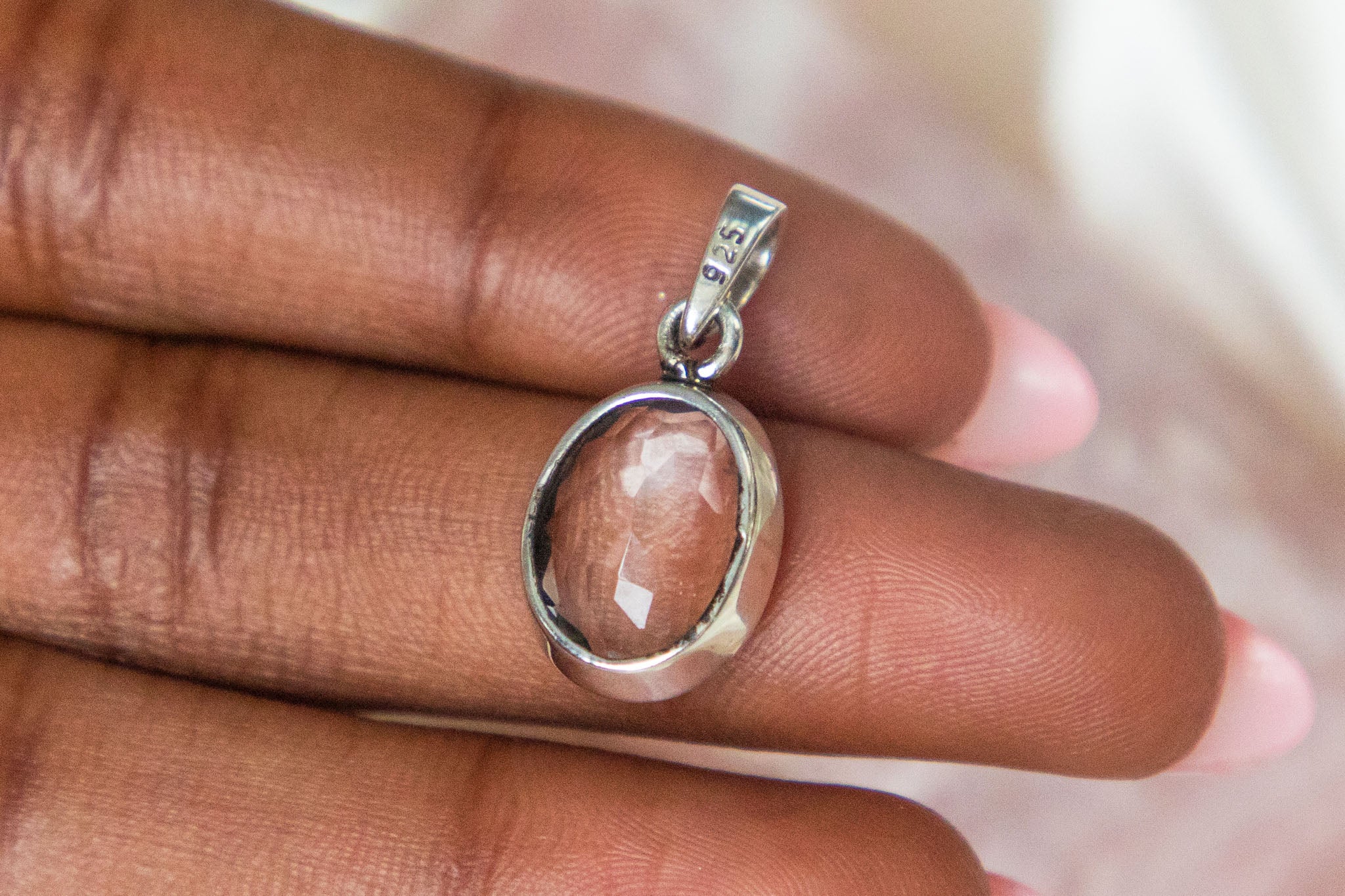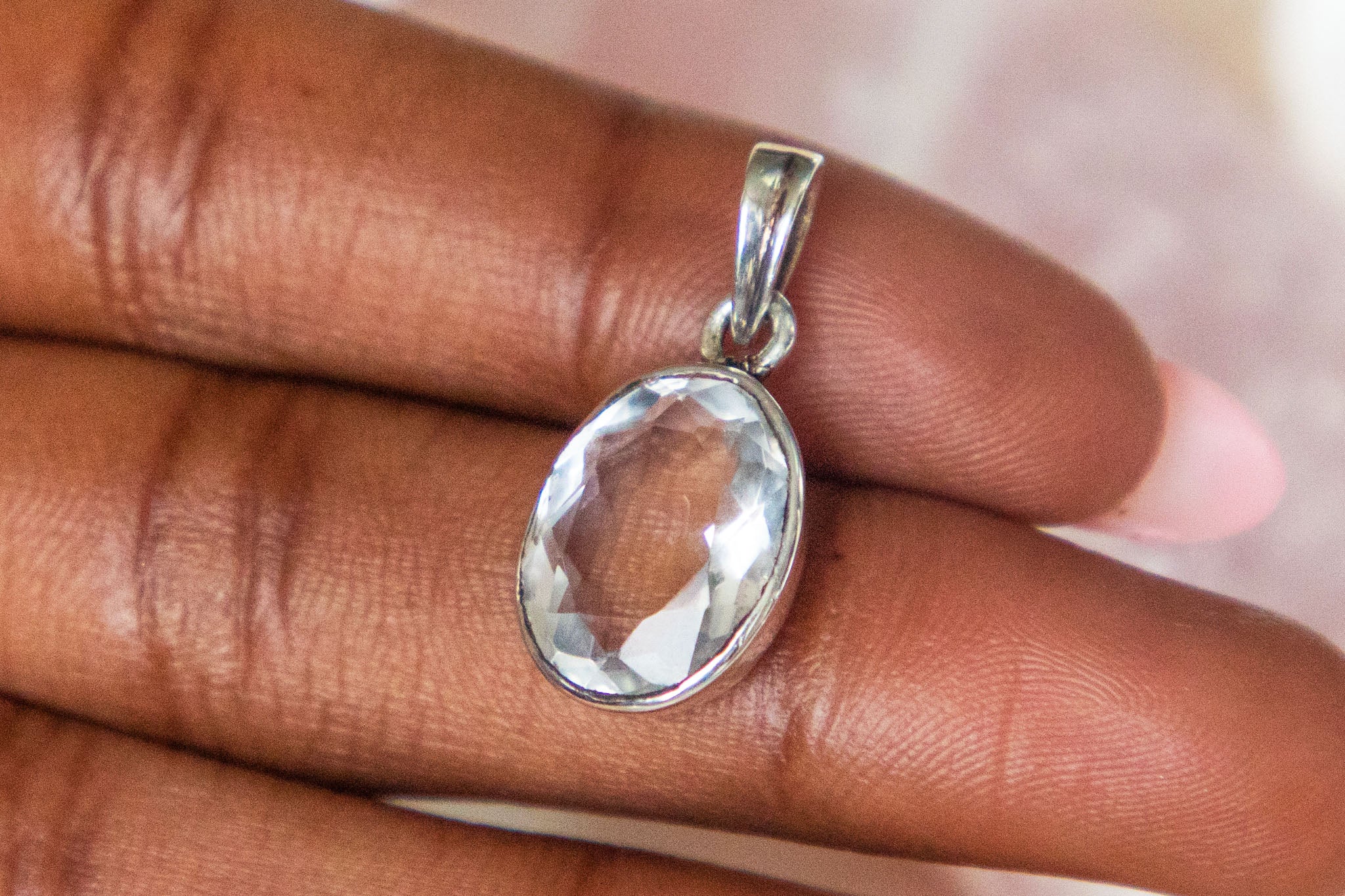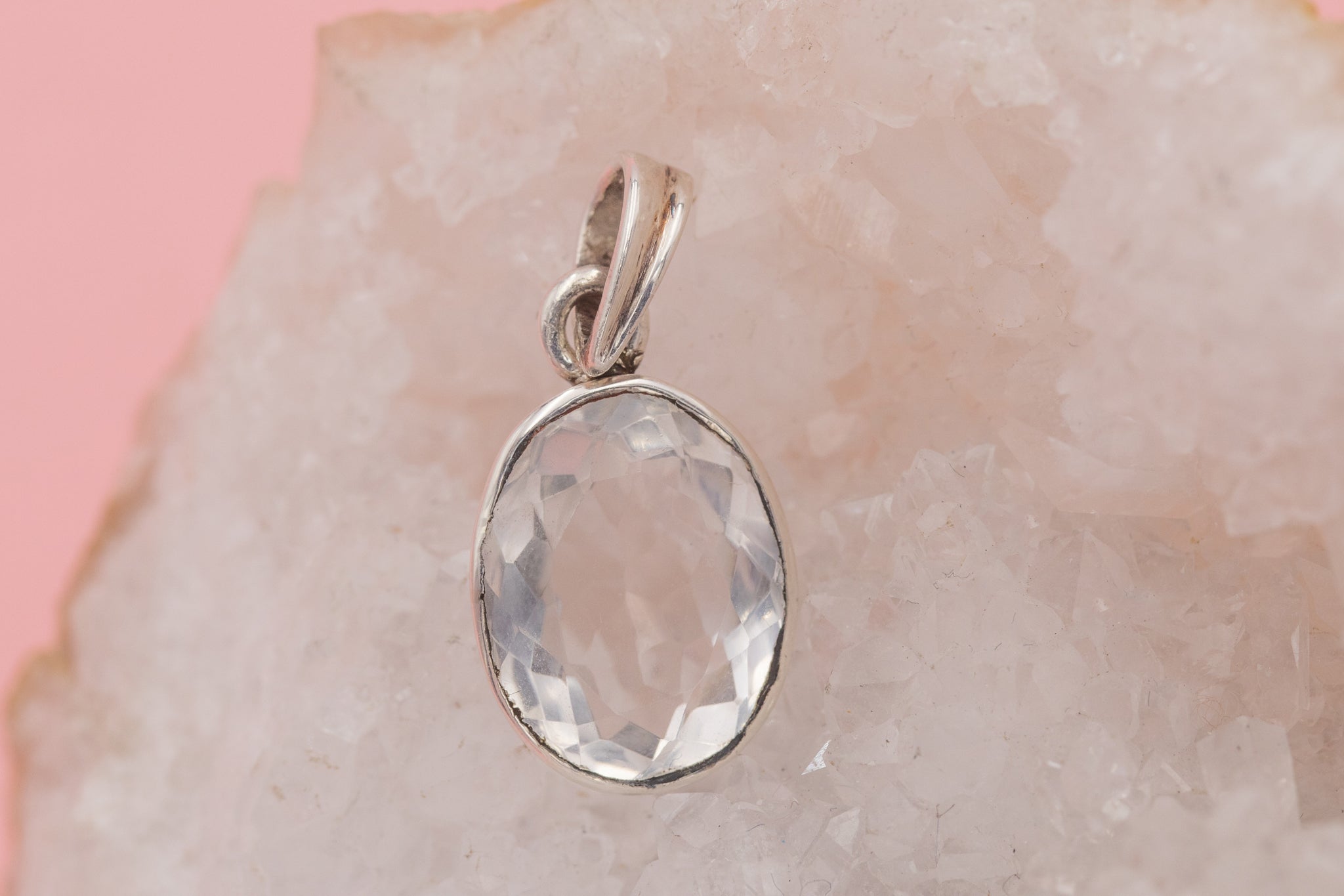 スターリングシルバー オーバル ロッククリスタル ペンダント、4.70ct