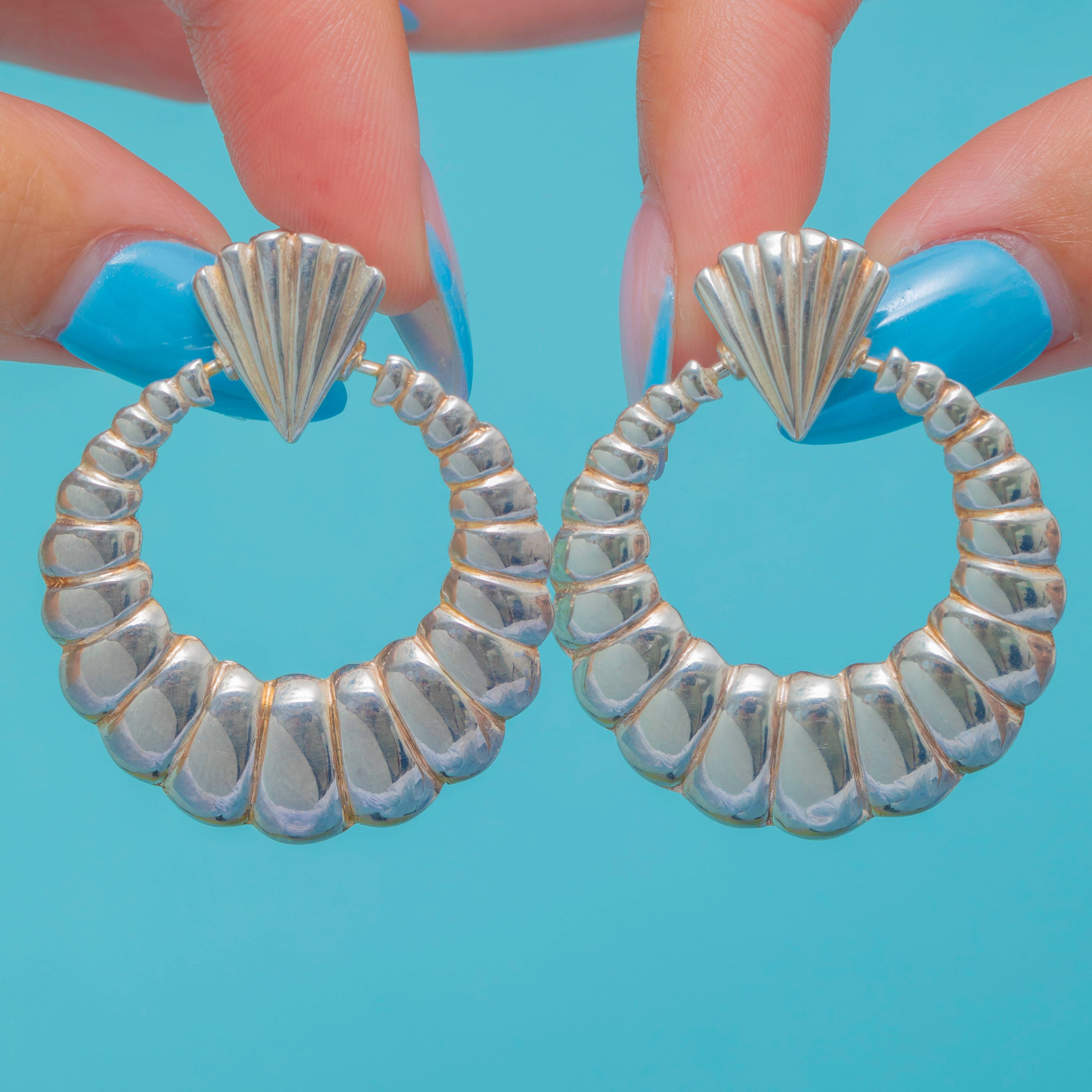 Sterling Silver Scallop Edge Door Knocker Earrings