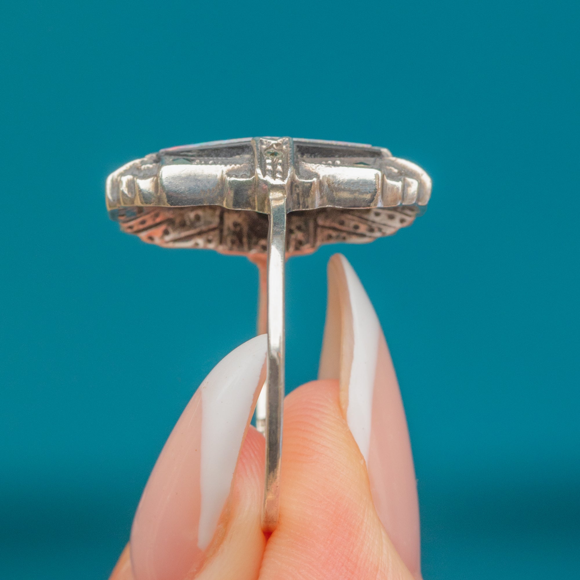 Striking Art Deco Silver Opal Doublet Marcasite Ring
