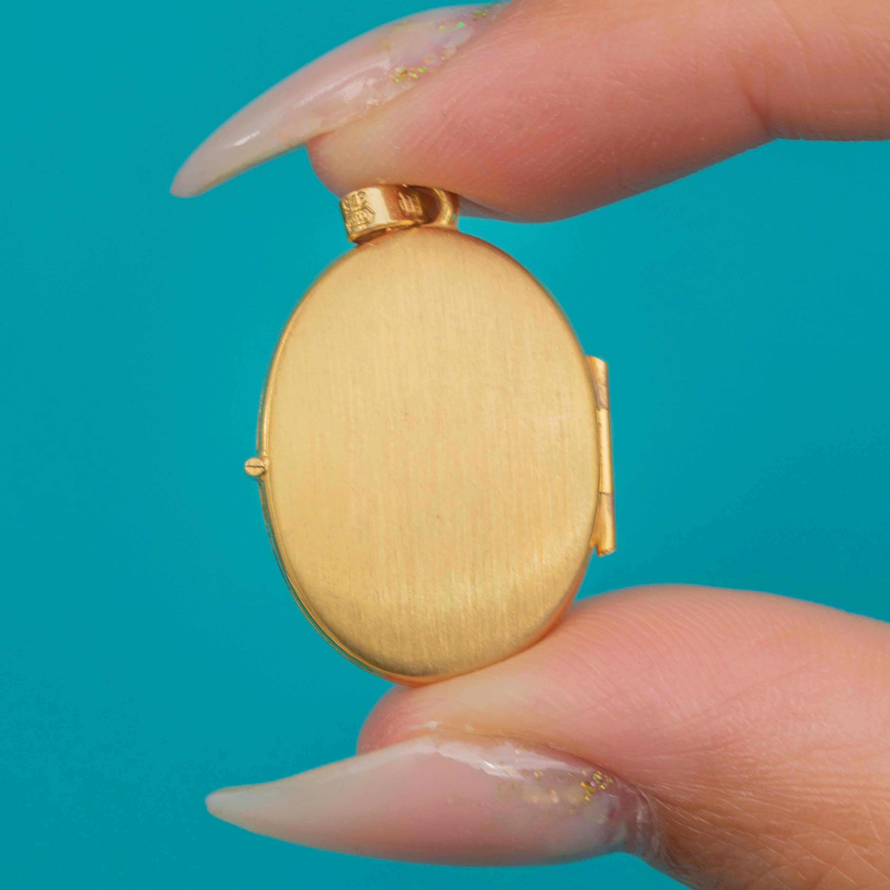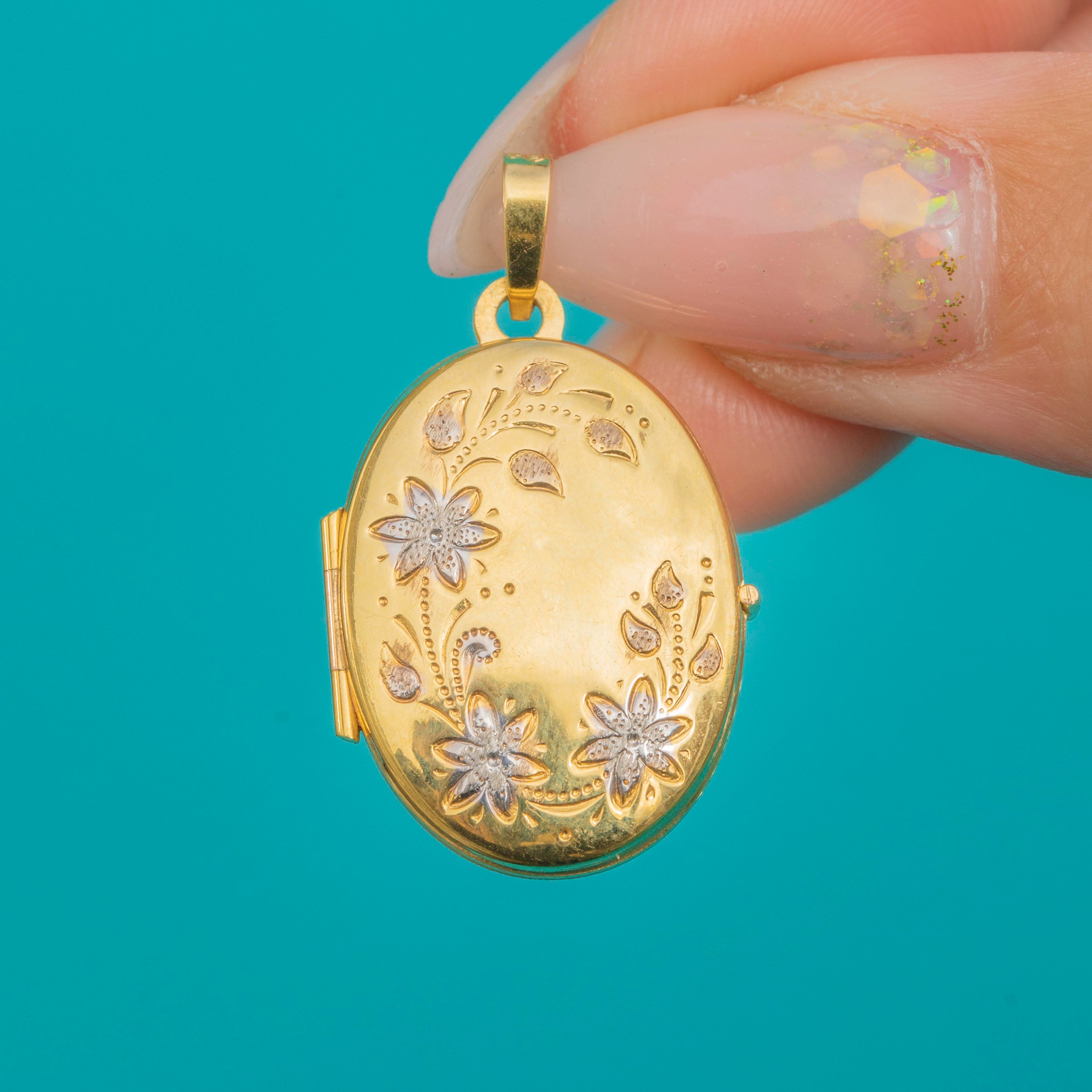 Excellent: The locket closes securely with a satisfying click. The floral engraving is crisp with good detail, and the Gold has a bright finish with minimal surface wear. No dents or dings.
