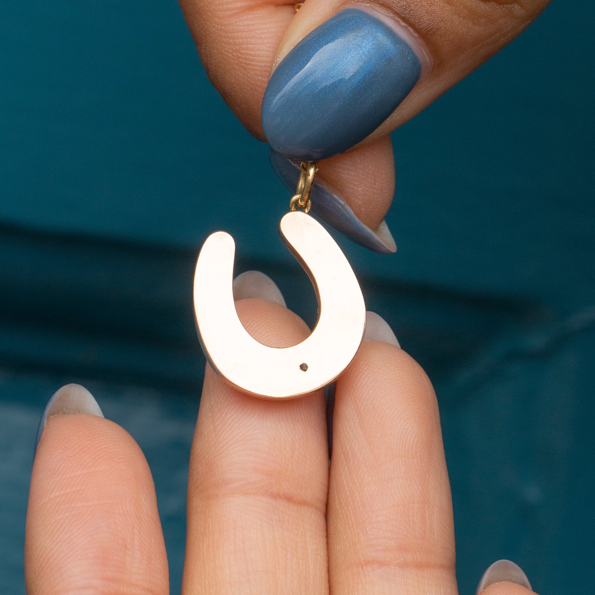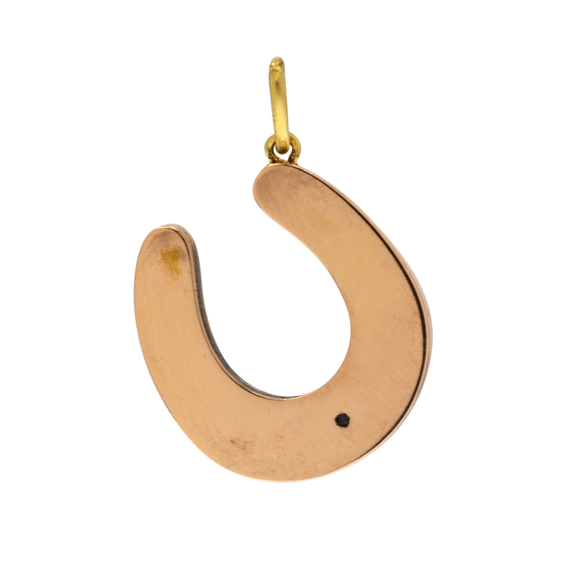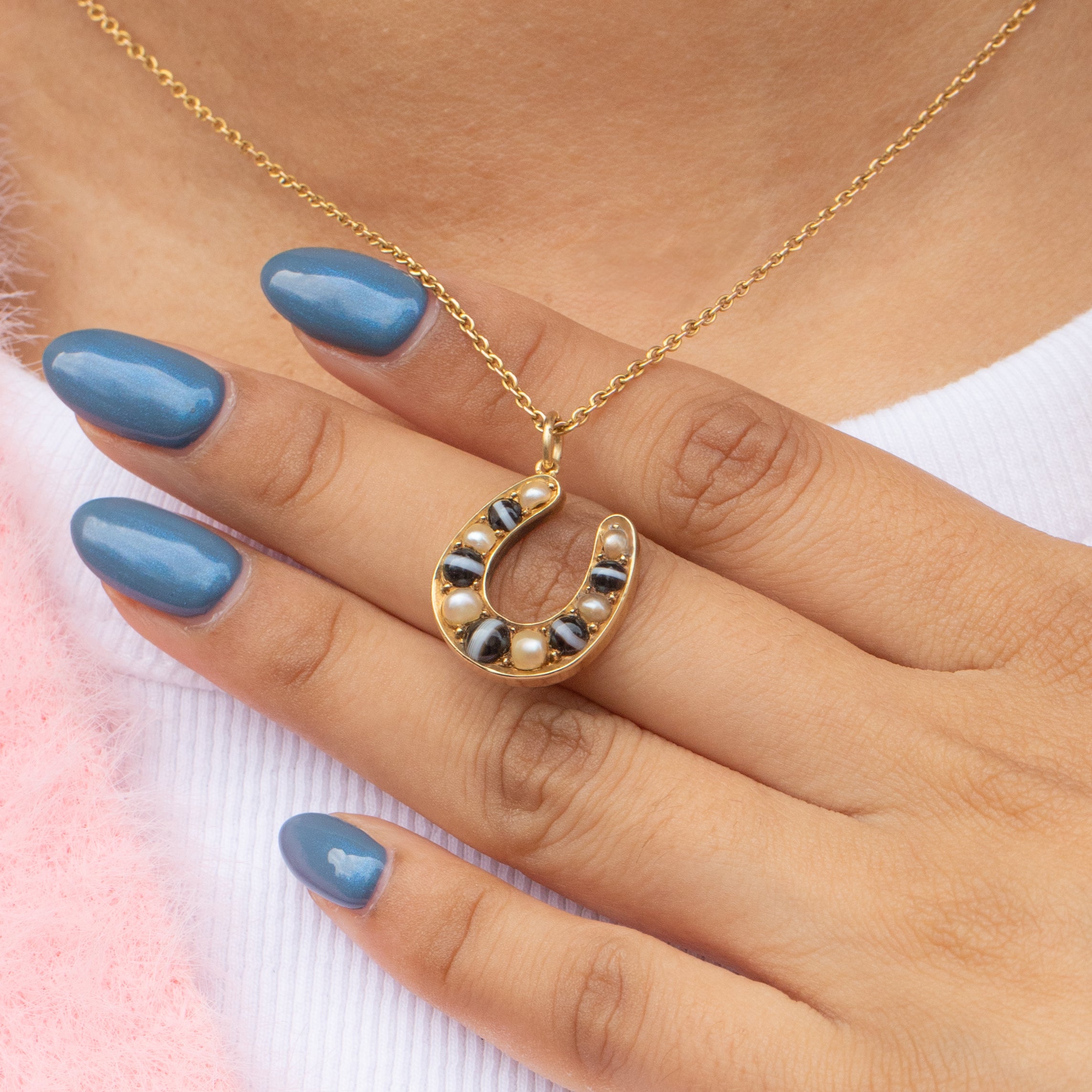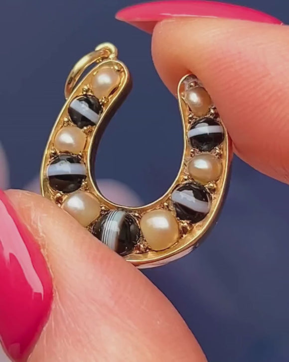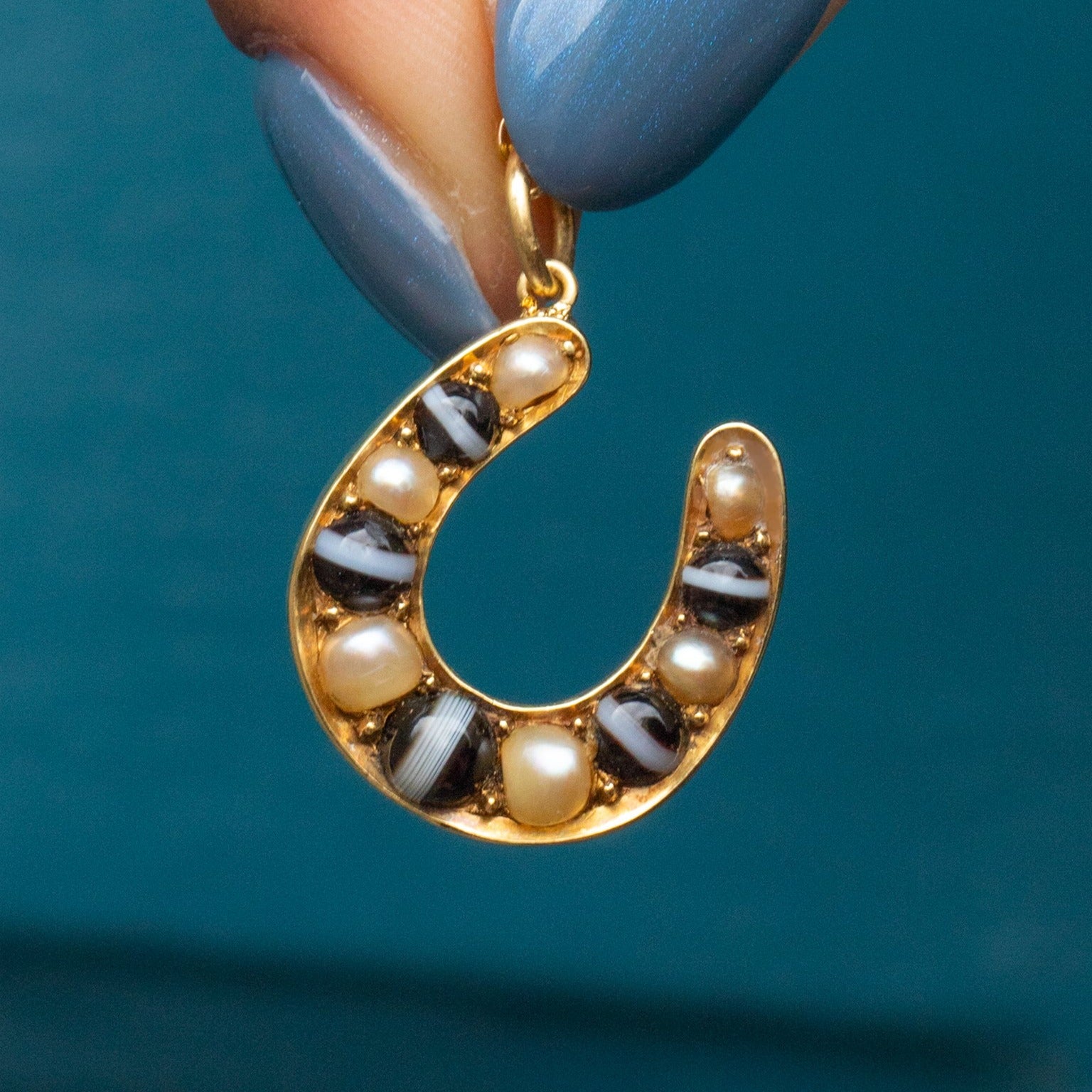 ヴィクトリアン 15ct ゴールド バンドアゲート&パール ホースシュー ペンダント