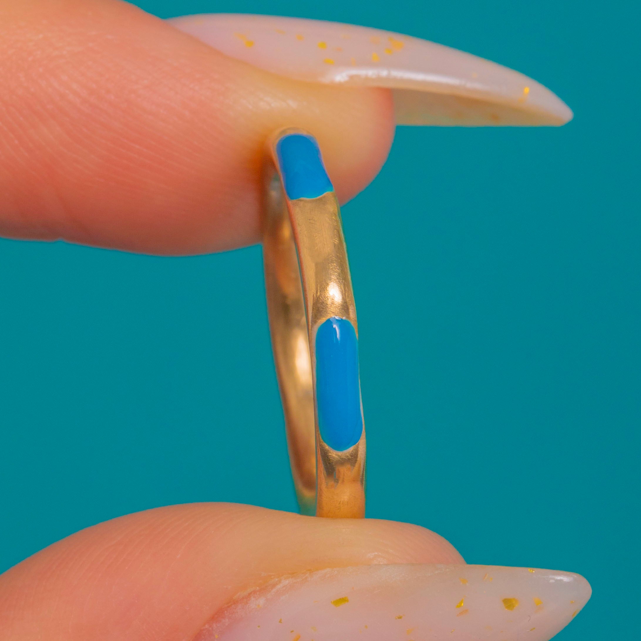 A delicate Victorian treasure in luminous 15ct Gold, this slim band is accented with glossy Blue Enamel in repeating oval panels along the entire shank. Its smooth low-dome profile and high polish give a refined, silk-like sheen, while the vivid Enamel brings a joyful pop of colour.