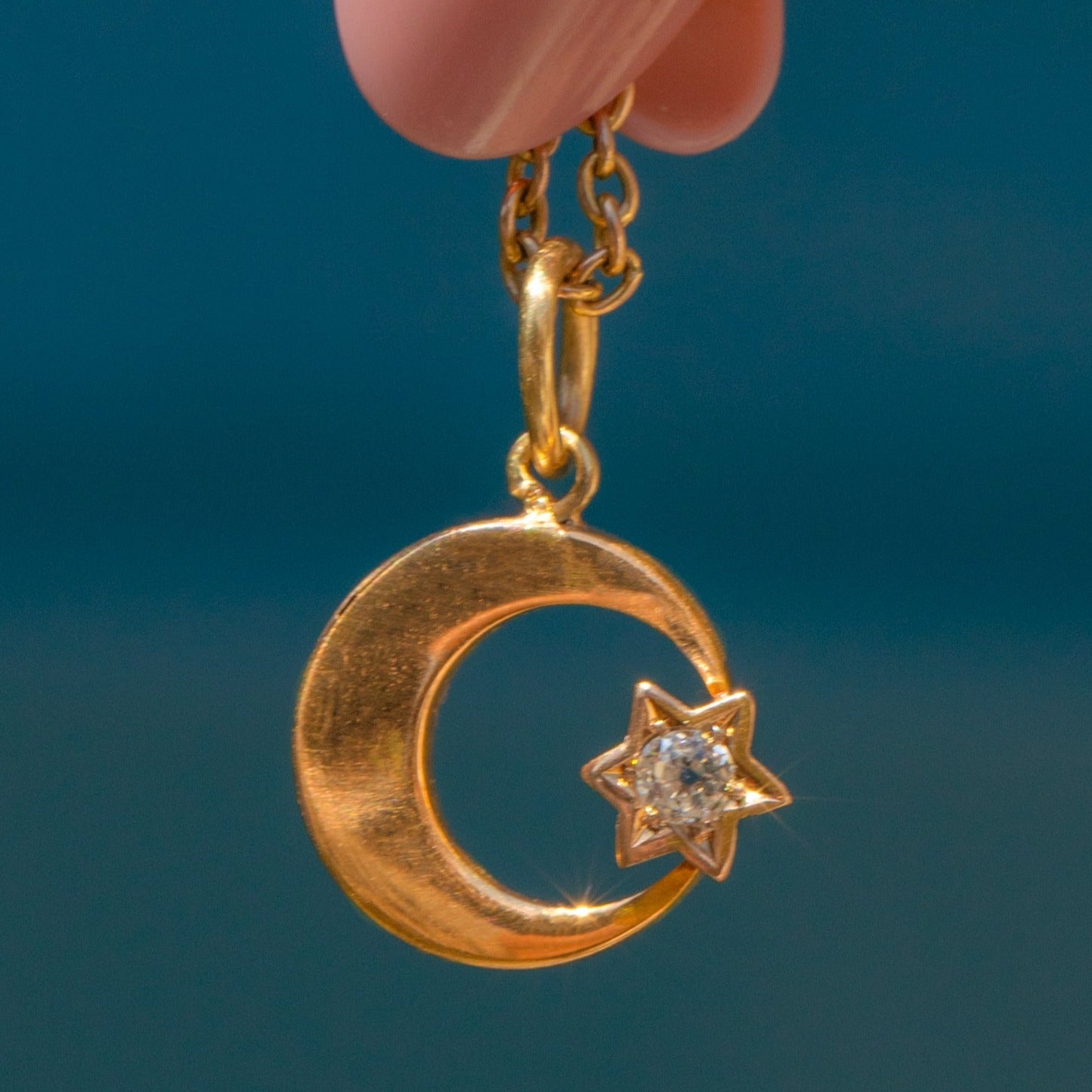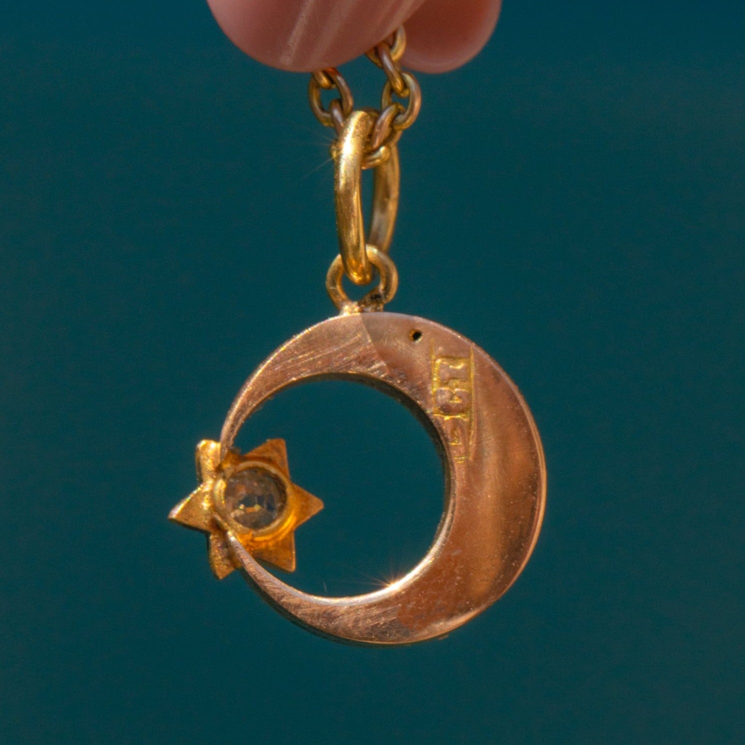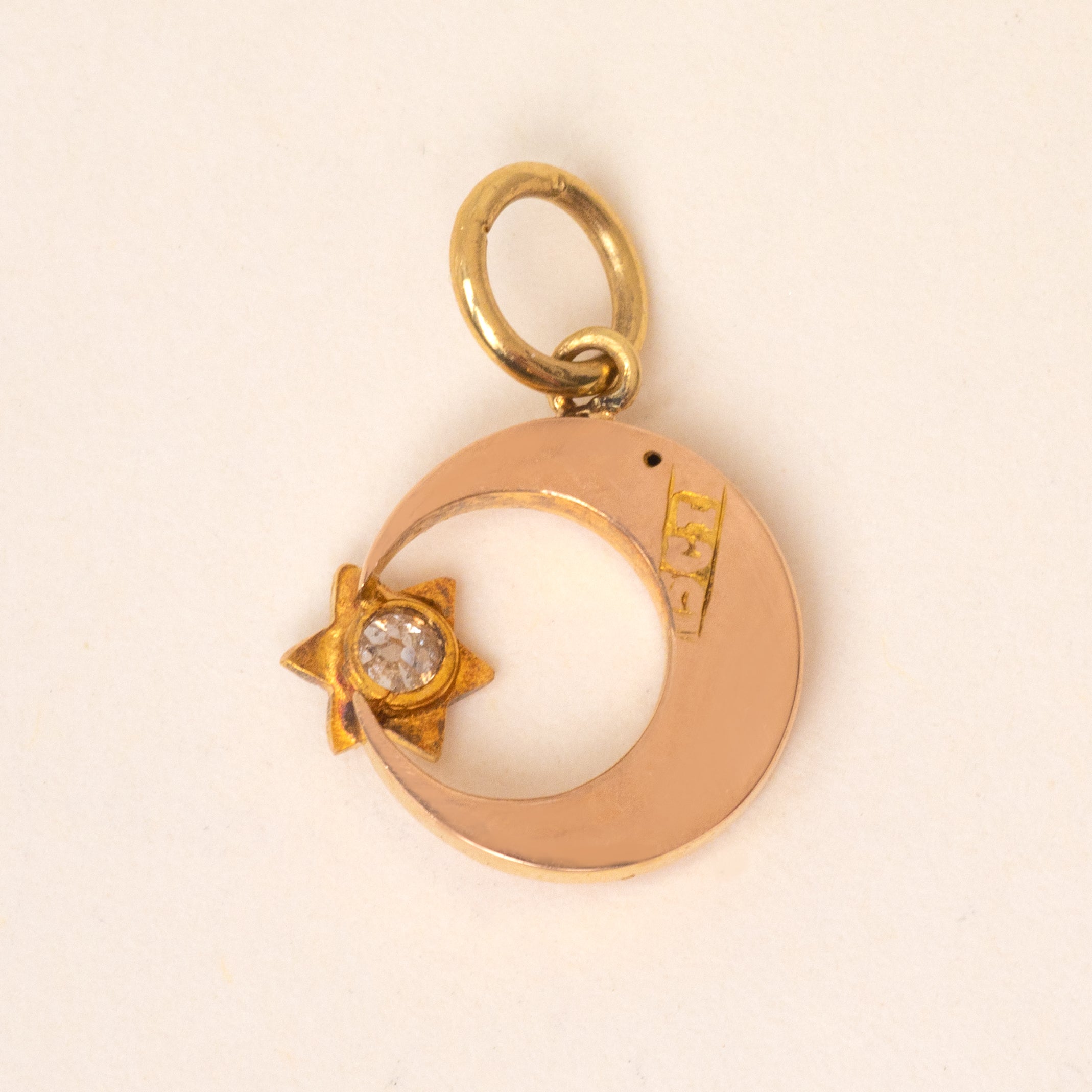 Victorian 15ct Gold Crescent Moon & Diamond Star Charm