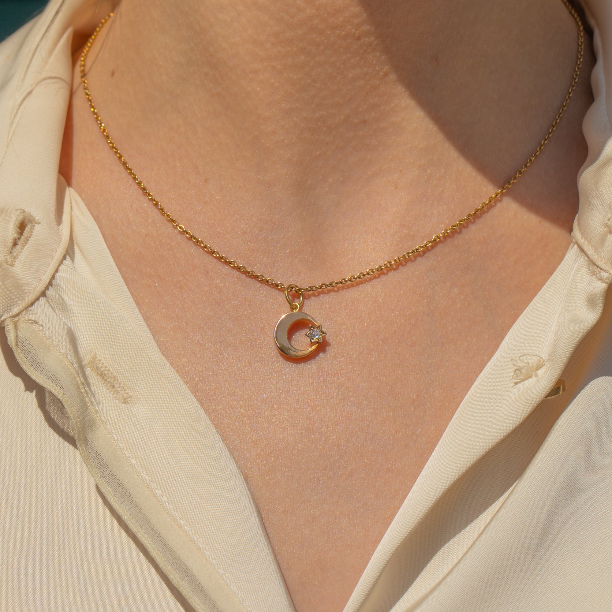 The stars will align the moment you add this sweet Victorian 15ct Gold crescent moon & Diamond star charm to your collection!