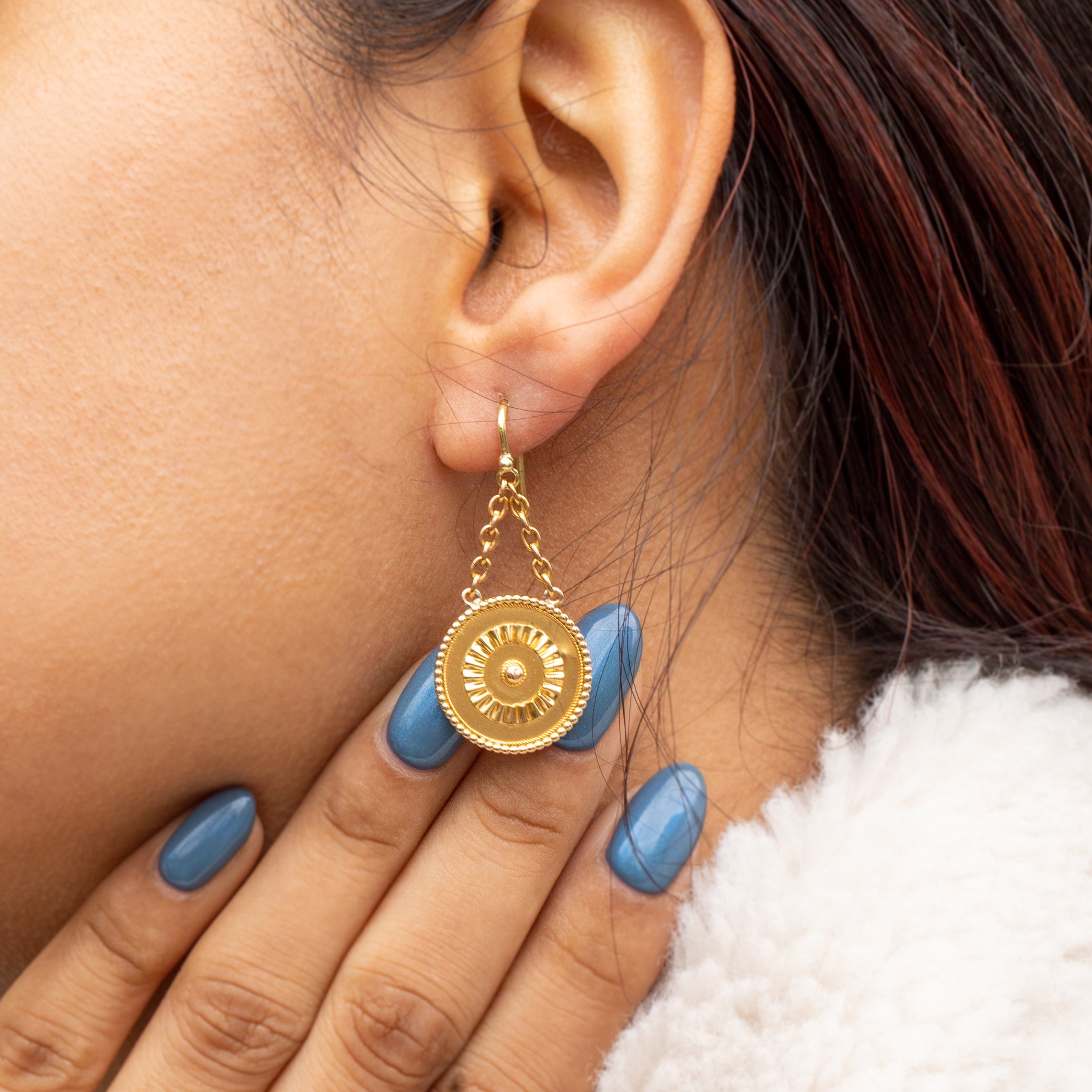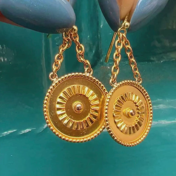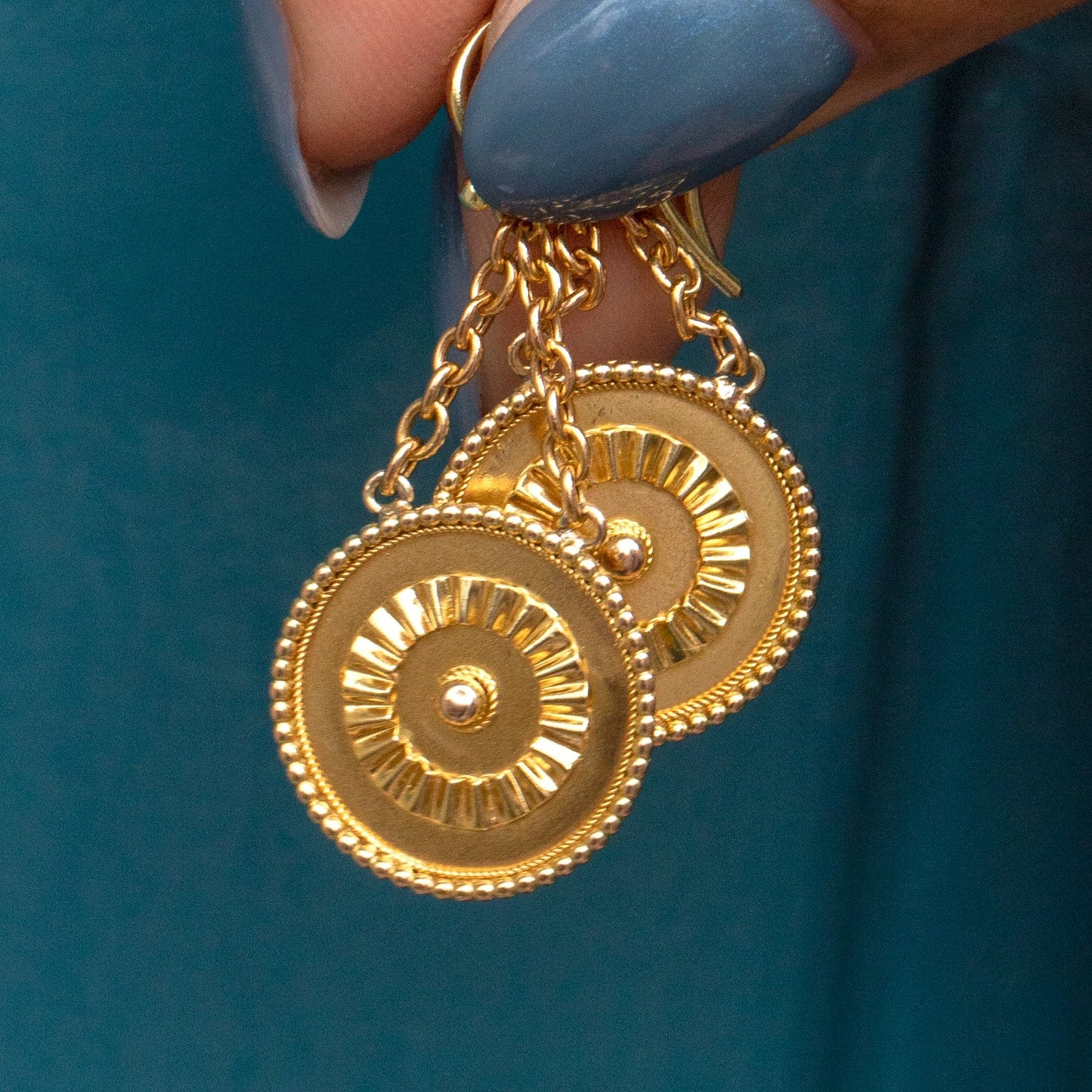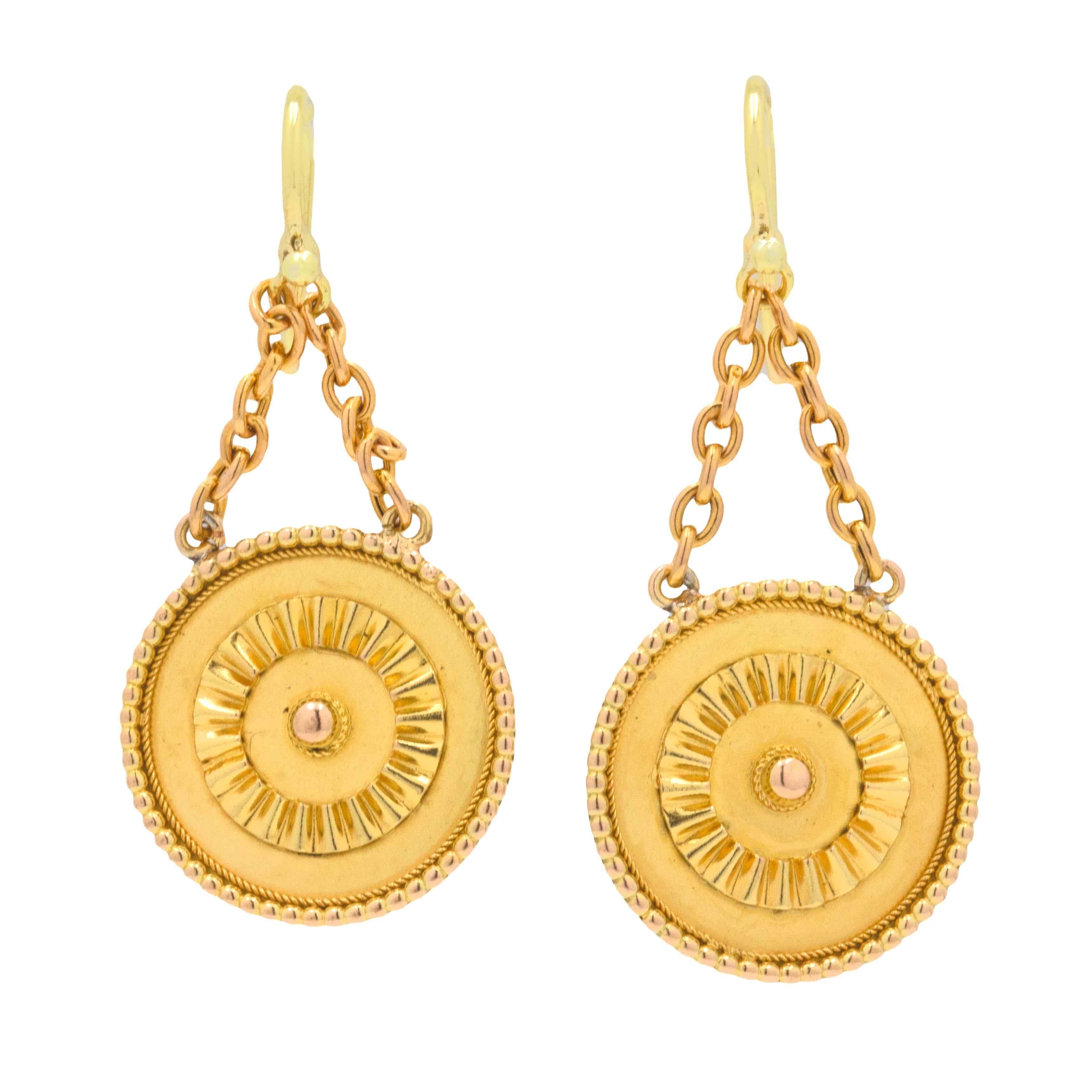 ヴィクトリアン 15ct ゴールド ディスク ドロップ イヤリング