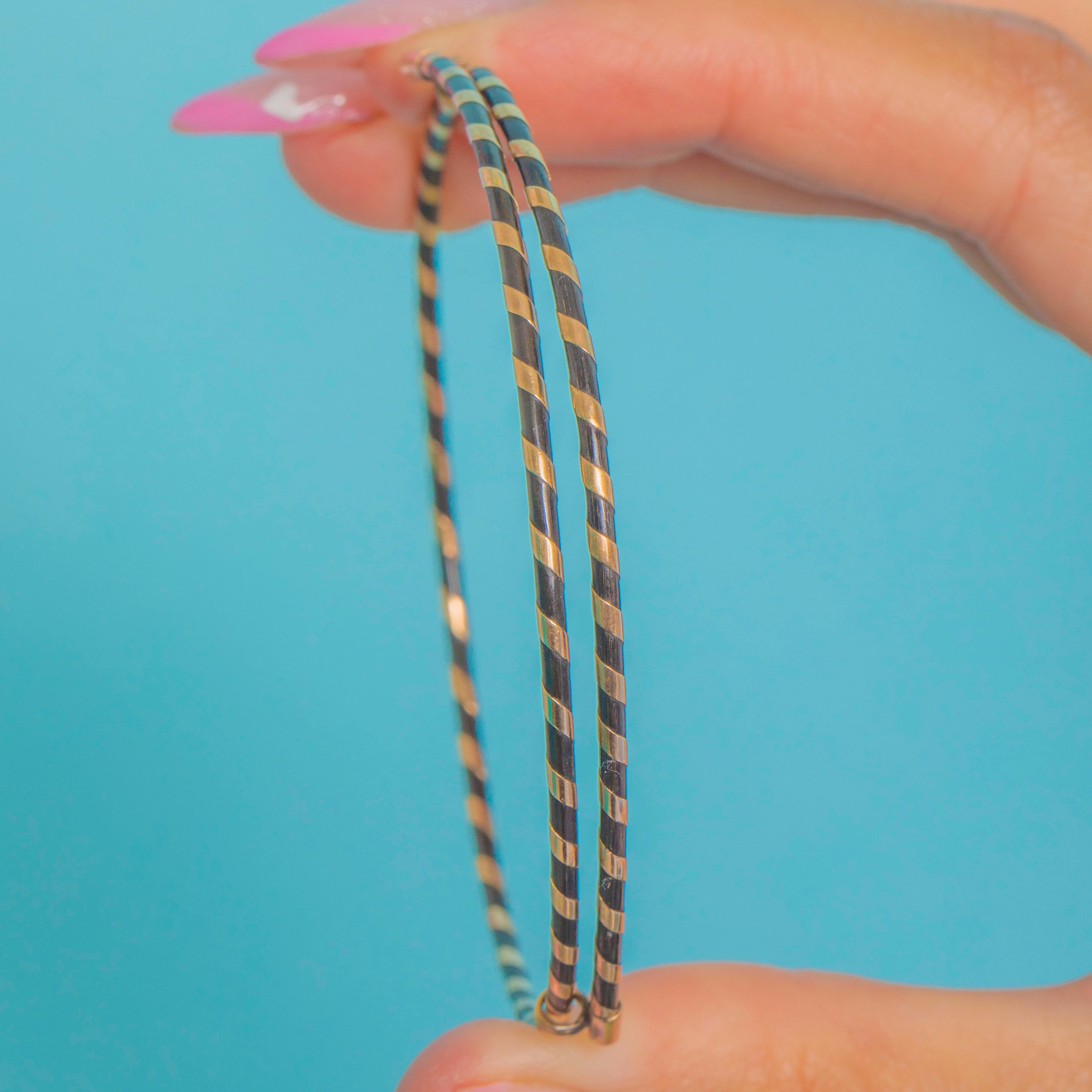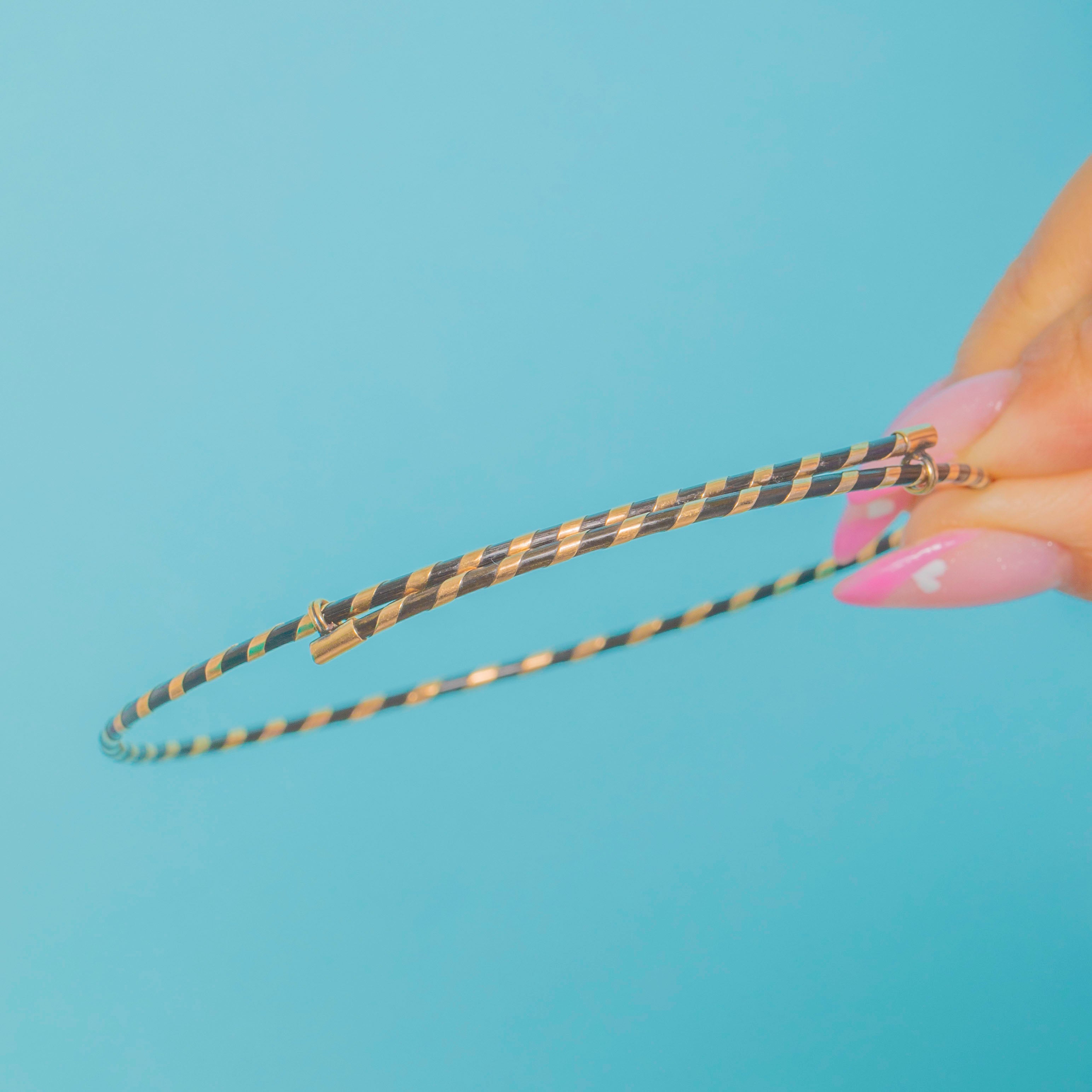 A rare and symbolic Victorian bangle crafted from natural Elephant hair and 15ct Gold. These bangles were popular tokens of good luck, strength, and protection during the 19th century, often worn as amulets or travel talismans.