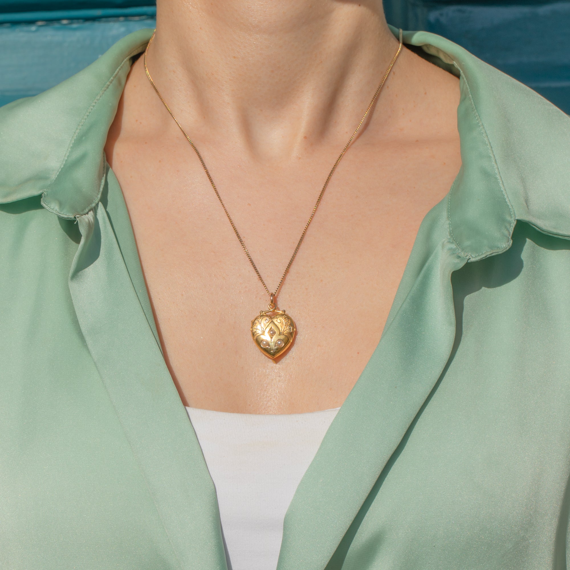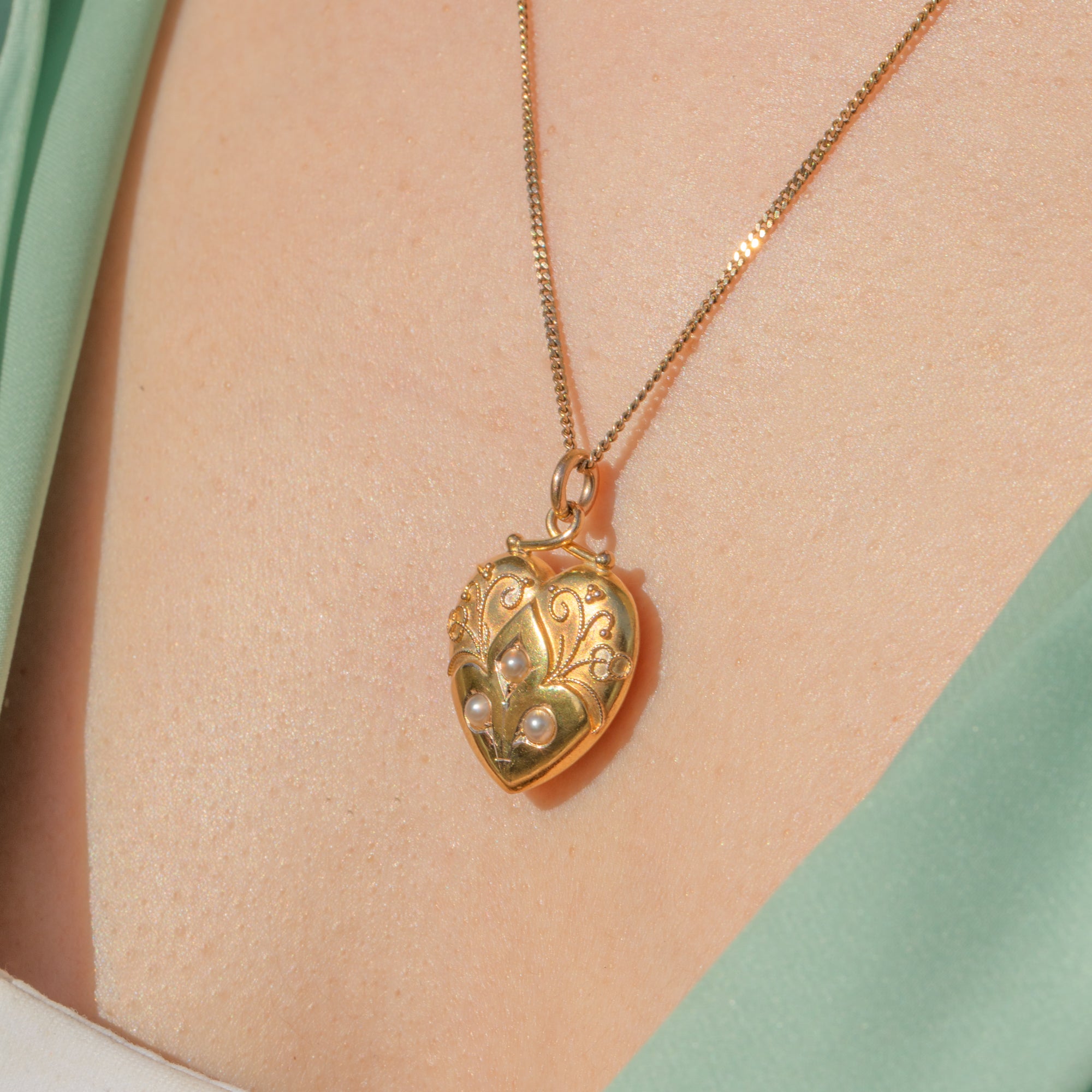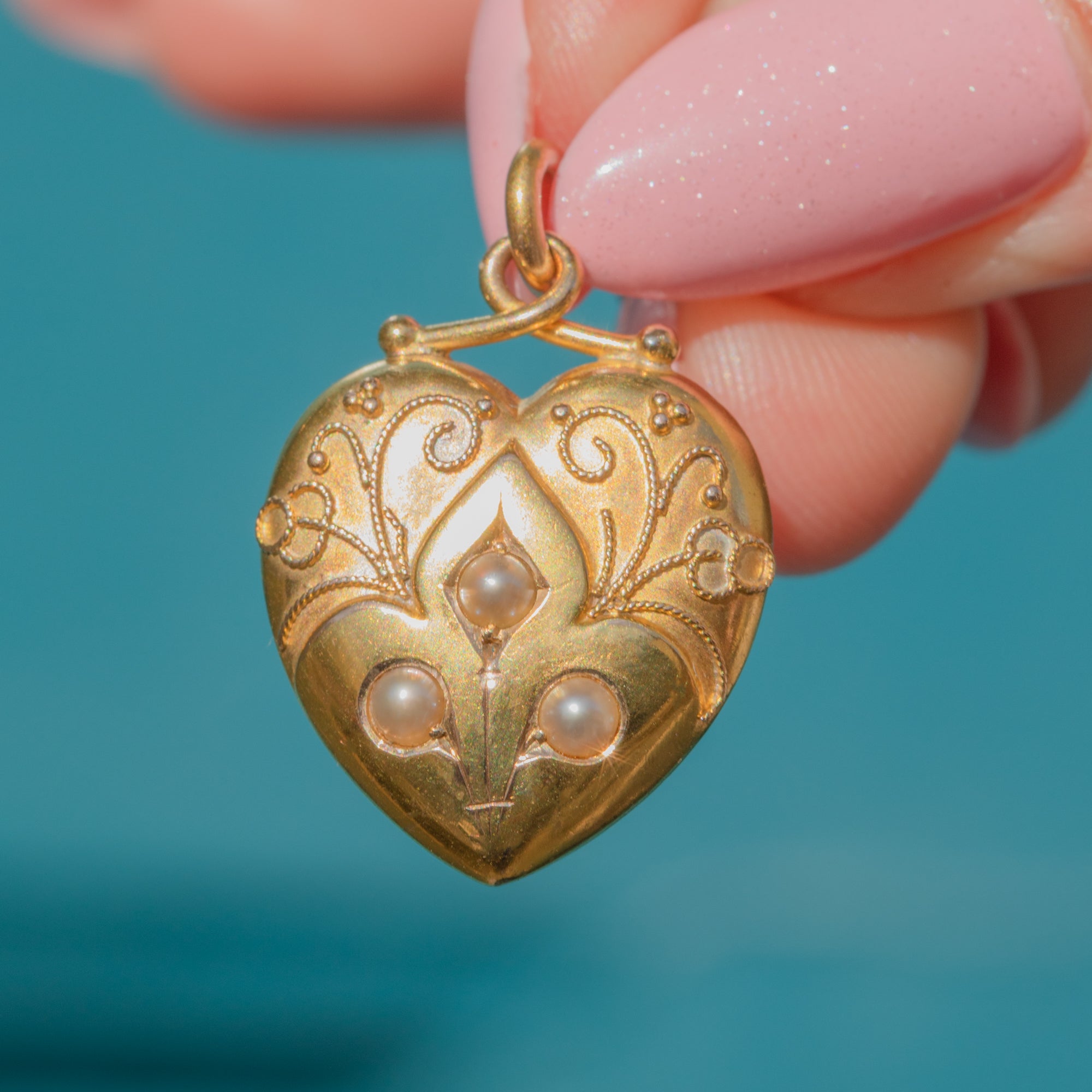 Victorian 15ct Gold Fancy Pearl Heart Pendant c.1876, Locket Back