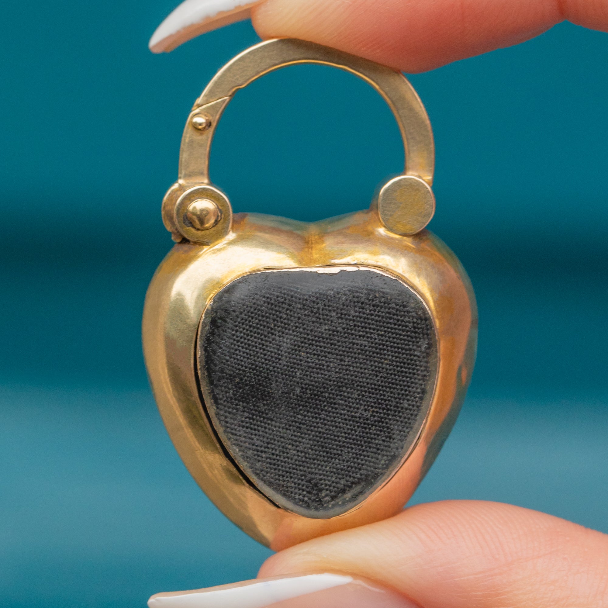 The reverse features a locket compartment, originally designed to hold a keepsake such as a photograph, a lock of hair, or a sentimental token. The spring mechanism of the clasp remains in excellent working order, making this padlock perfect for wear on your favourite chain or bracelet.