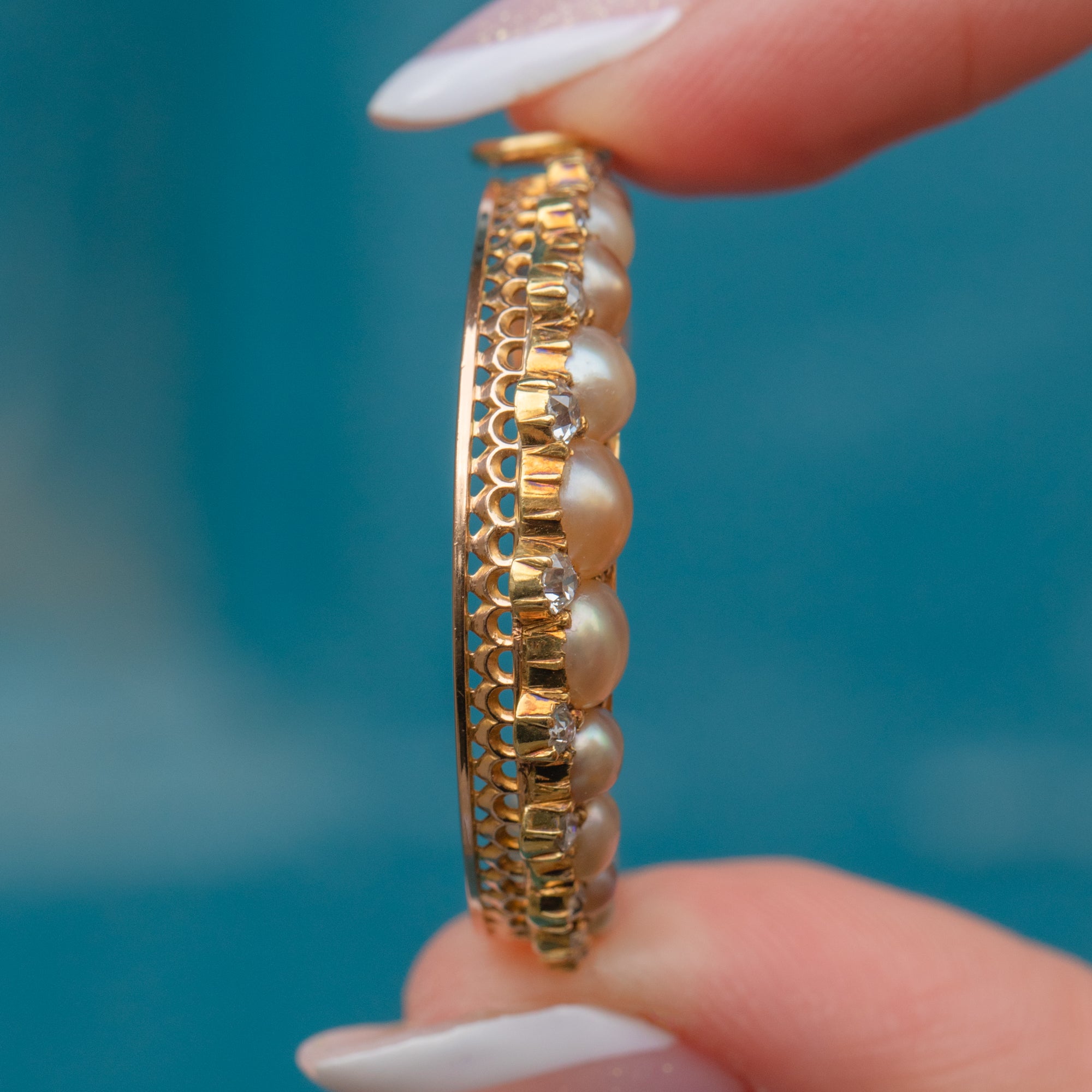 MATERIALS: Tests as 15ct Gold, Pearl, Diamond.