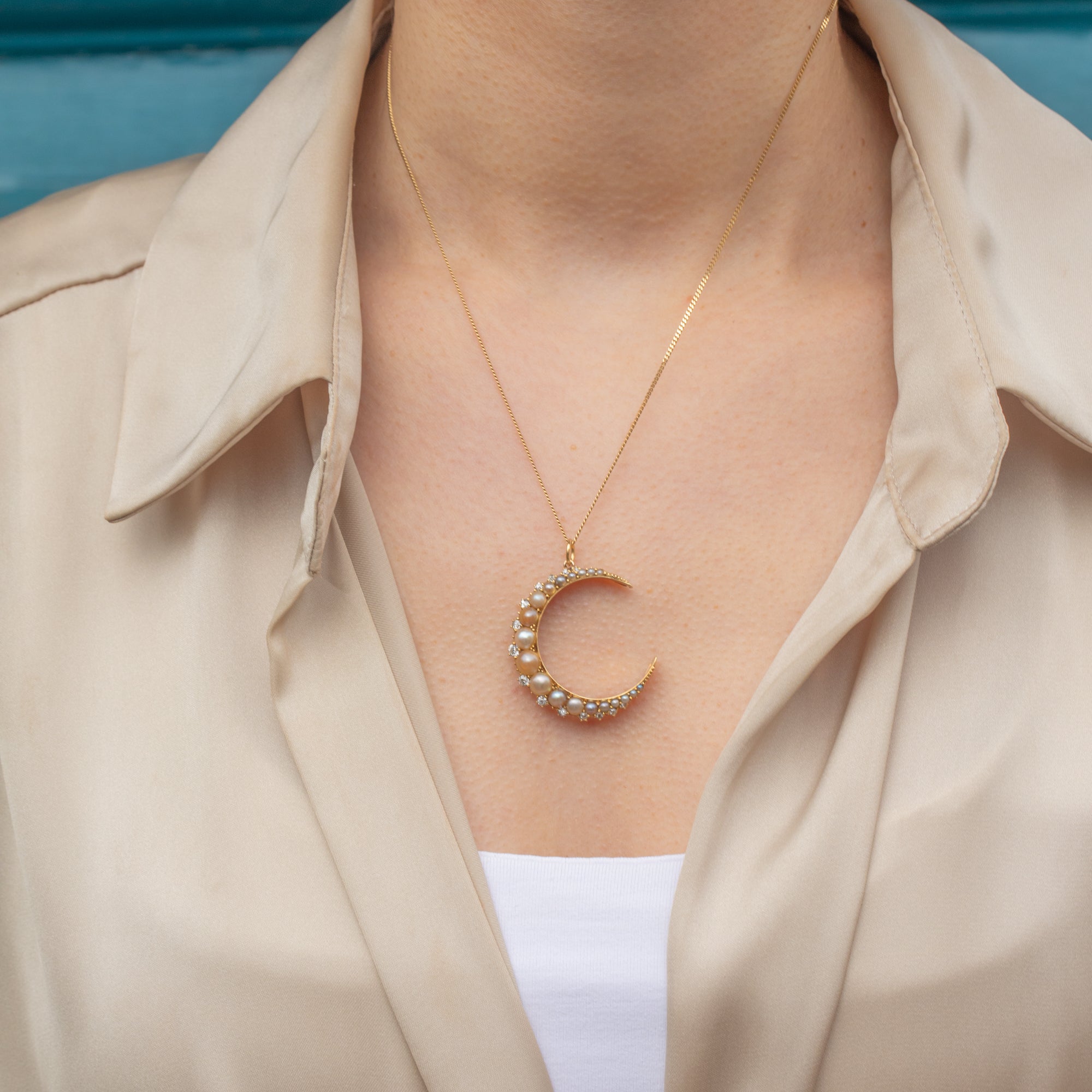 VERY GOOD-EXCELLENT: This Victorian 15ct Gold Pearl & Diamond crescent moon pendant is in wonderful condition. The Gold has a richly saturated hue and the form of the pendant has kept its shape well, with only minor surface wear on the back. The gemstones are all present and securely set, free from chips or scuffs. The Pearls do show some variation in hue, but we feel this just adds to their antique charm! If you have a penchant for outstanding pieces of authentic Victorian jewellery, this celestial treasure is destined to become your newest obsession!