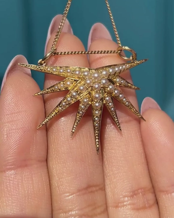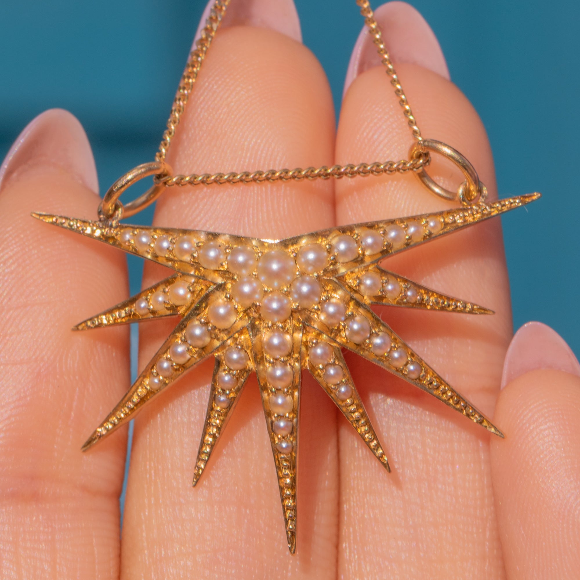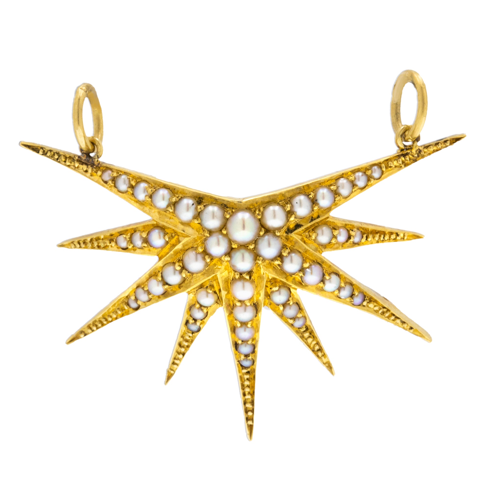 ヴィクトリアン 15ct ゴールド パール スターバースト ペンダント