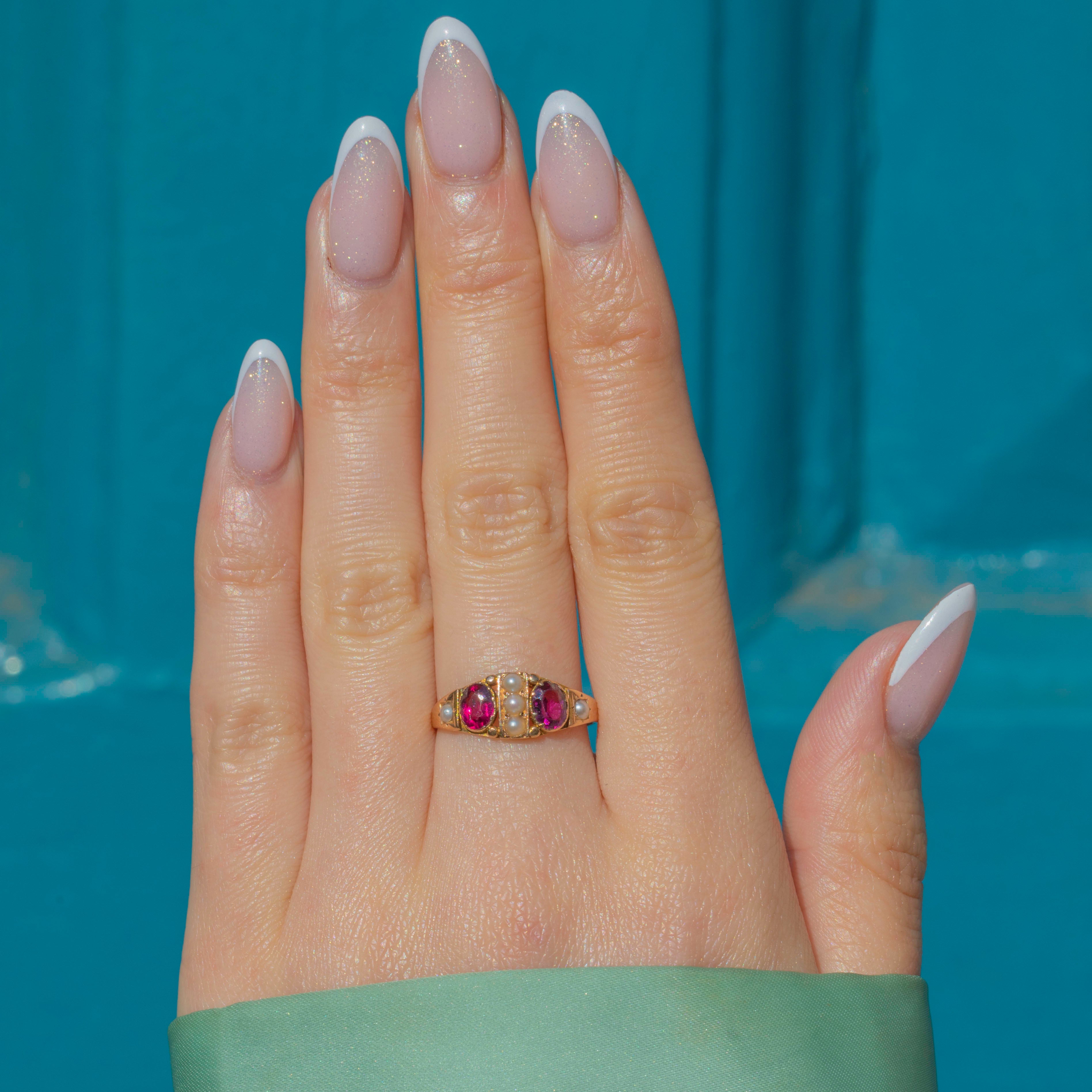 Victorian 15ct Gold Rhodolite Garnet Pearl Ring c.1879