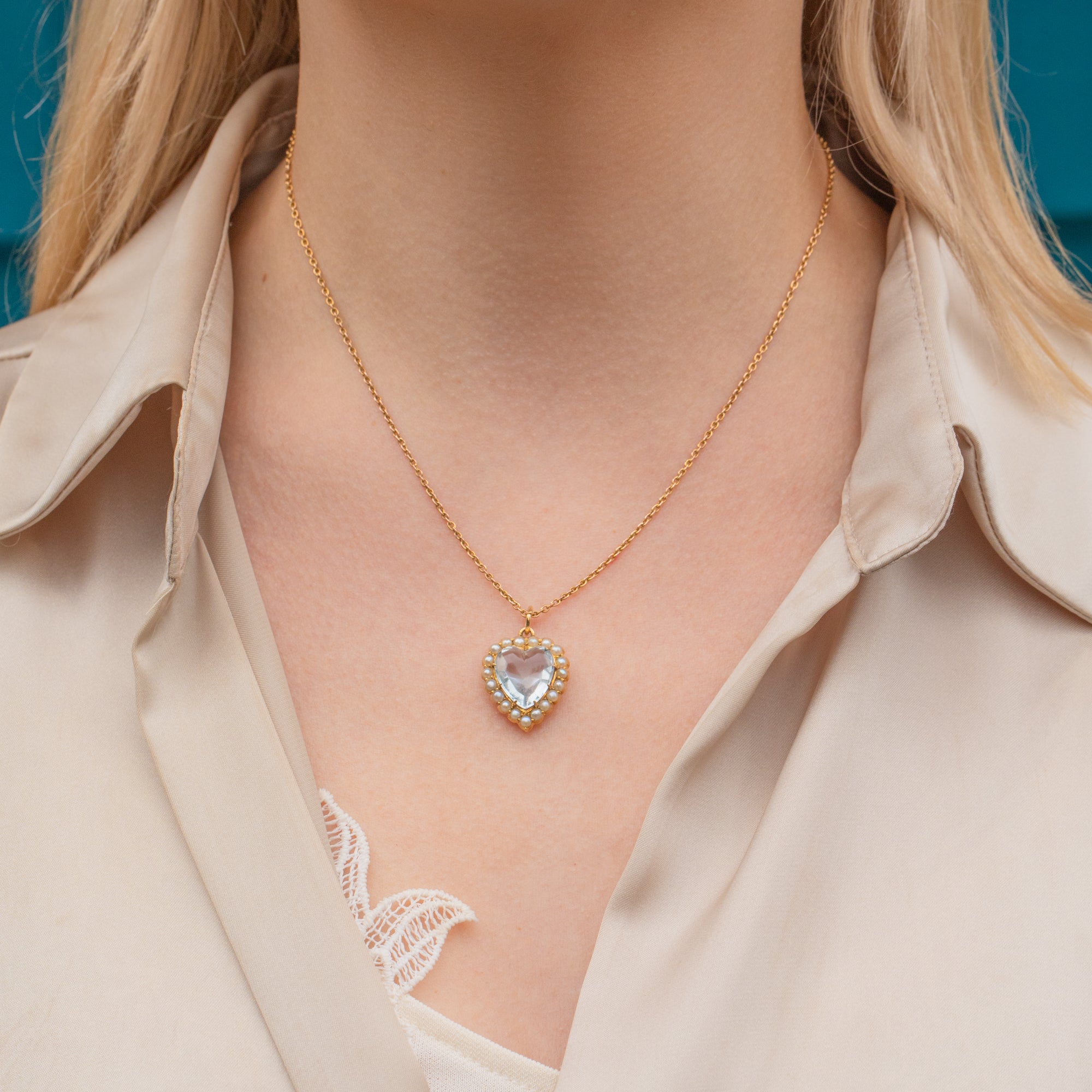 Victorian 15ct Gold Rock Crystal Pearl Heart Pendant, 3.00ct