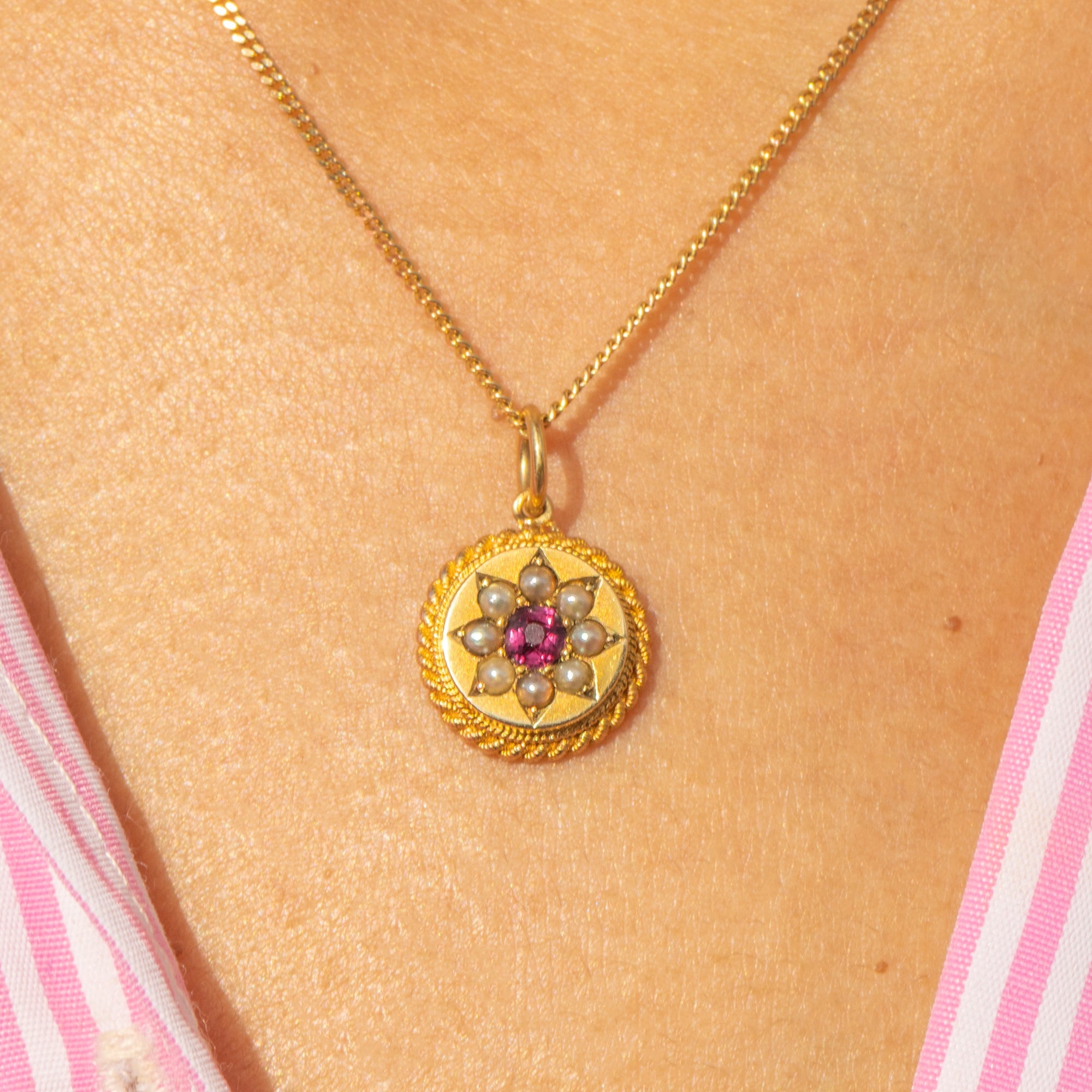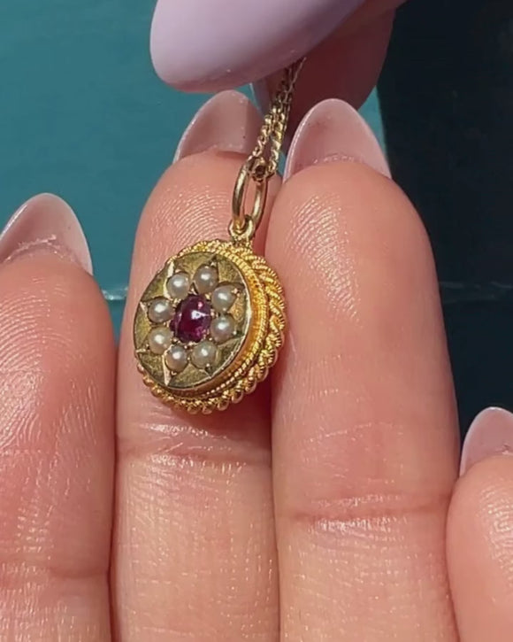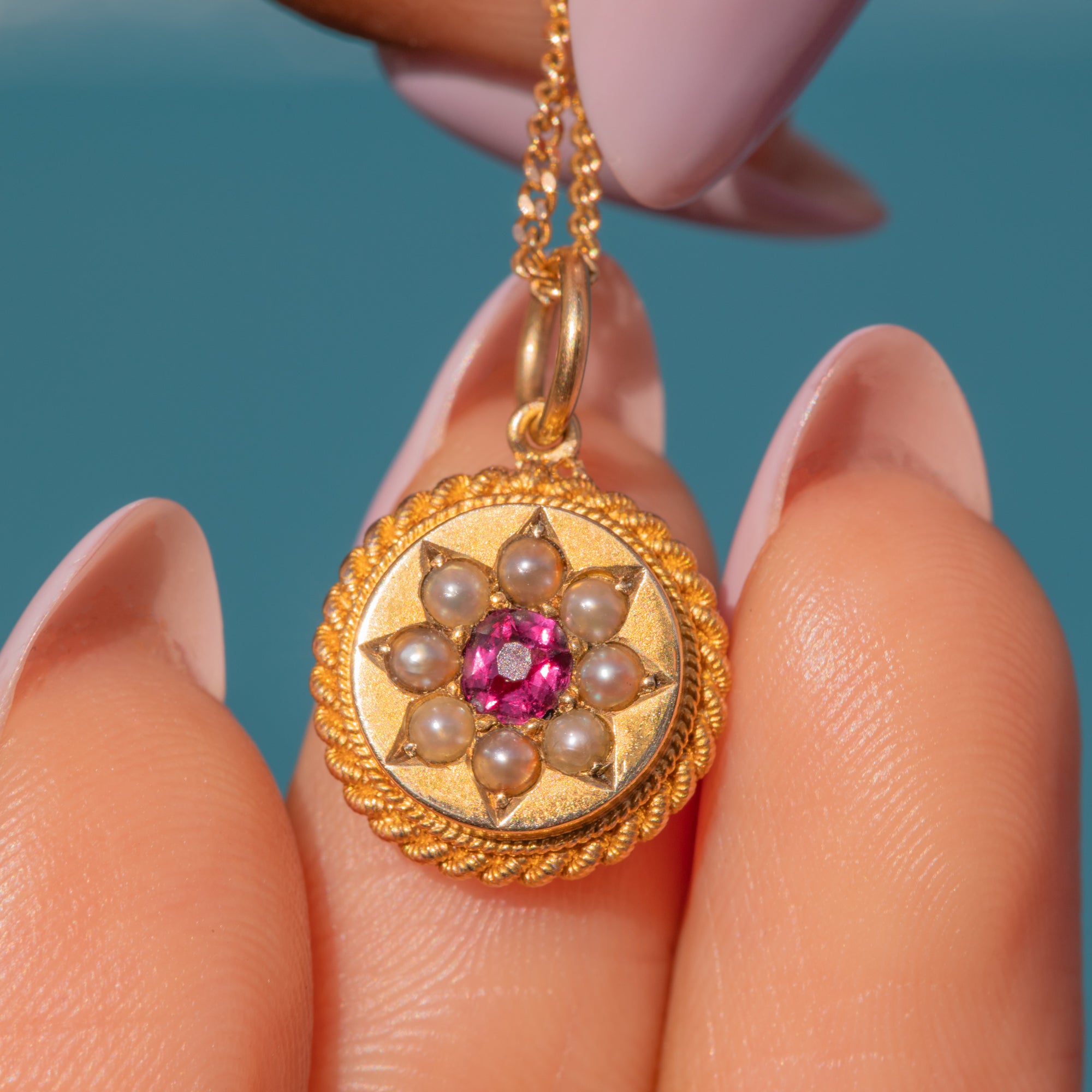 ヴィクトリアン 15ct ゴールド ルビー パール スター チャーム、0.30ct。