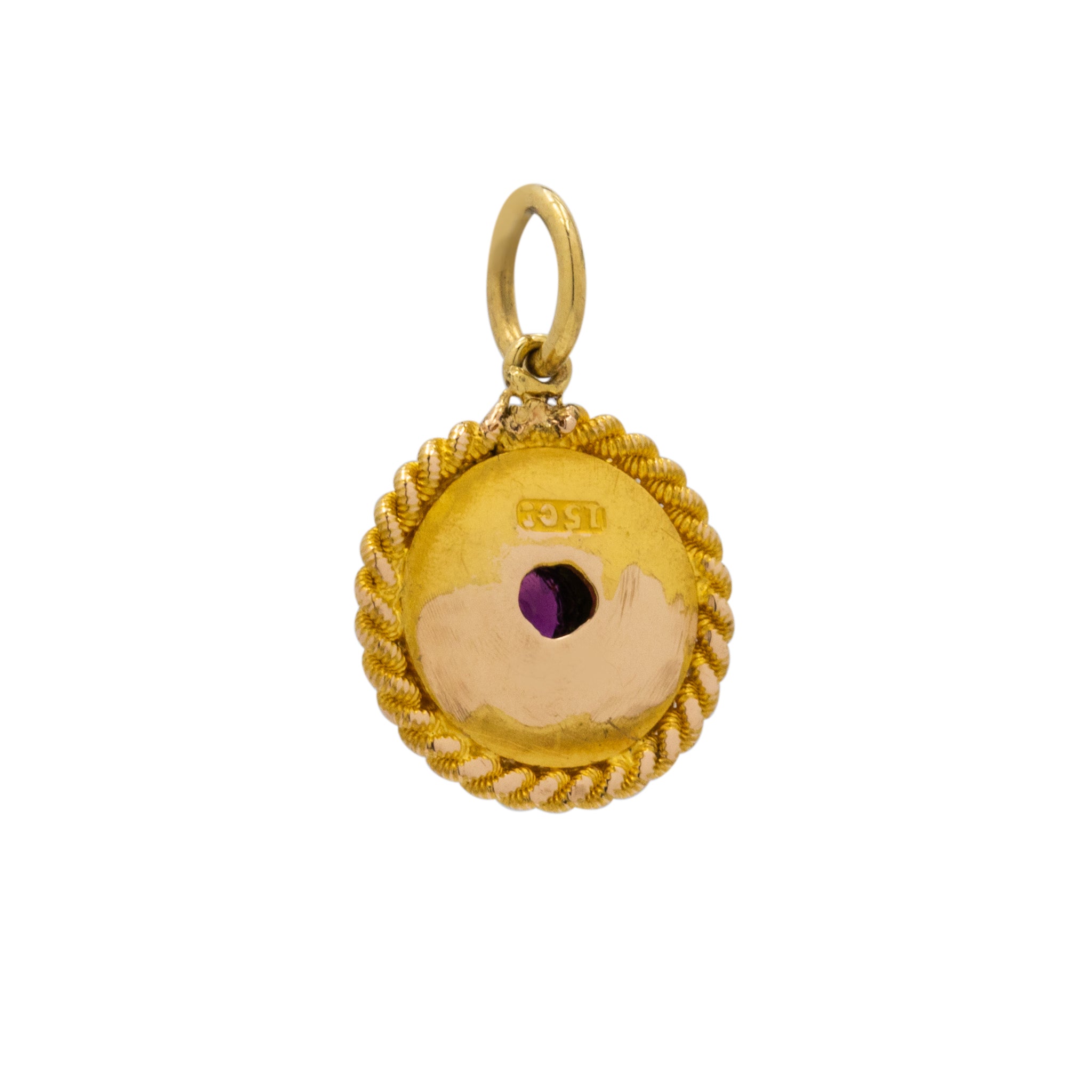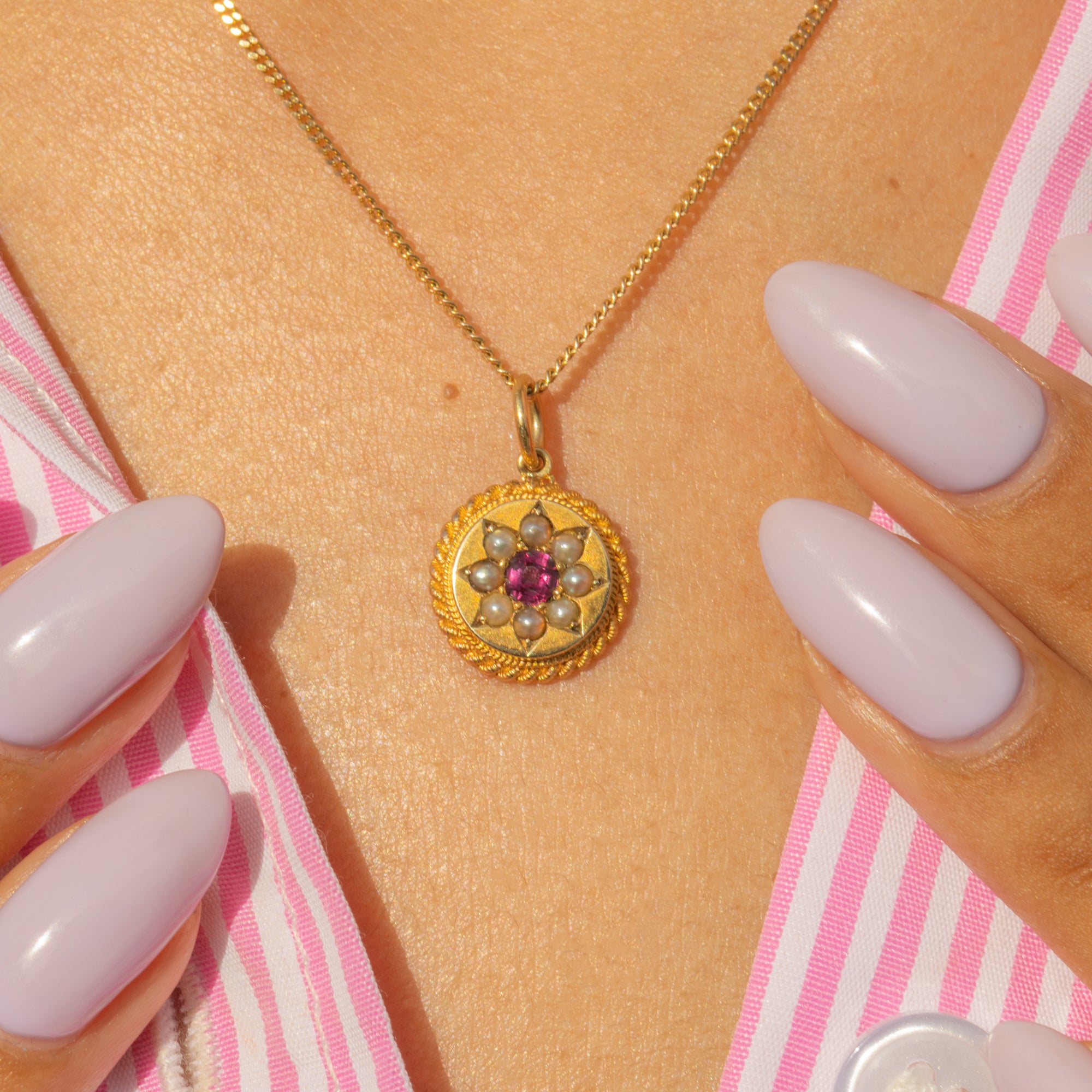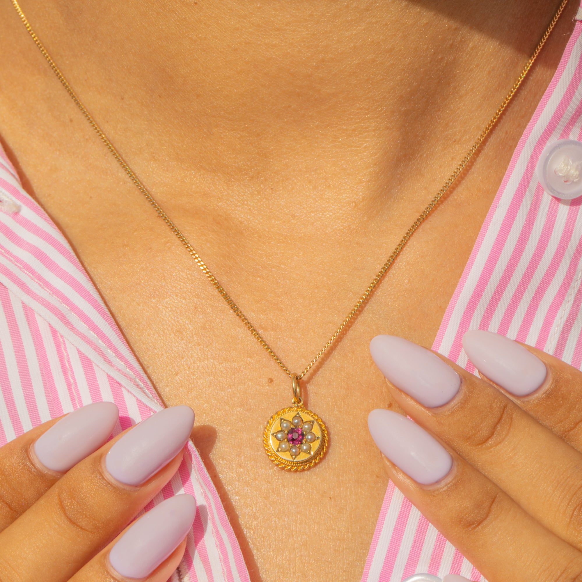 ヴィクトリアン 15ct ゴールド ルビー パール スター チャーム、0.30ct。