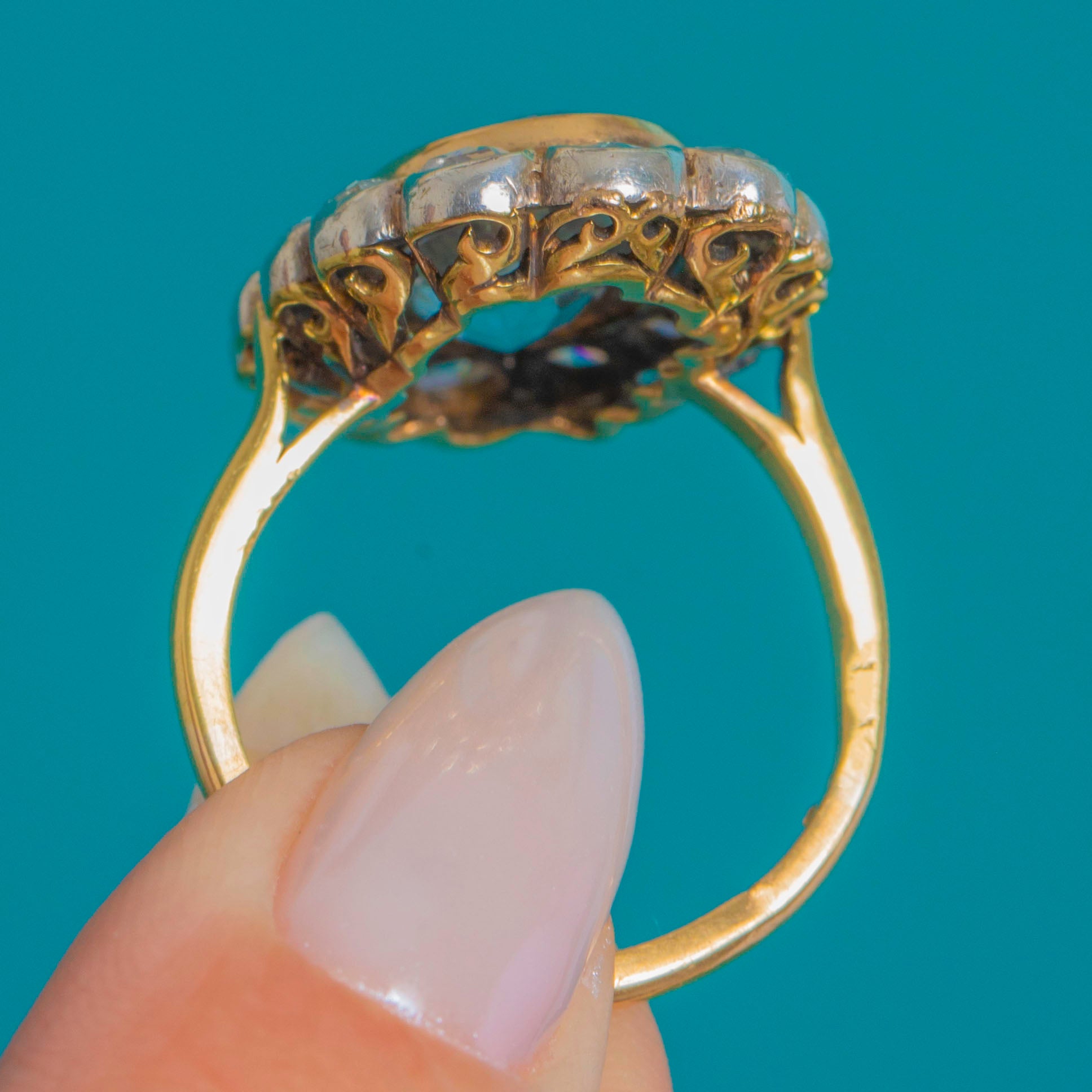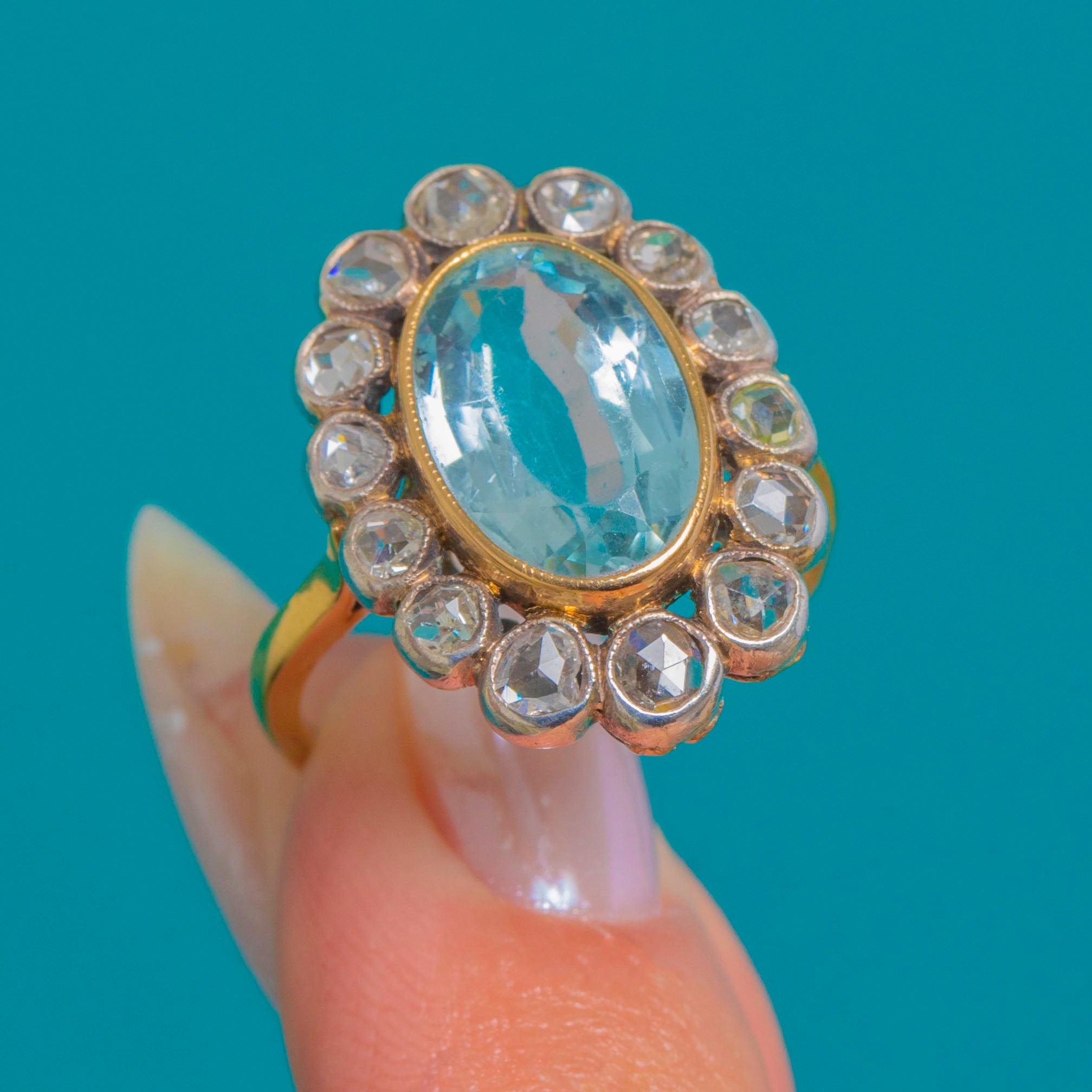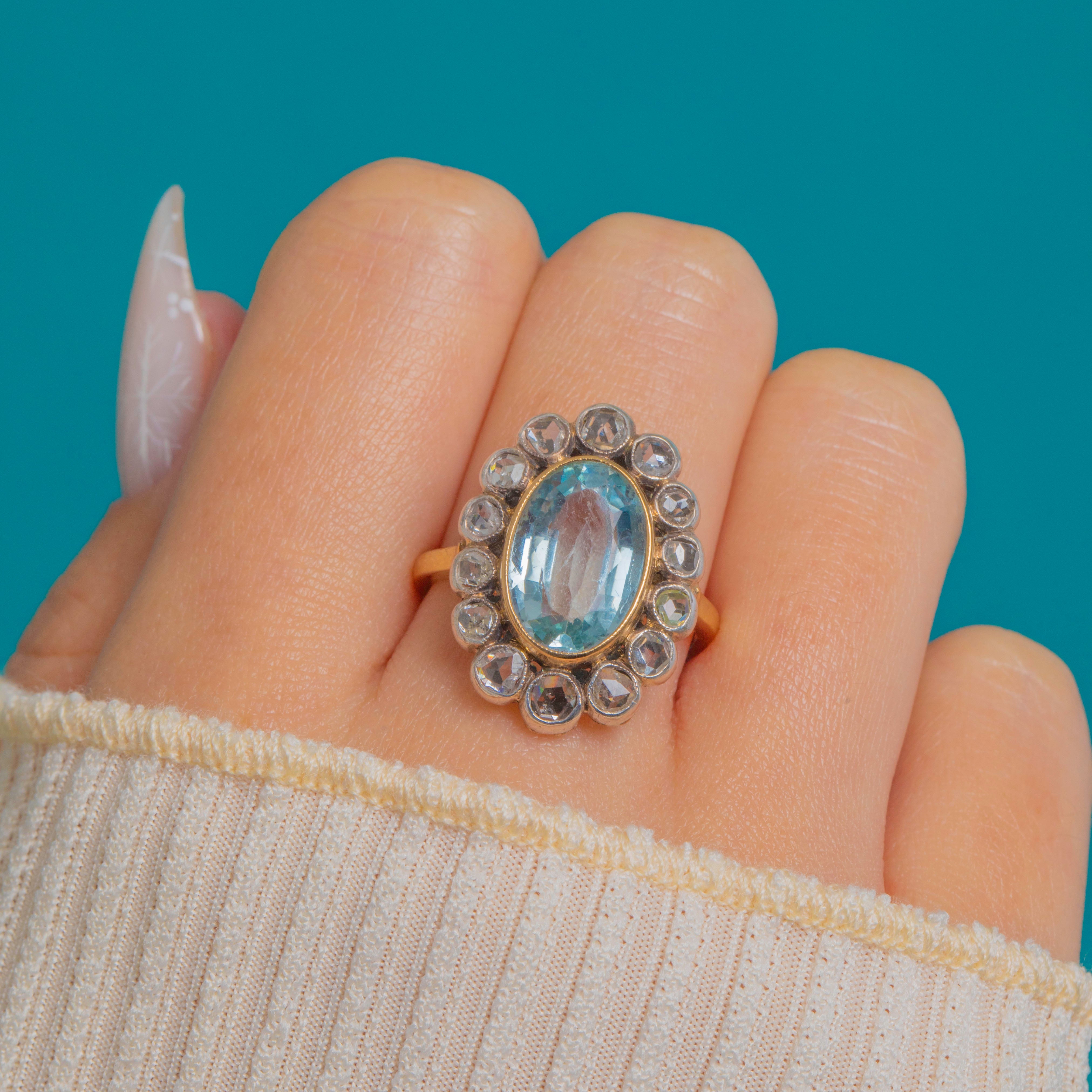 ヴィクトリアン 15ct ゴールド 2.00ct アクアマリン&ダイヤモンド クラスターリング