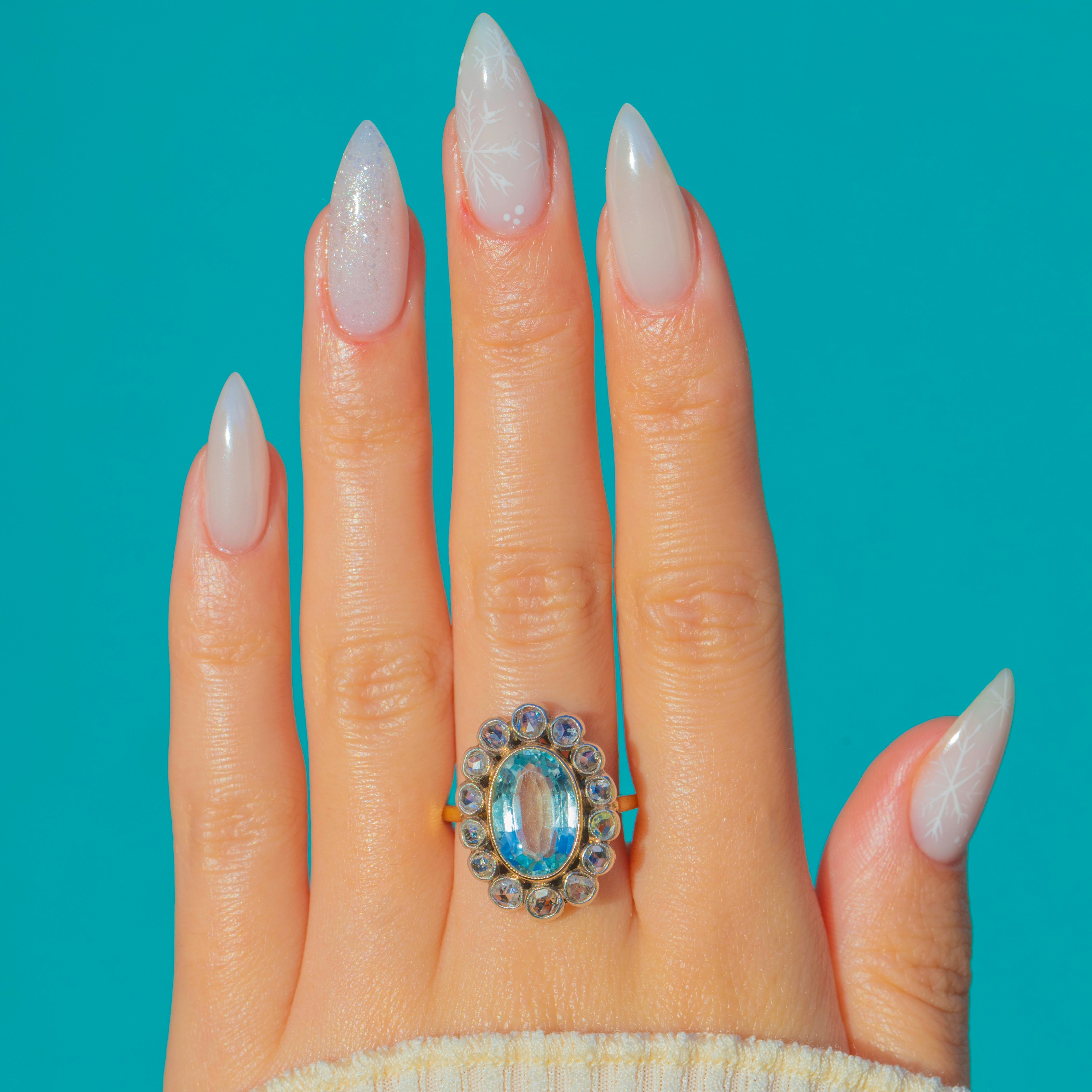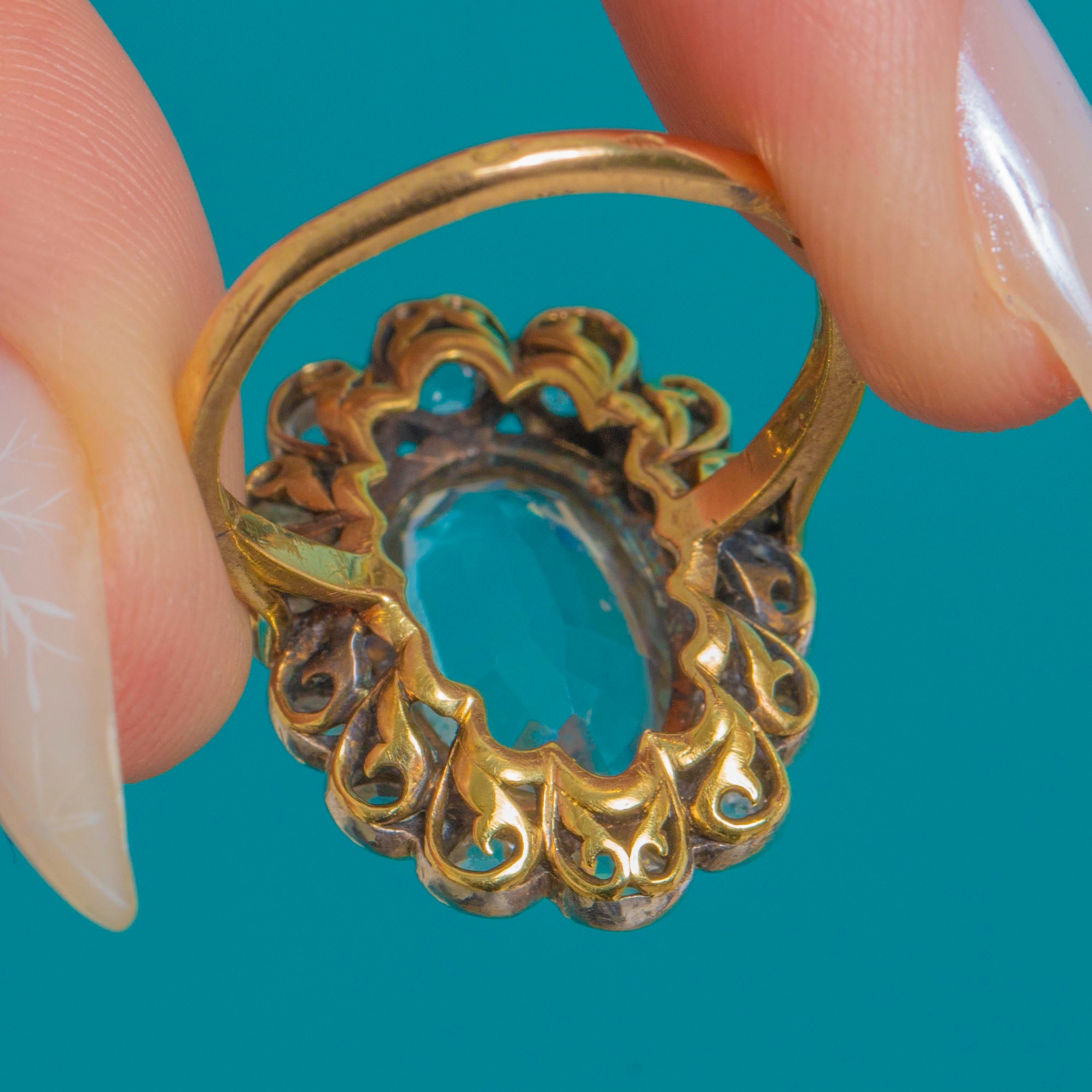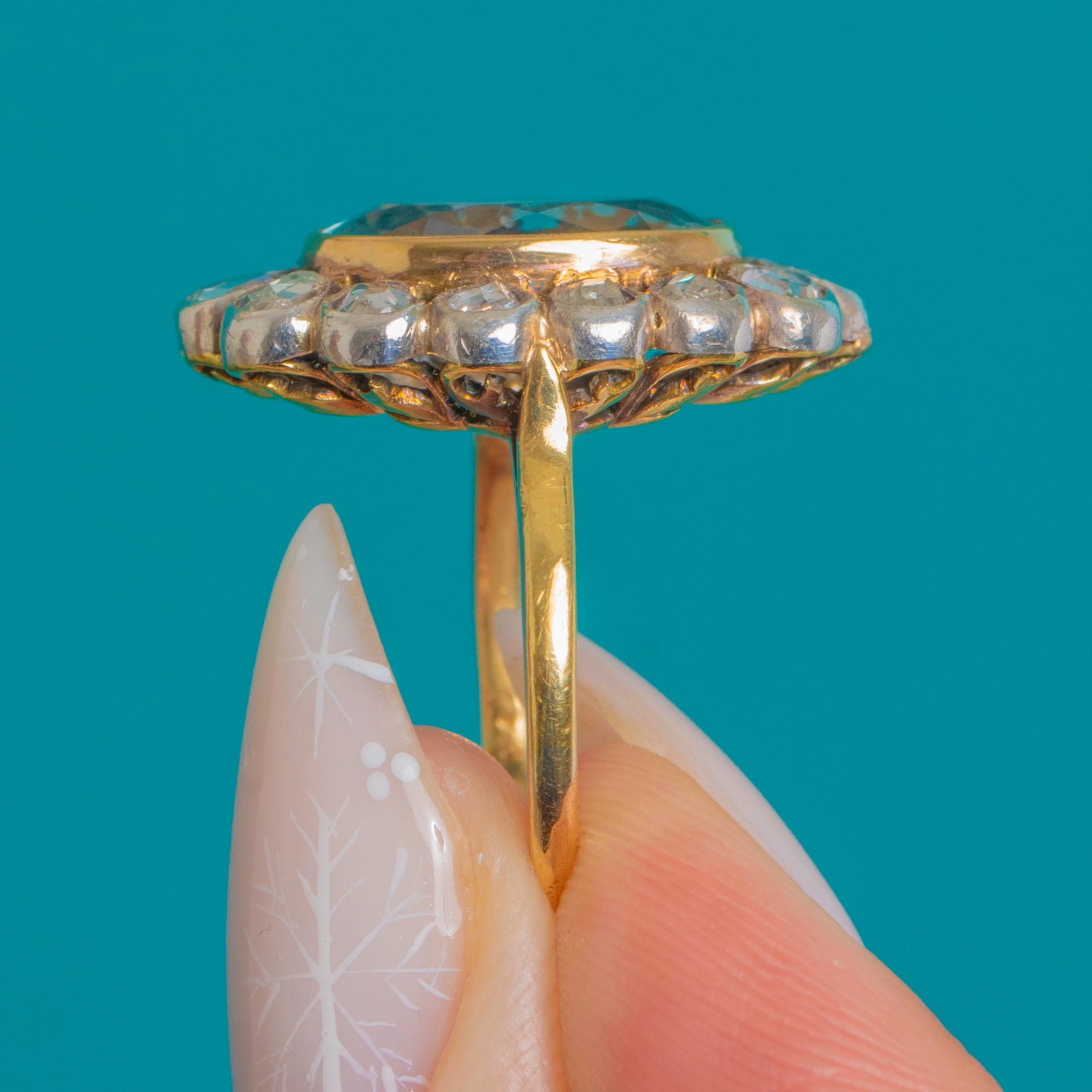 ヴィクトリアン 15ct ゴールド 2.00ct アクアマリン&ダイヤモンド クラスターリング