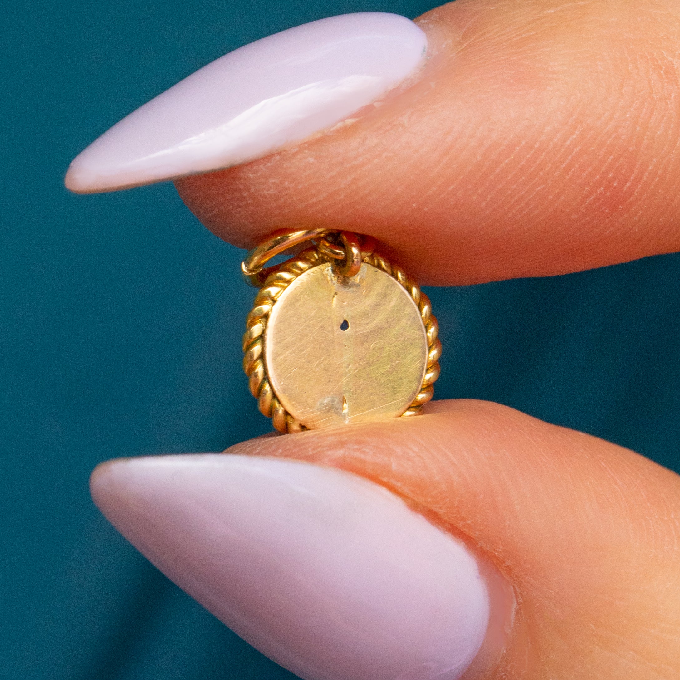 MEASUREMENTS: Charm is 9mm in diameter.