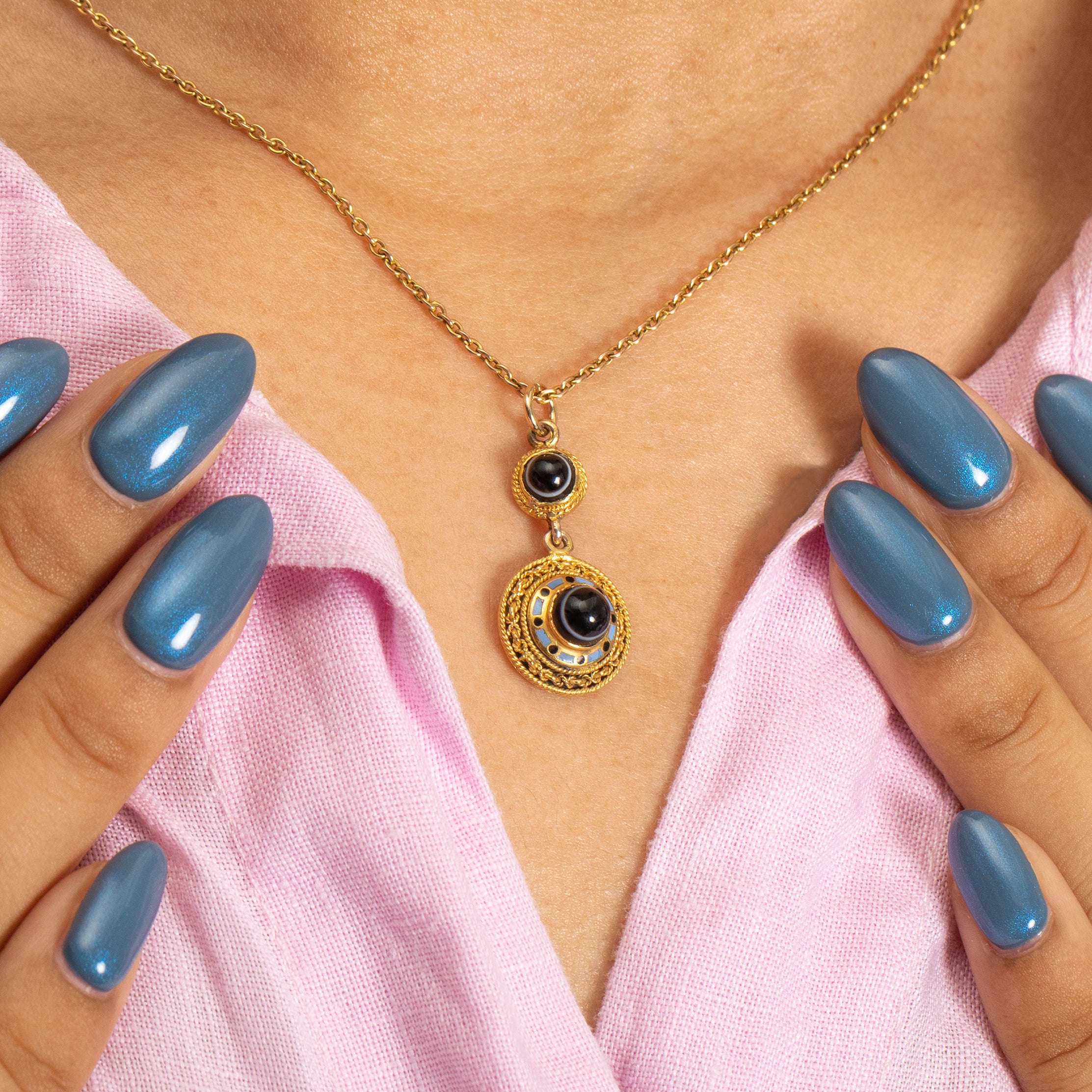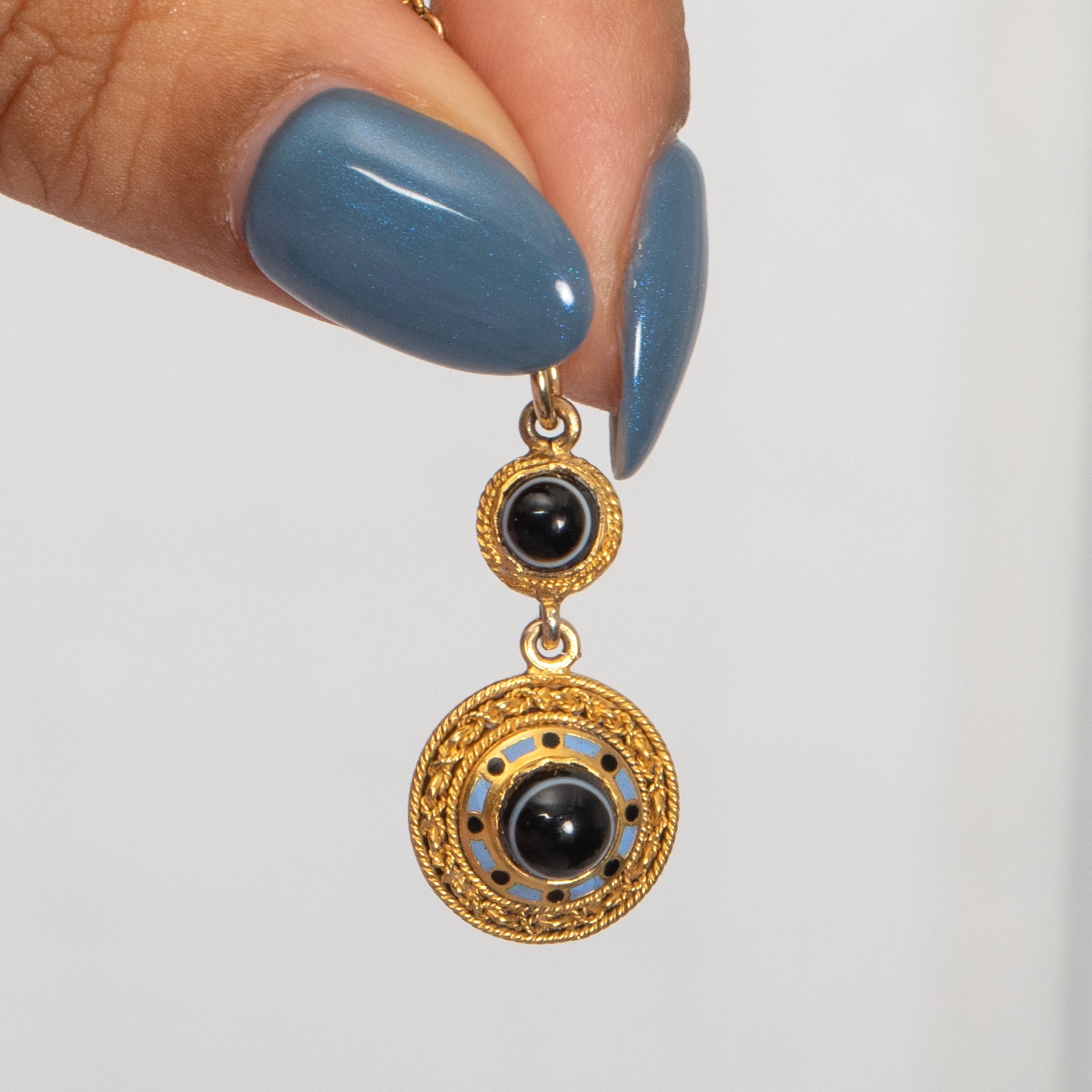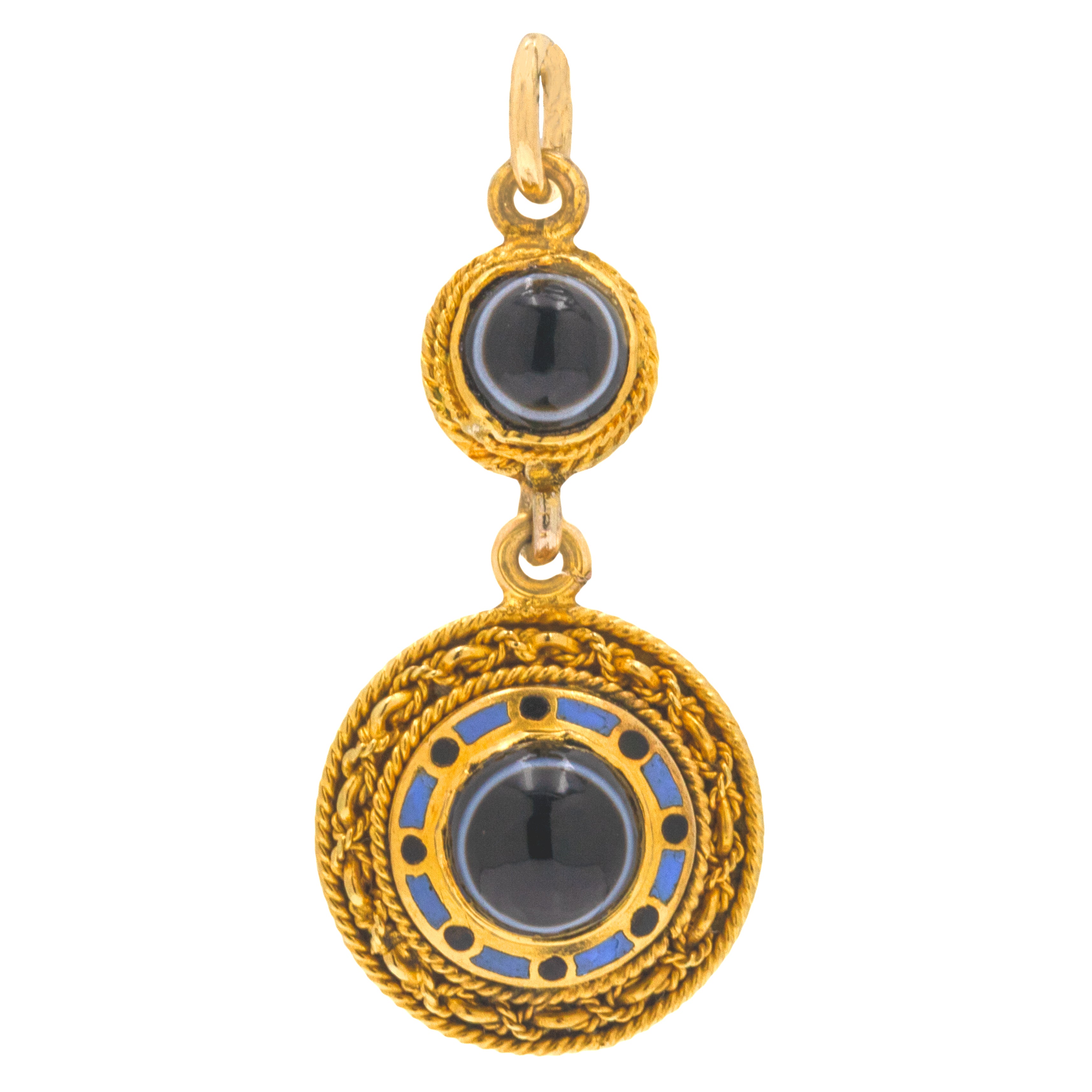 ヴィクトリアン 18ct ゴールド バンドアゲート ドロップ ペンダント