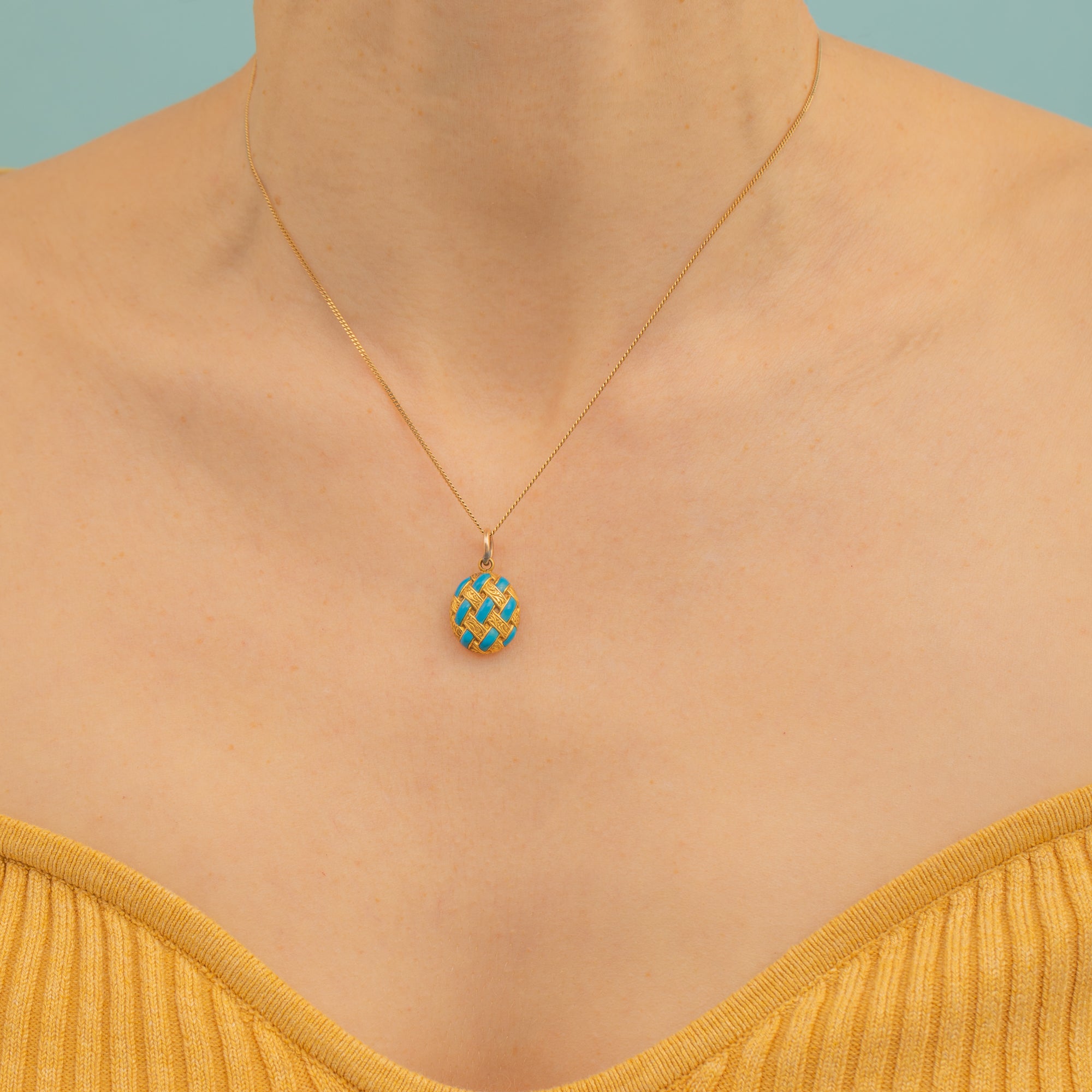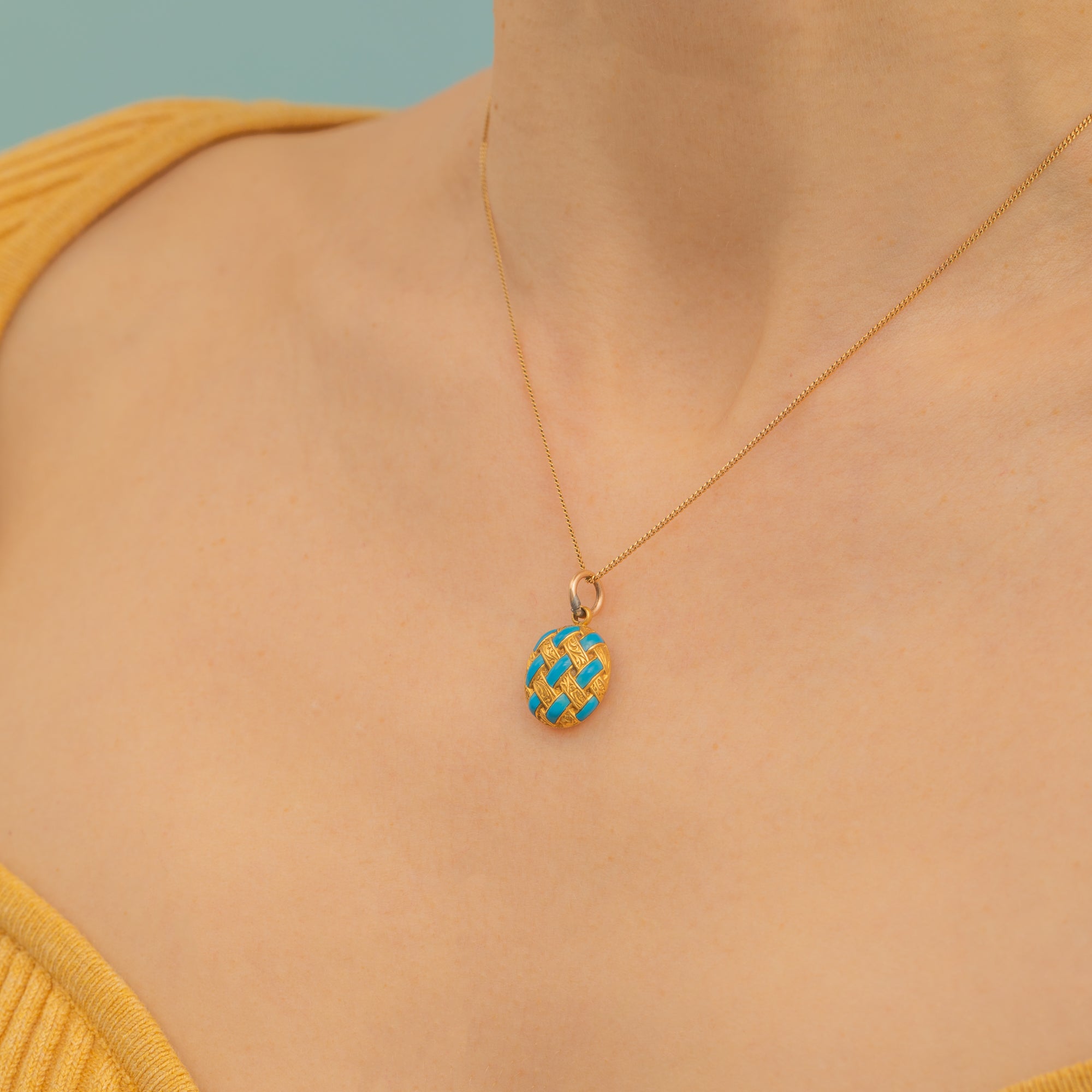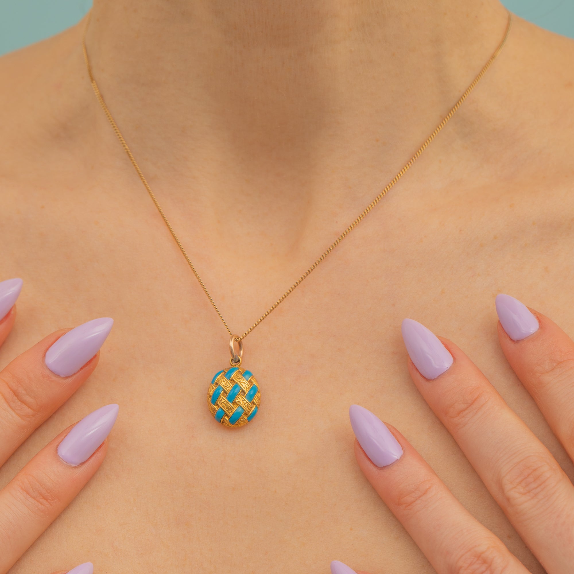 This alluring Victorian 18ct Gold blue Enamel woven locket will make a unique addition to your collection. Made circa 1860, this Victorian locket is comprised of an 18ct Gold engraved body with a woven design, featuring that highly desirable Robin's Egg blue Enamel!