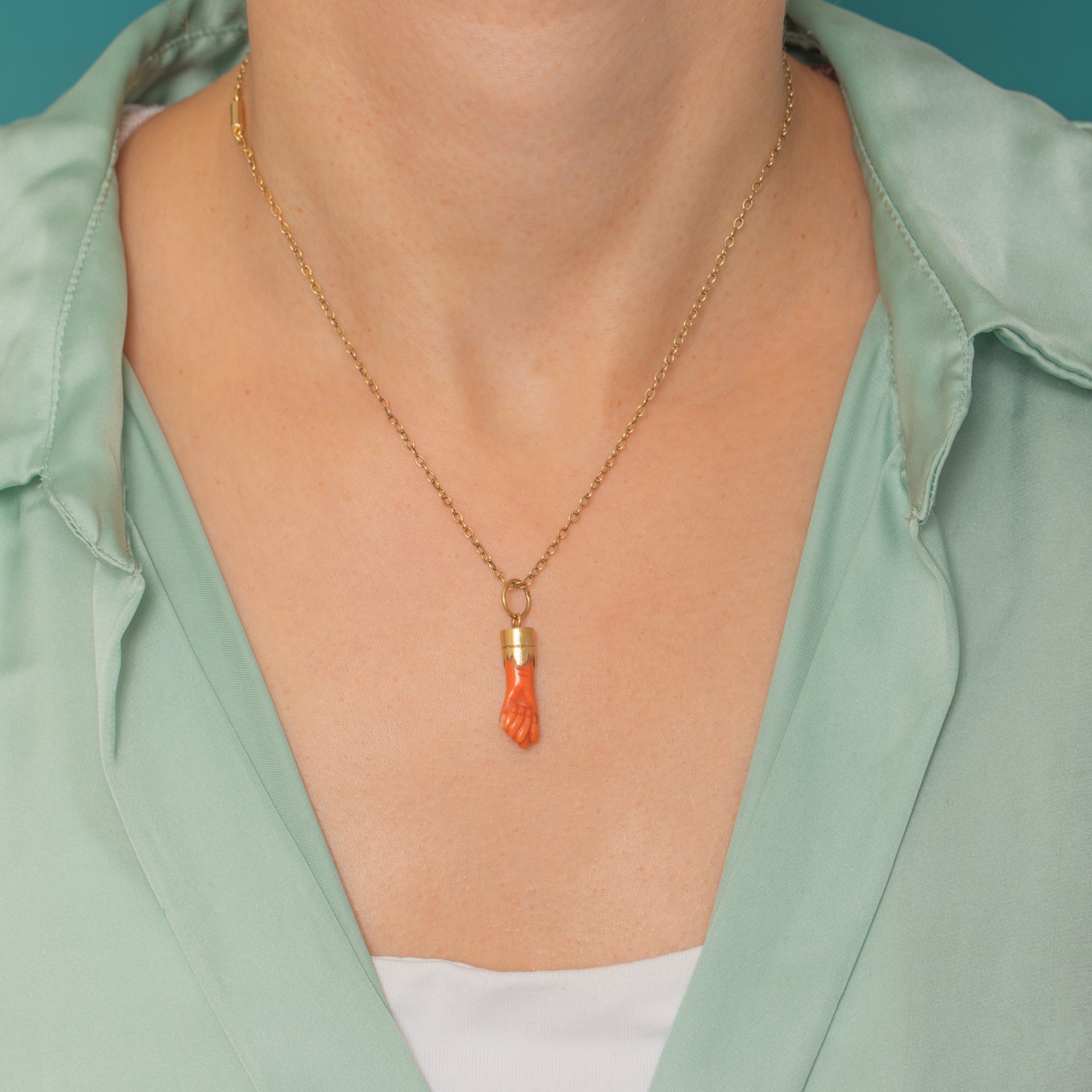 Victorian 18ct ゴールド コーラル フィガ チャーム ペンダント